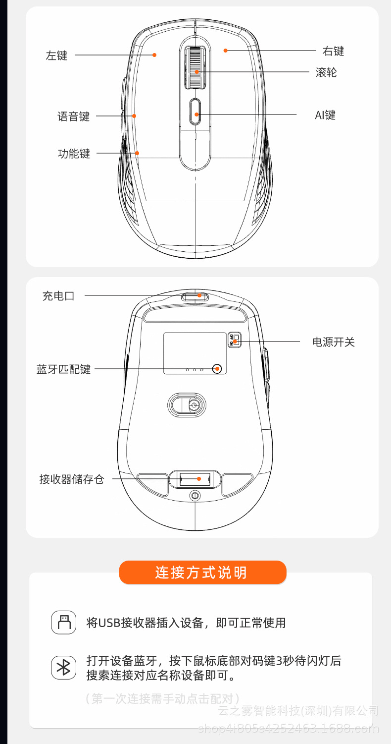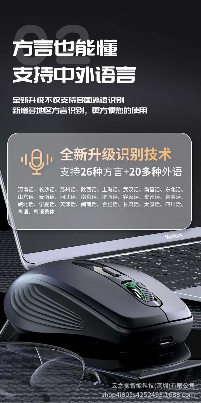 Ai 스마트 음성 마우스 무선 블루투스 듀얼 모드 음성 제어 입력 음성 인식 번역 쓰기 일반 공장 직접스토어 가기