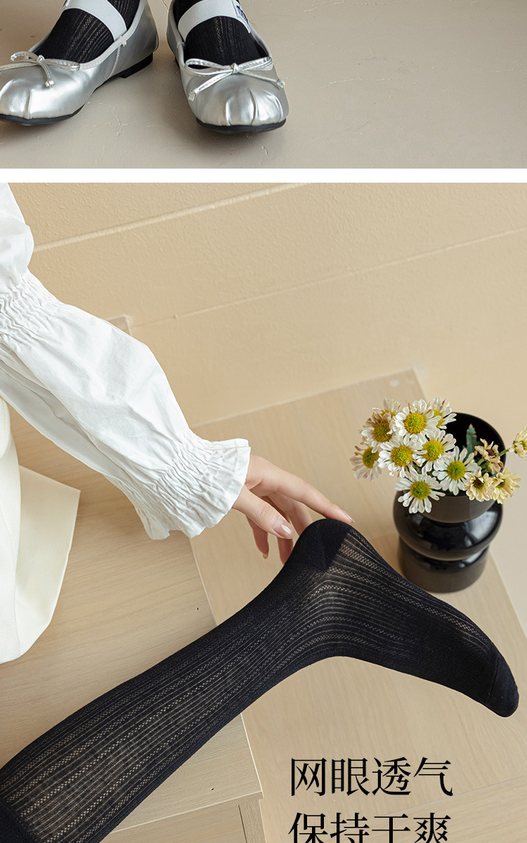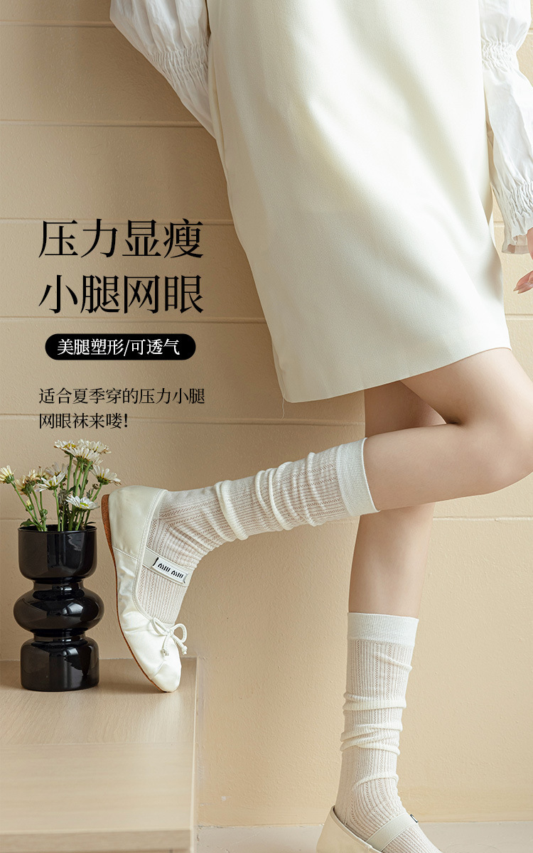여성용 발레 스타일 양말 여름 흰색 양말 인터넷 연예인 유행 여름 중간 길이 스타킹 여성용 순수한 욕망 종아리 양말