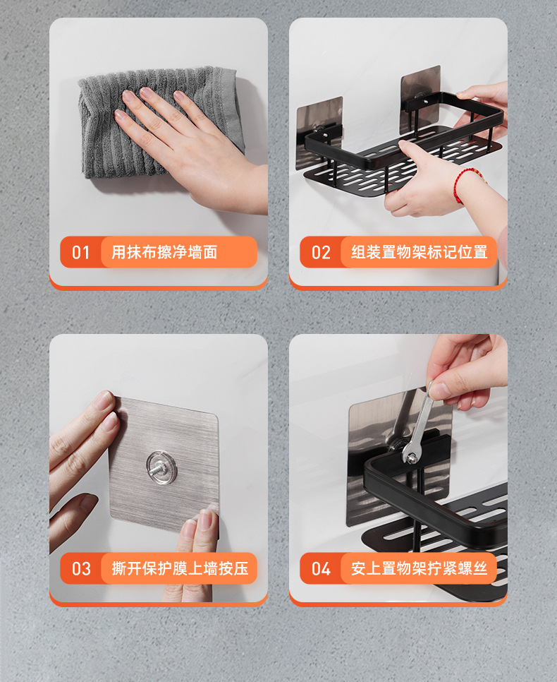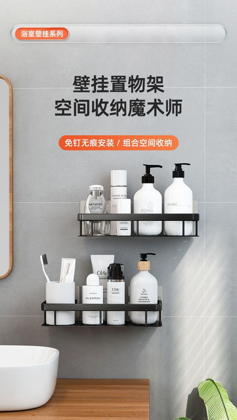 욕실 보관 랙 욕실 펀치가없는 사각 바구니 세척 테이블 벽 공간 알루미늄 보관 긴 사각 프레임 벽 교수형스토어 가기