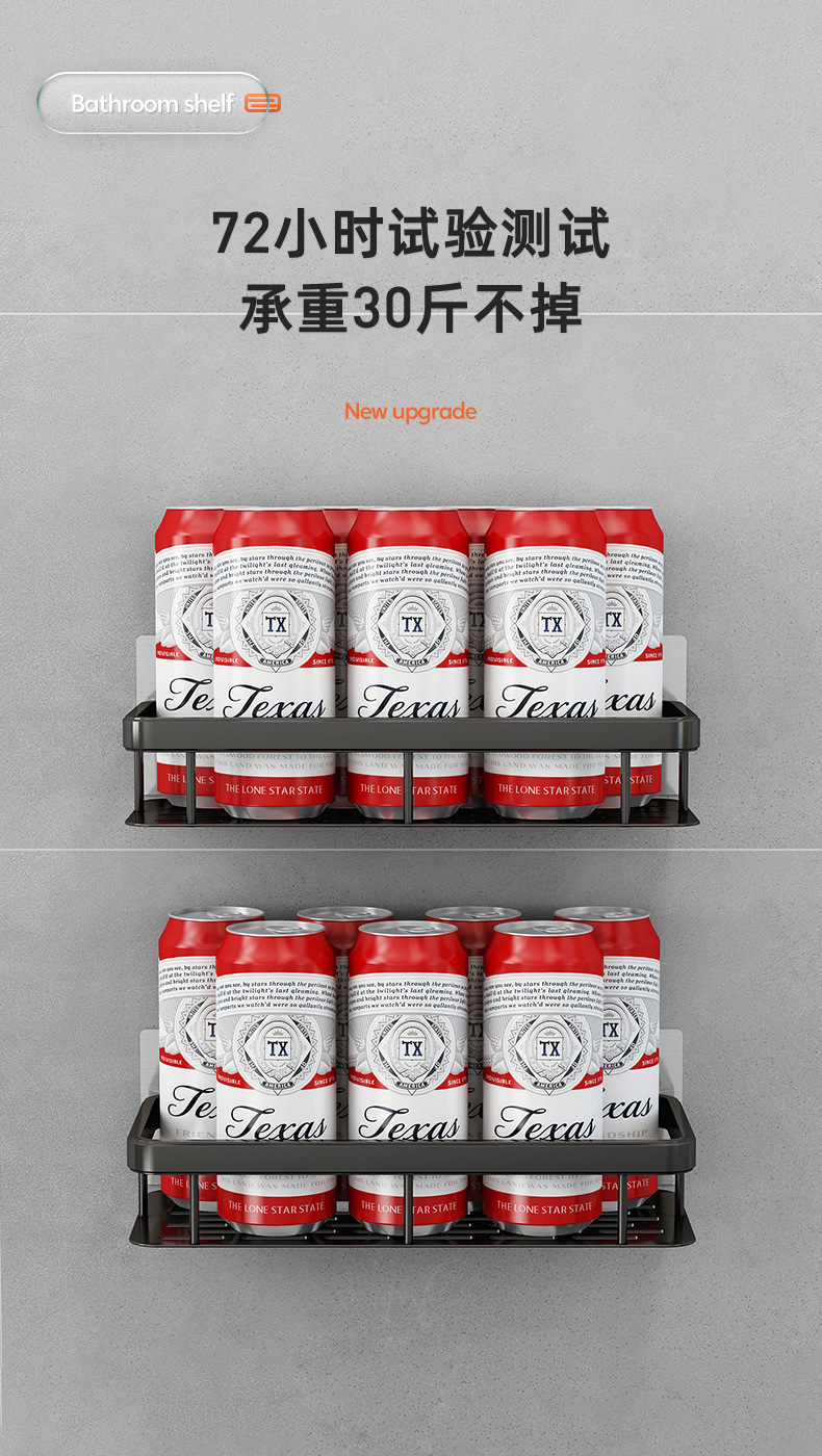 욕실 보관 랙 욕실 펀치가없는 사각 바구니 세척 테이블 벽 공간 알루미늄 보관 긴 사각 프레임 벽 교수형