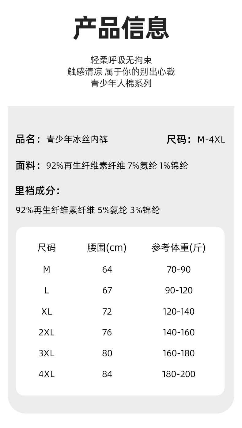십대 속옷 남성 클래스 A 어린이 소년 발달 학생 고등학생 큰 아이들 여름 얇은 얼음 실크 반바지스토어 가기