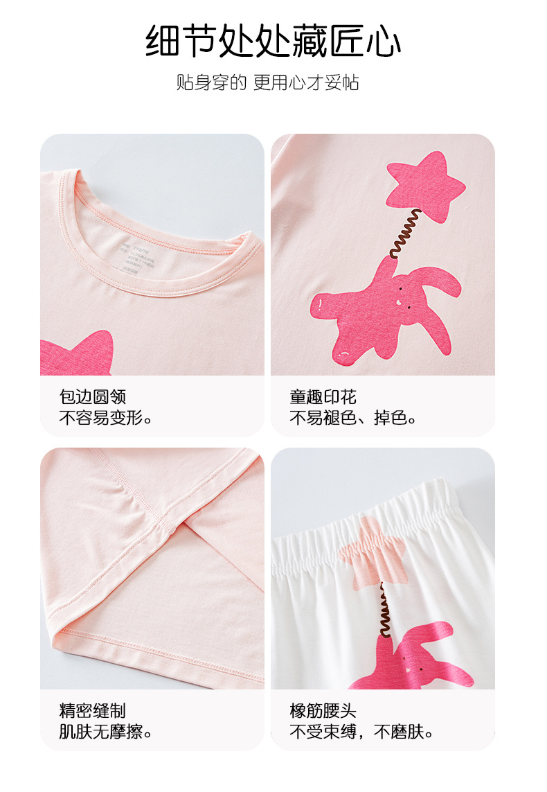 아동용 홈웨어 A급 여름용 얇은 여아 반팔 잠옷 항균 여아용 중소형 아동용 T 7부 소매 에어컨 의류스토어 가기