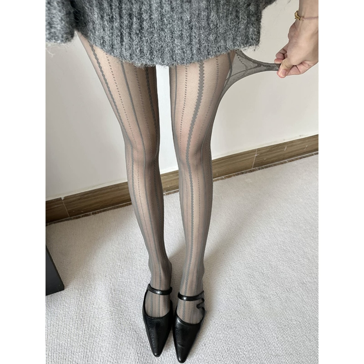 • 0D [세로줄무늬 그레이 실크] 초박형 가랑이