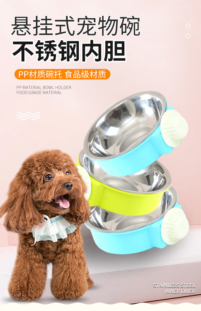 도매 교수형 스테인레스 스틸 애완 동물 그릇 고정 안티 노크 애완 동물 피더 안티 노크 고양이 음식 분지 개 그릇