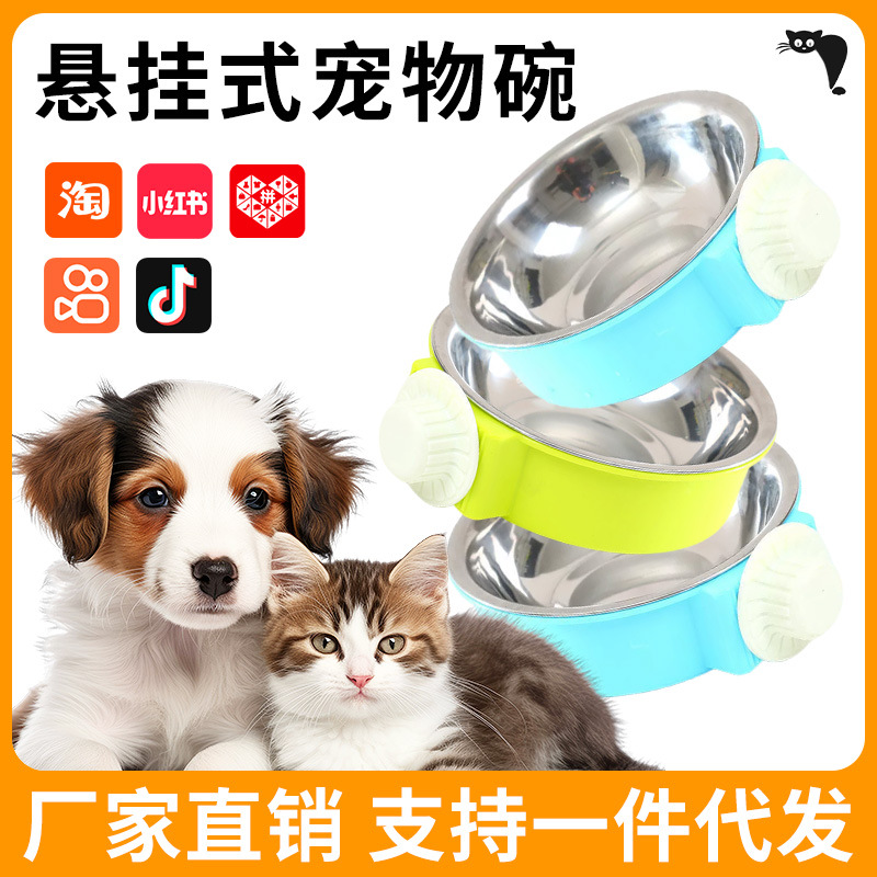 도매 교수형 스테인레스 스틸 애완 동물 그릇 고정 안티 노크 애완 동물 피더 안티 노크 고양이 음식 분지 개 그릇스토어 가기