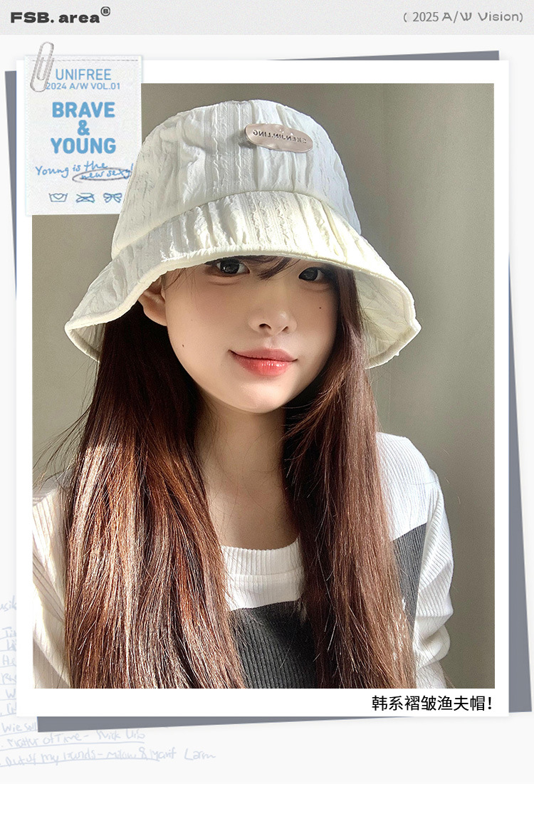 일본식 Pleated White Fisherman Hat 어린이의 봄과 여름 새로운 작은 올 매치 버킷 모자스토어 가기