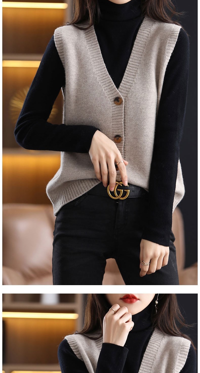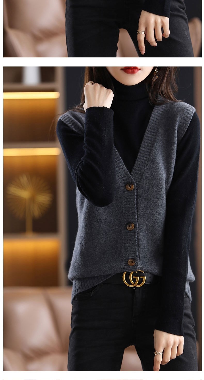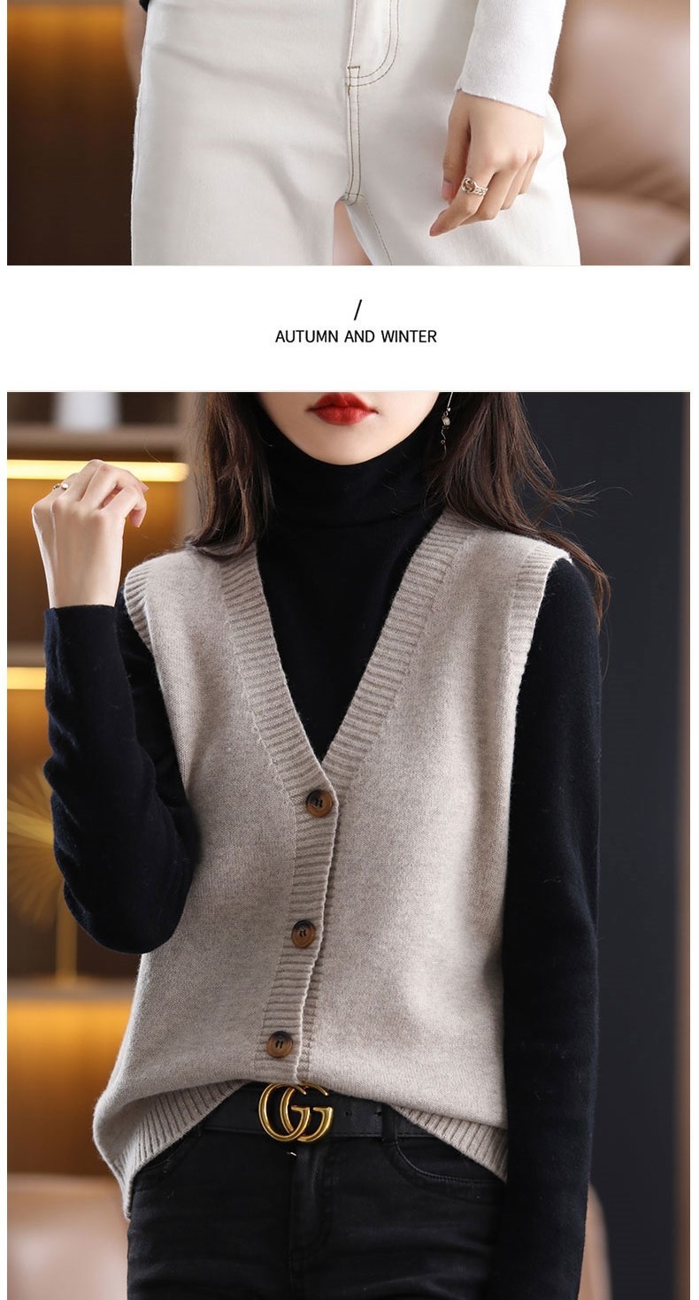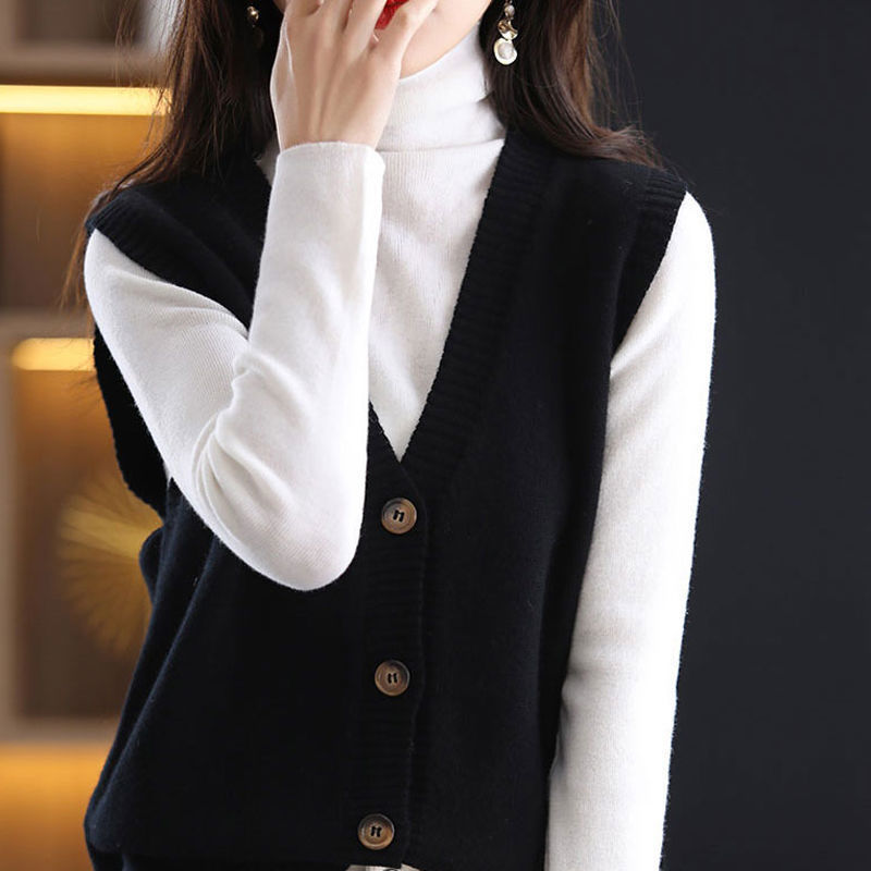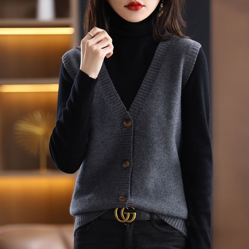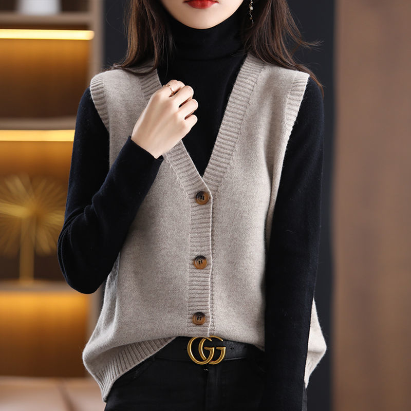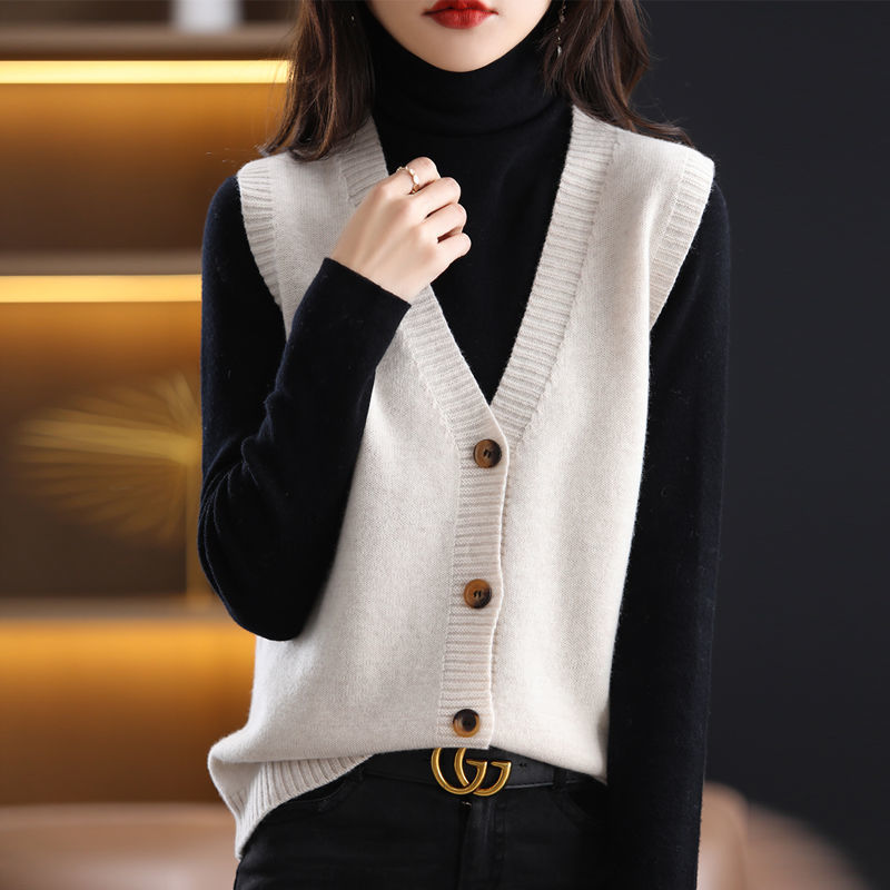 솔리드 컬러 니트 조끼 카디건 여성용 민소매 니트 조끼 2024 년 이른 봄 새 도착 스웨터 외부 웨이스트 코트 여성용 웨이스트 코트스토어 가기