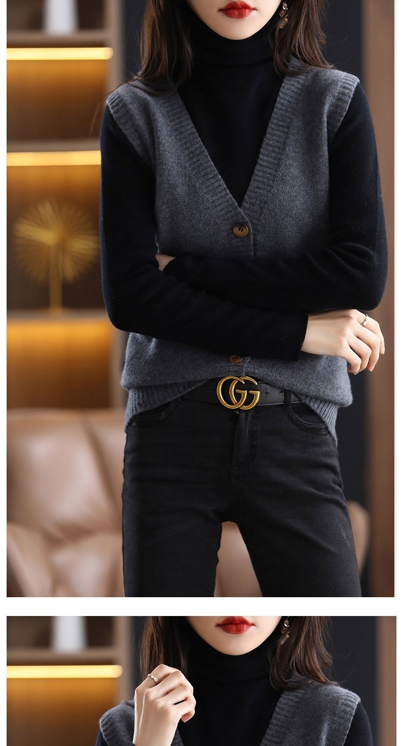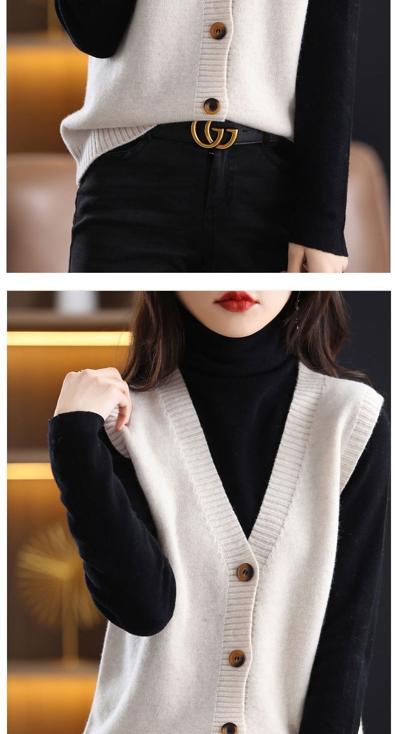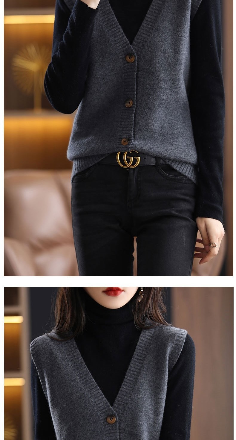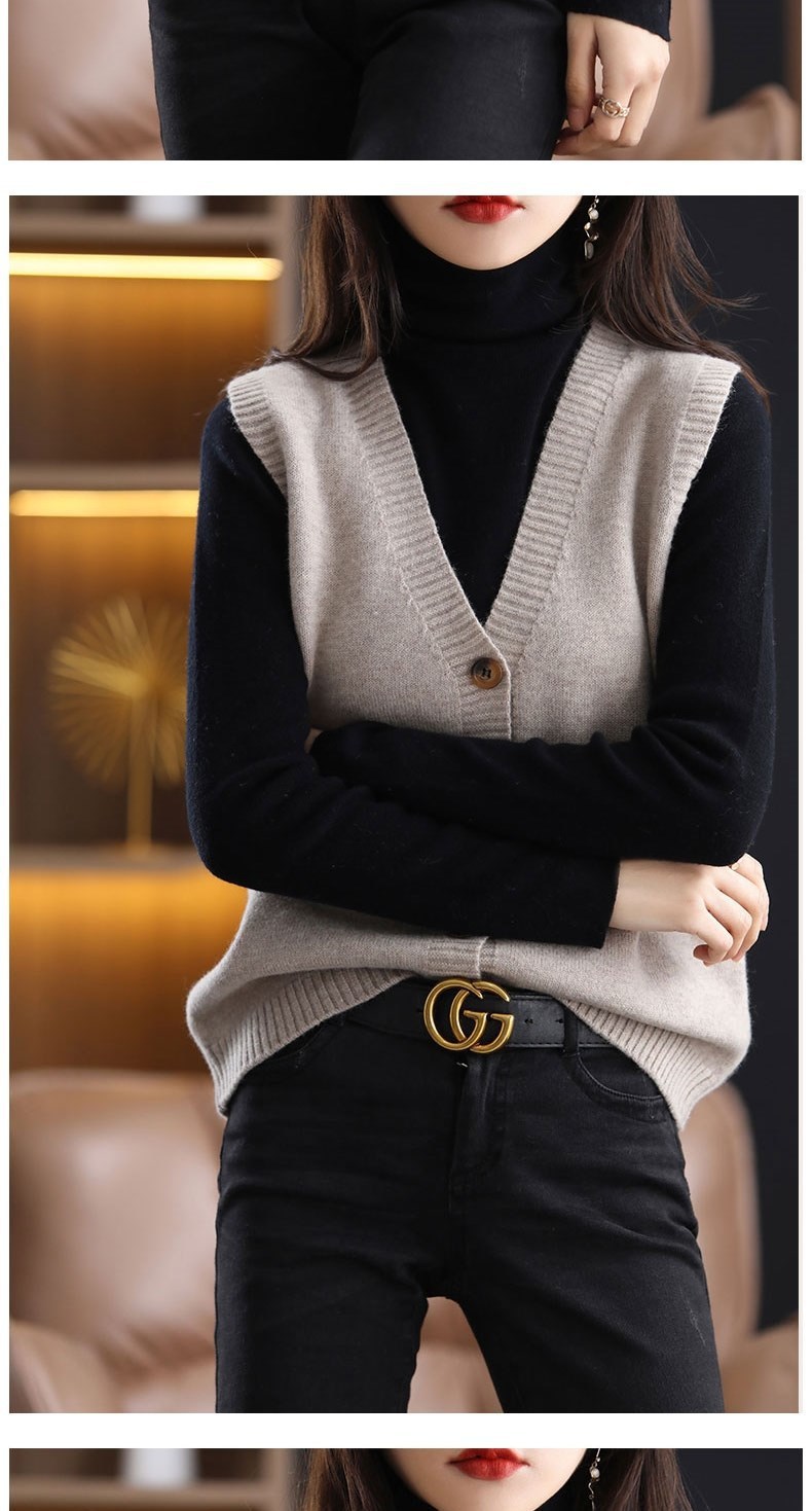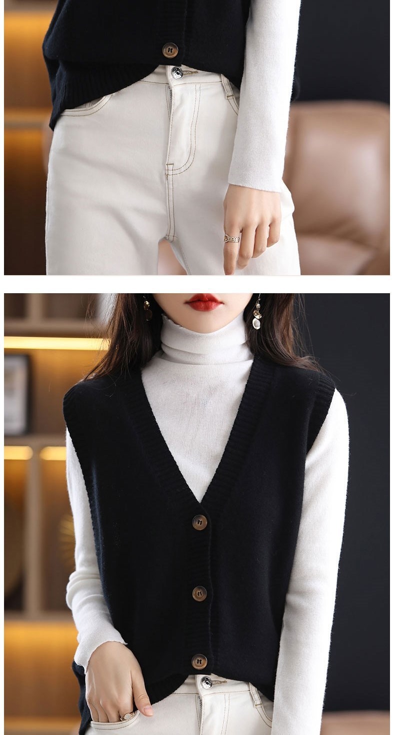 솔리드 컬러 니트 조끼 카디건 여성용 민소매 니트 조끼 2024 년 이른 봄 새 도착 스웨터 외부 웨이스트 코트 여성용 웨이스트 코트스토어 가기
