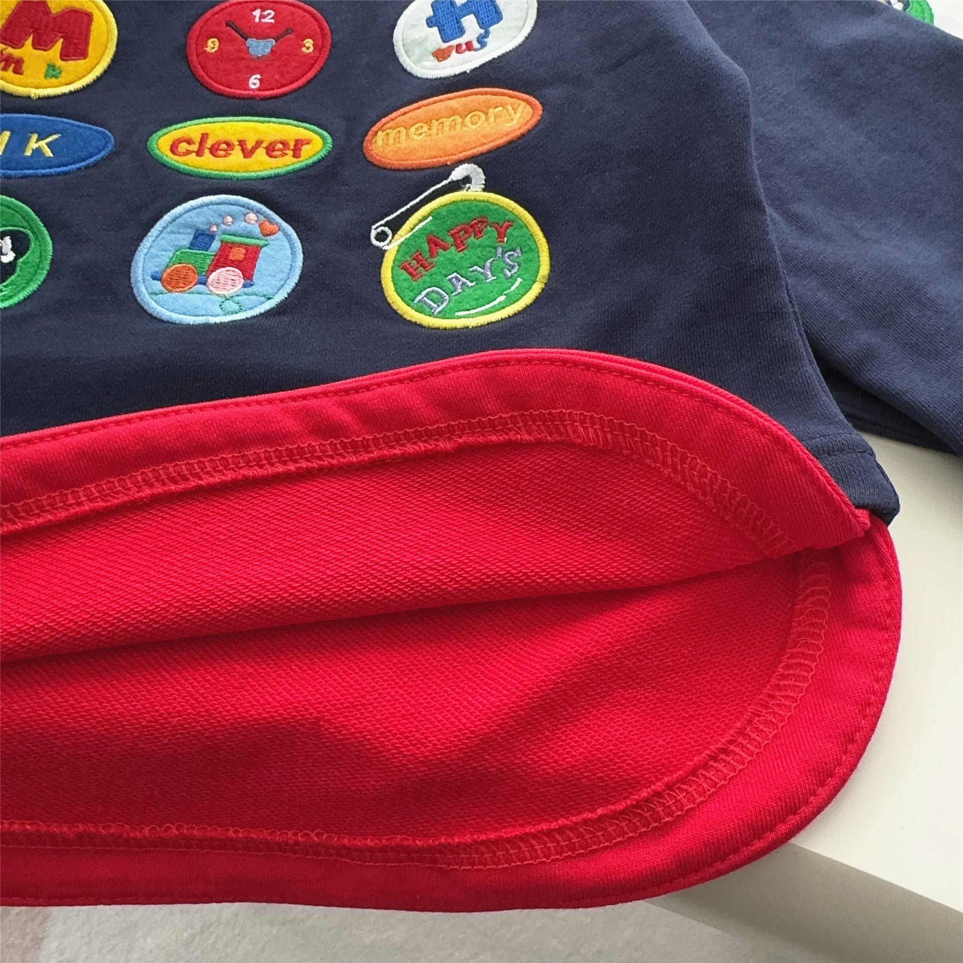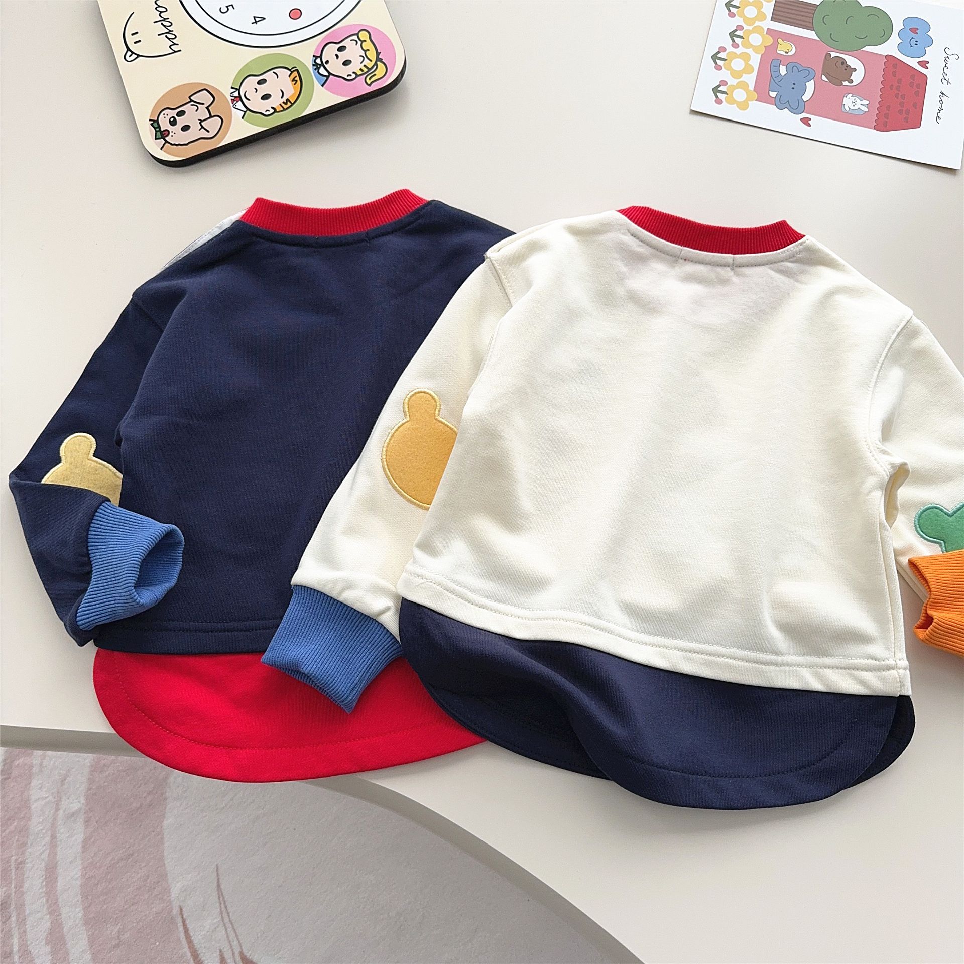 재고 머리 25 봄 새로운 소년과 소녀 아기 만화 자수 가짜 투피스 시간 절약 긴 소매 티셔츠 도매 7029스토어 가기