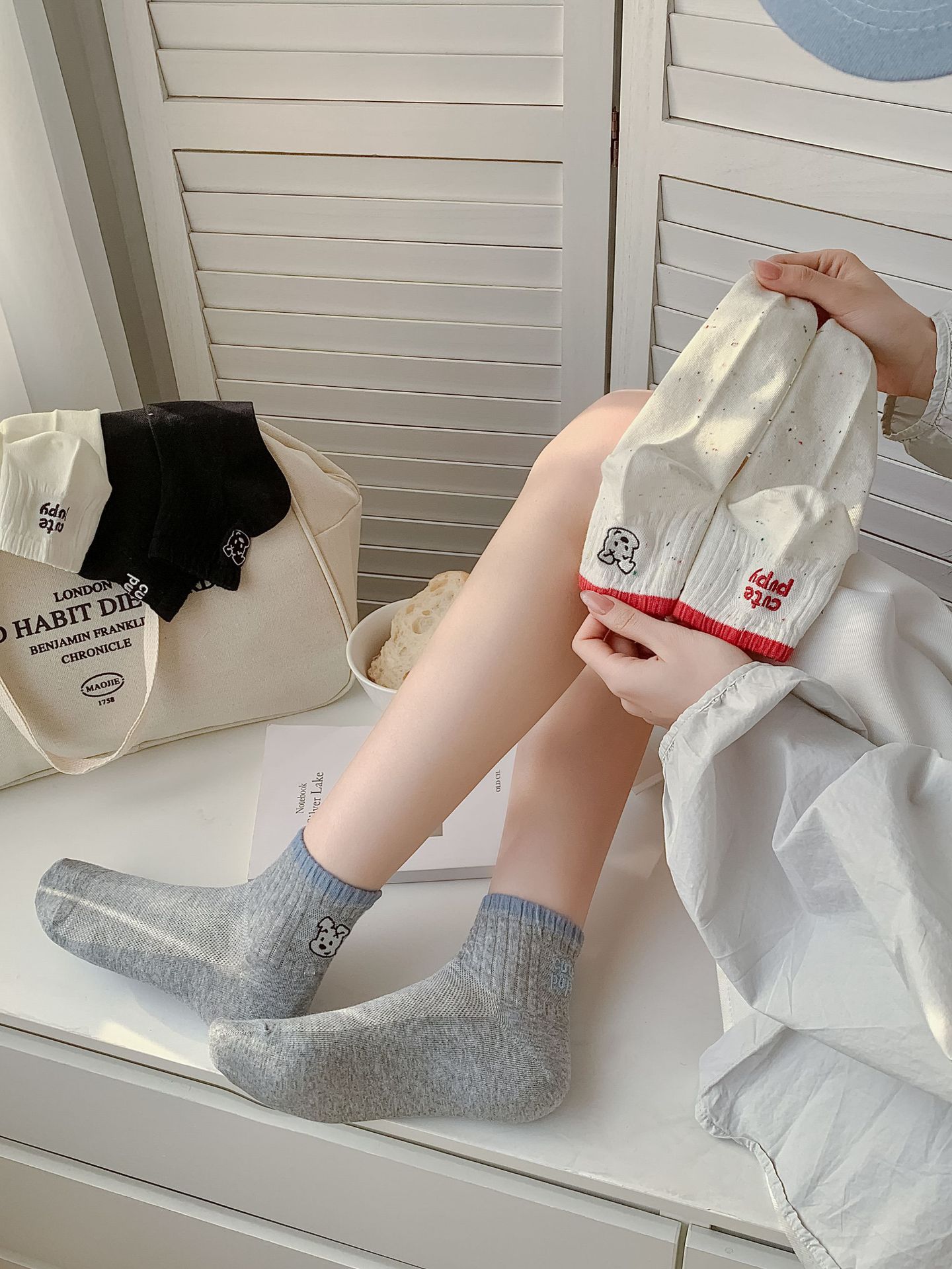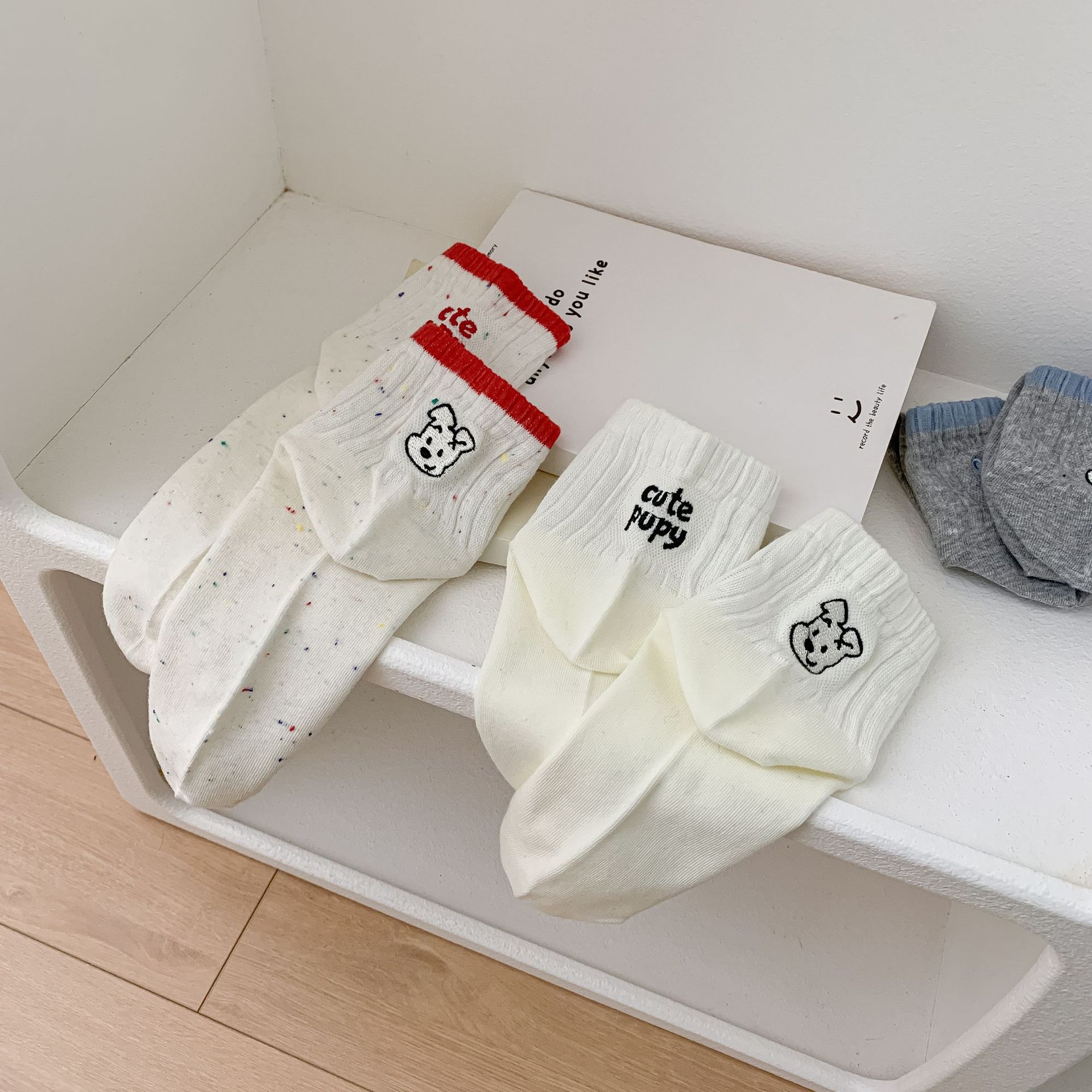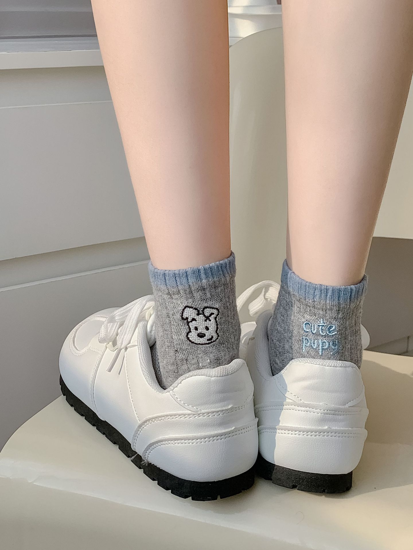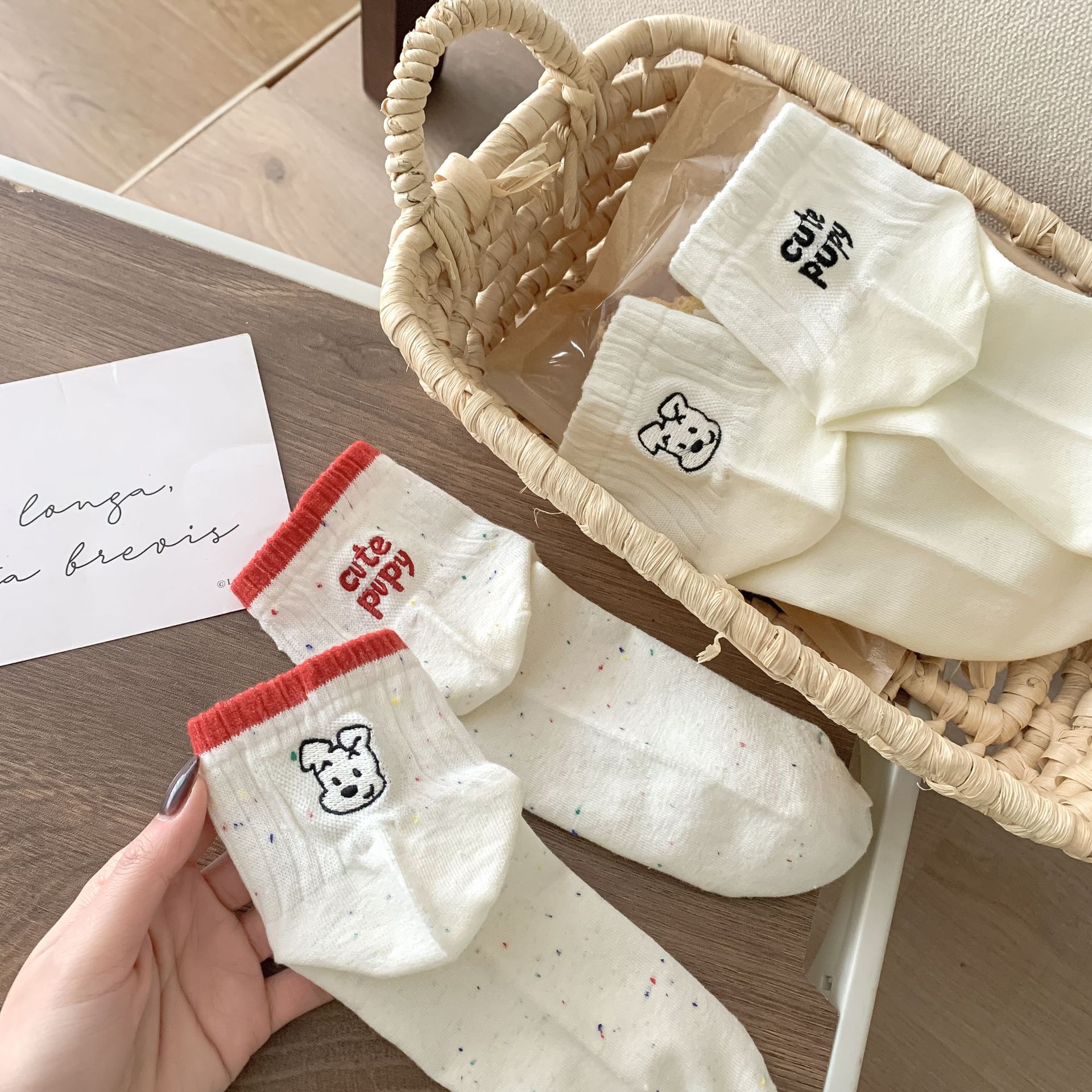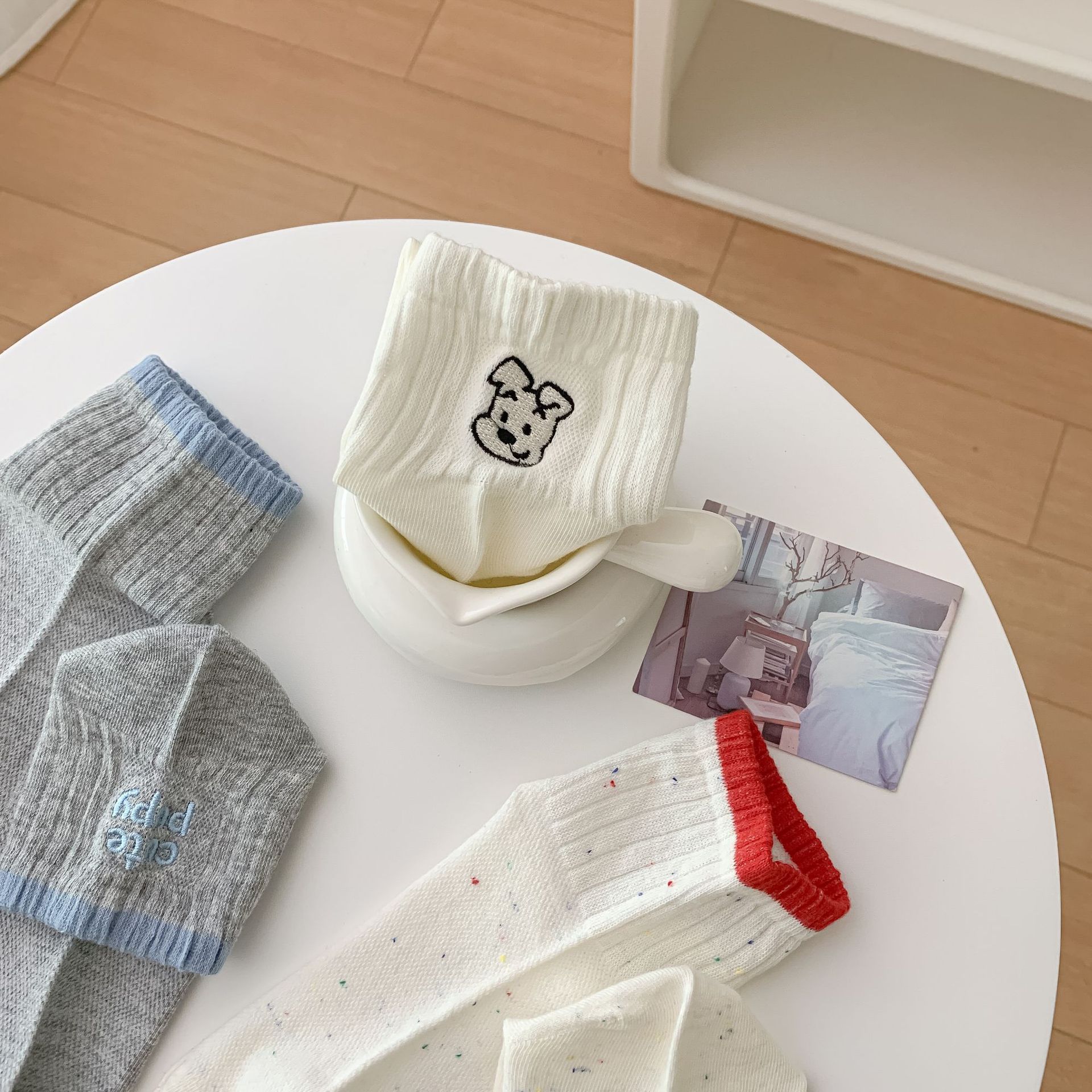 25 봄 AB 양말 여성용 힐 만화 강아지 자수 코튼 양말 트렌디 귀여운 올 매치 미드 튜브 여성용 양말스토어 가기