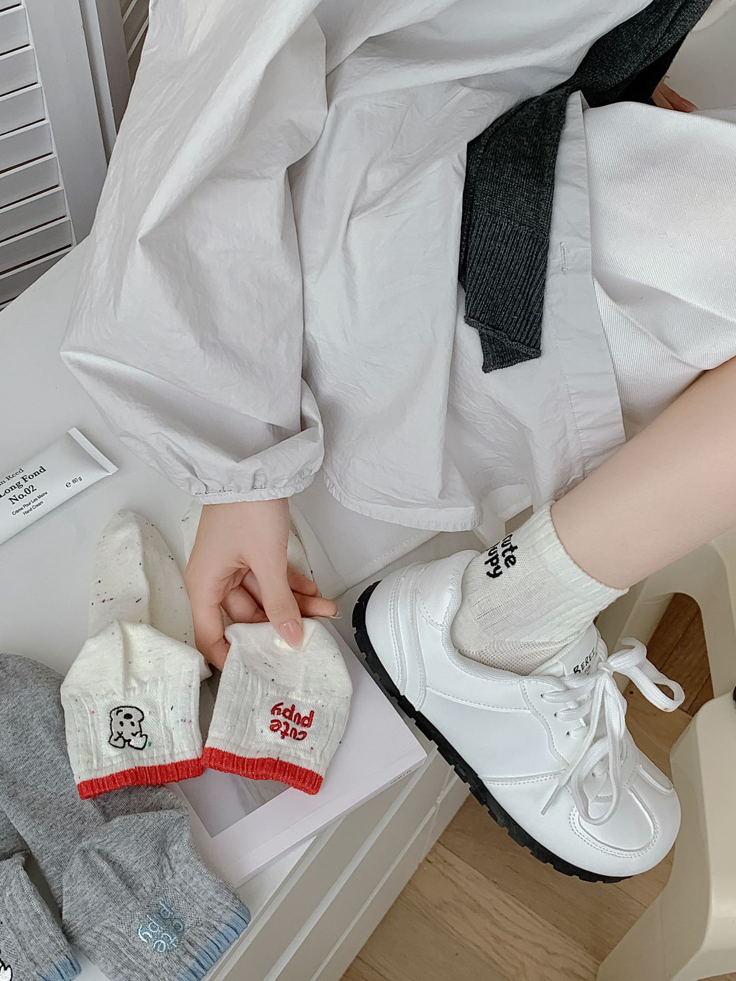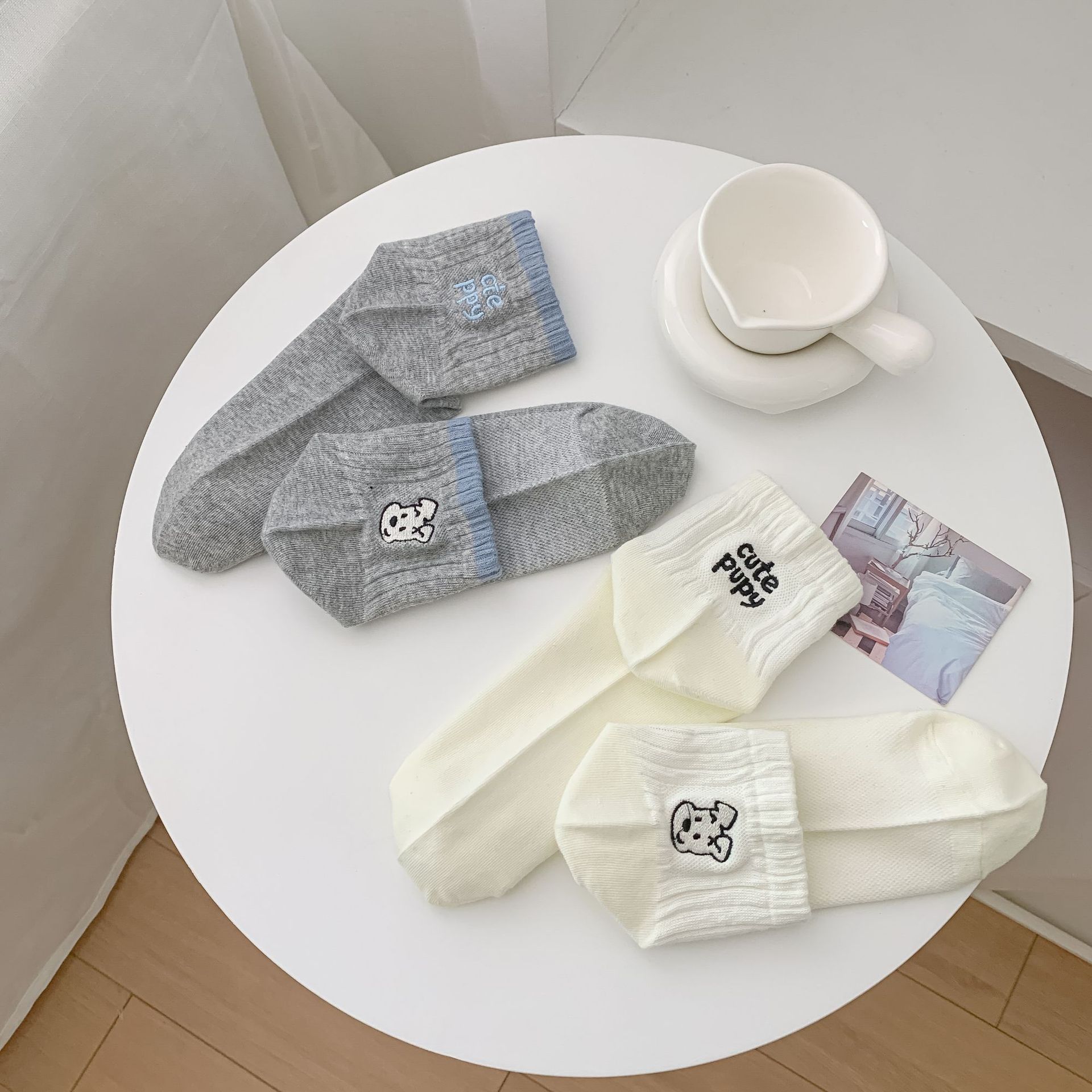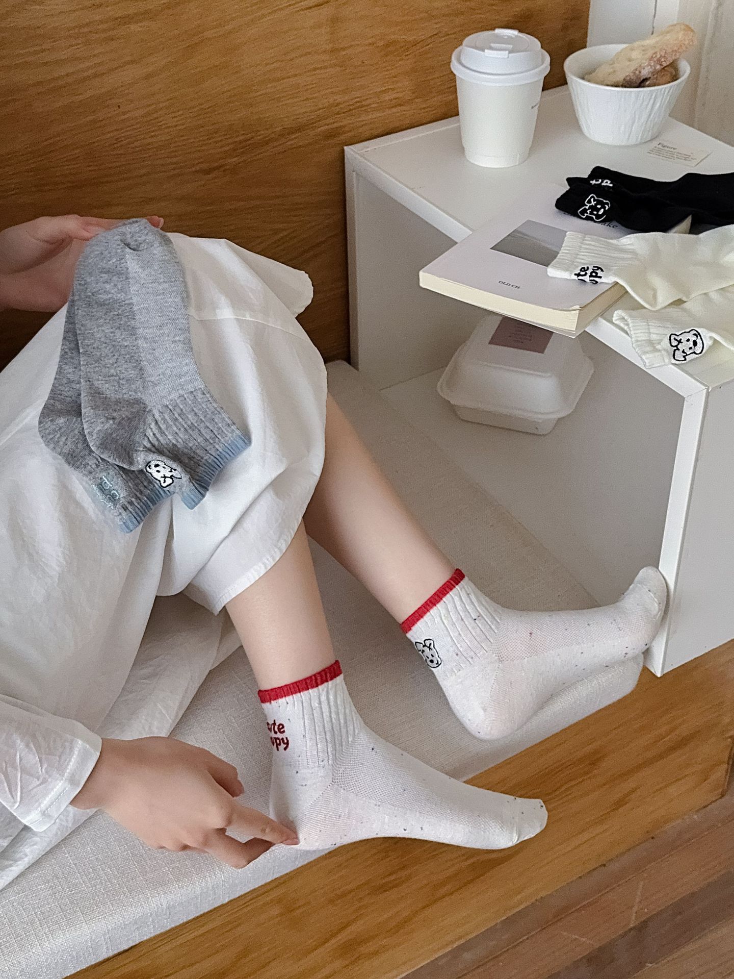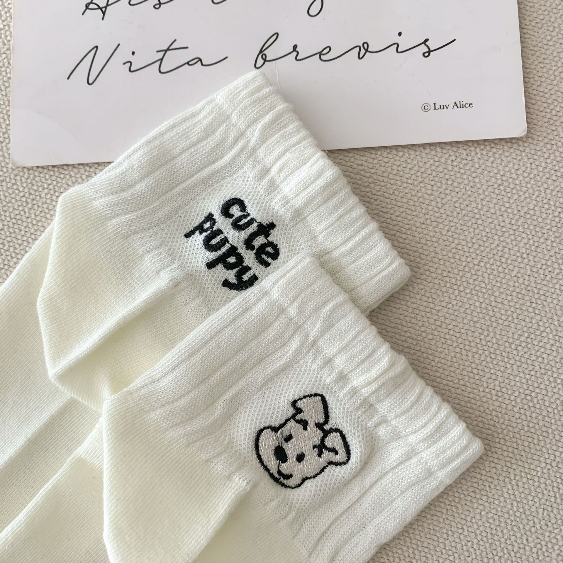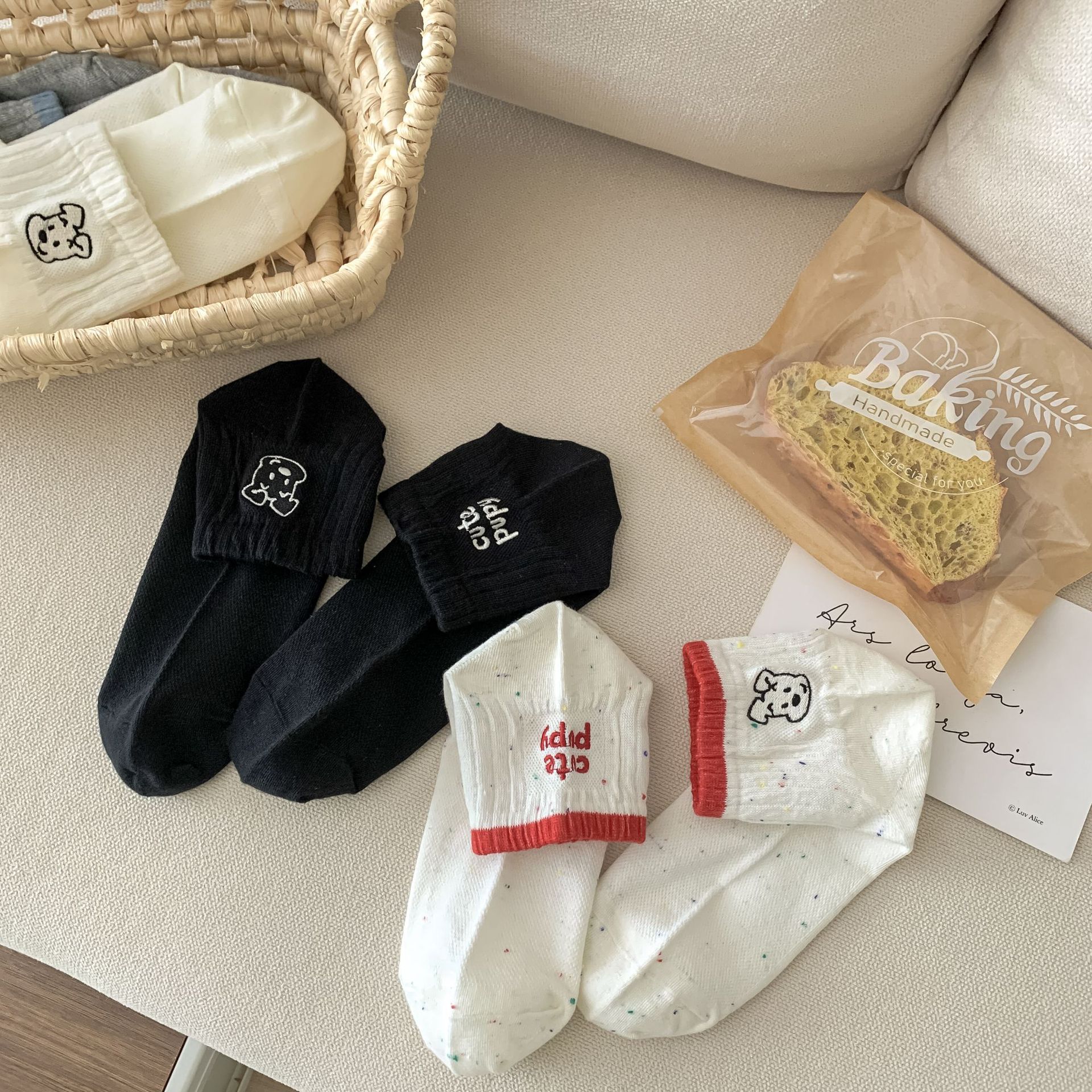 25 봄 AB 양말 여성용 힐 만화 강아지 자수 코튼 양말 트렌디 귀여운 올 매치 미드 튜브 여성용 양말스토어 가기