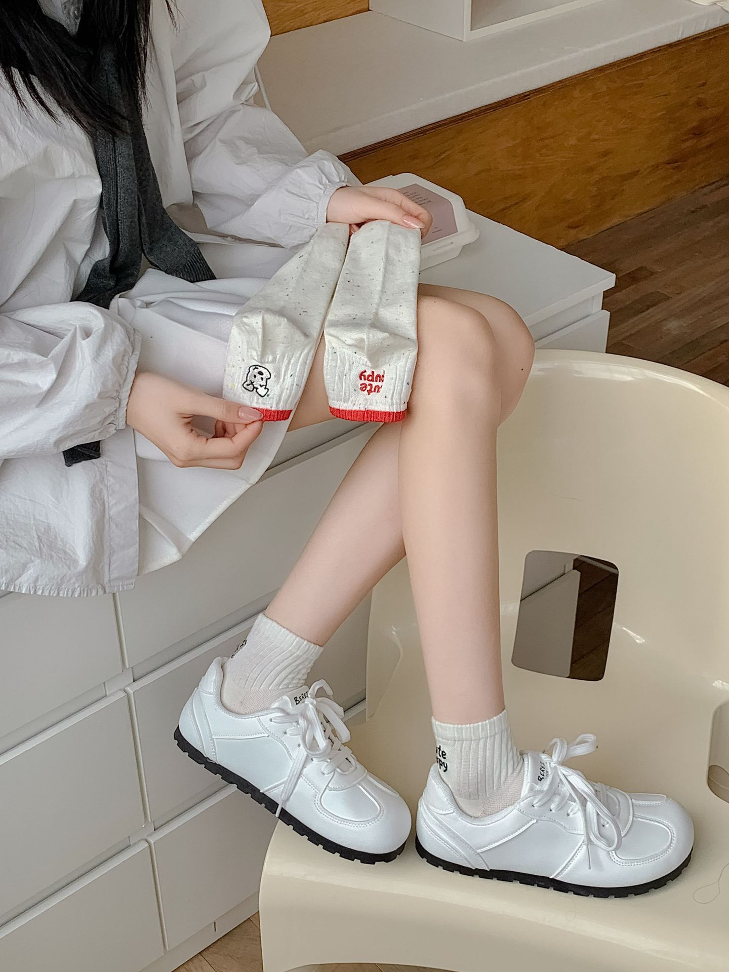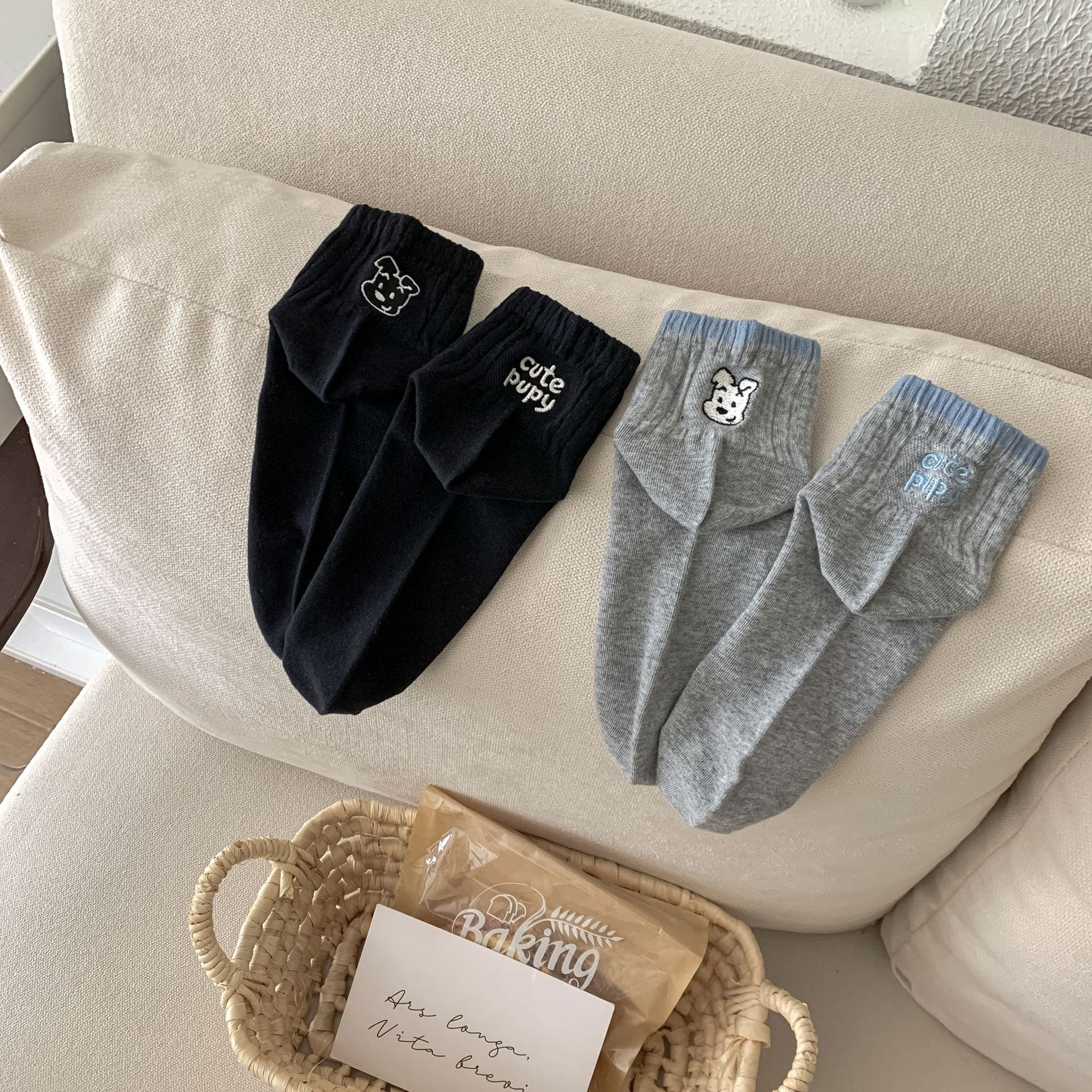 25 봄 AB 양말 여성용 힐 만화 강아지 자수 코튼 양말 트렌디 귀여운 올 매치 미드 튜브 여성용 양말