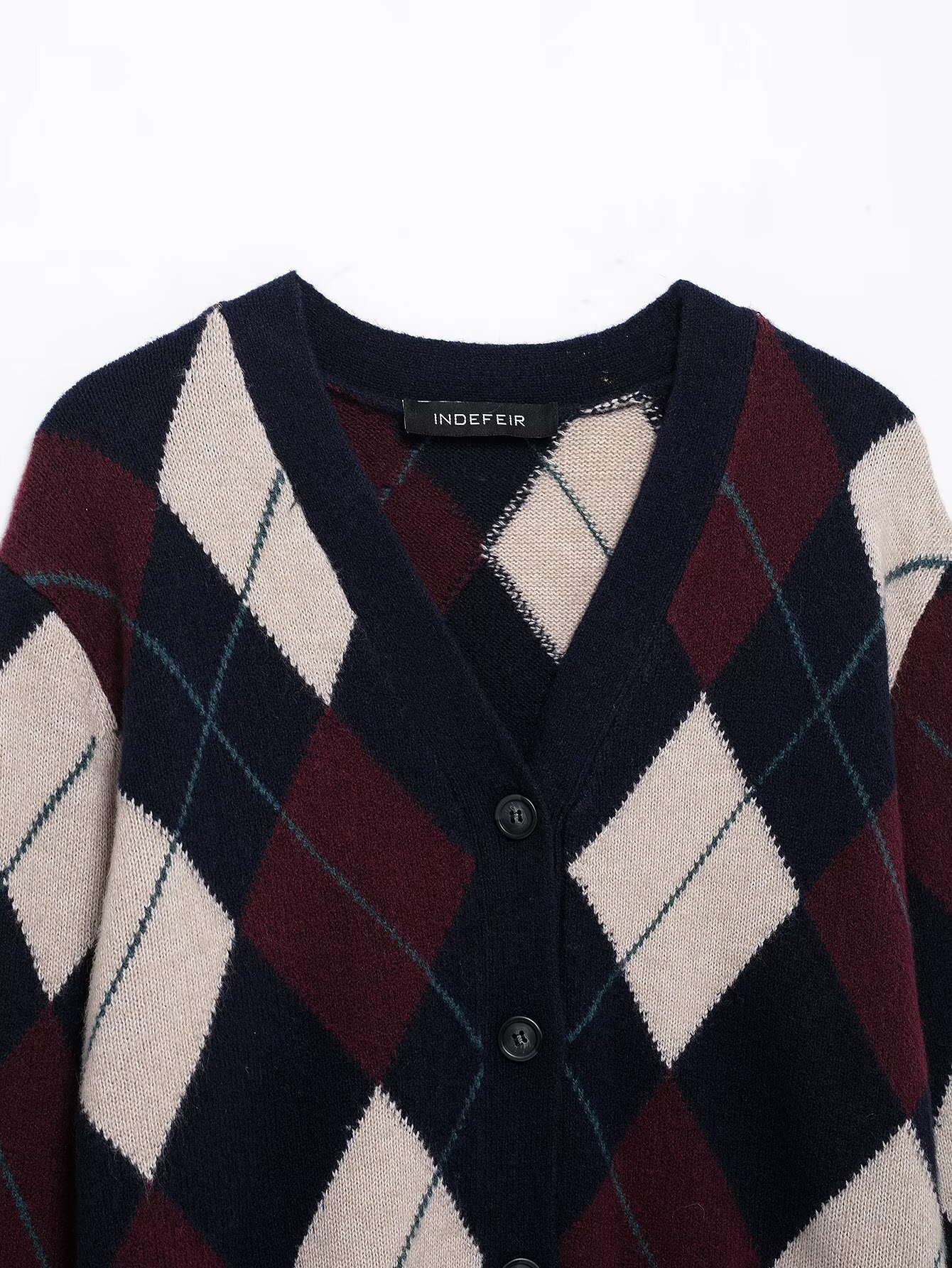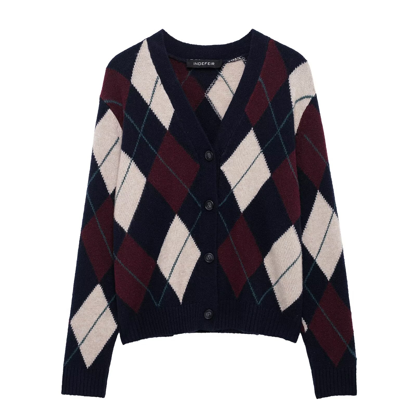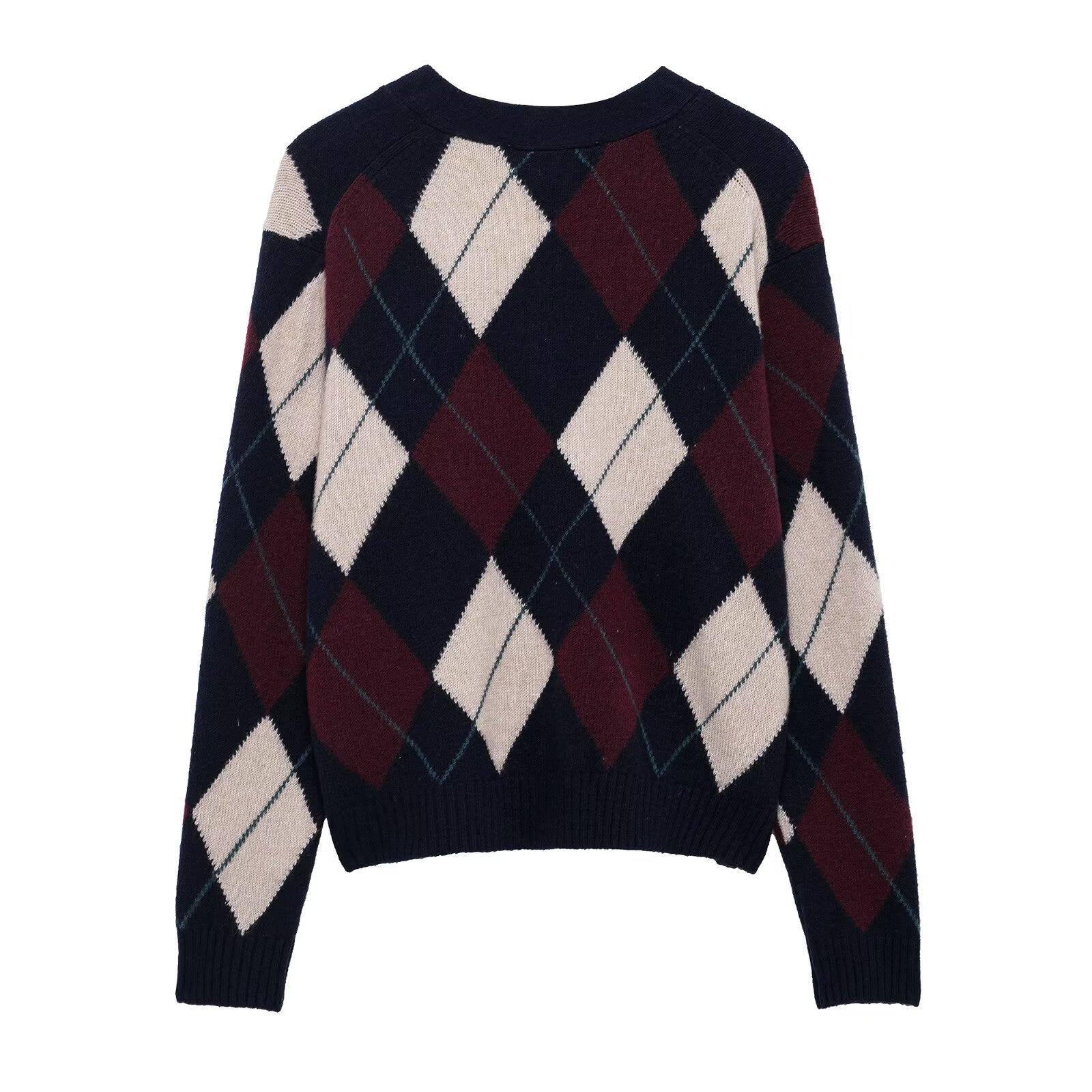 2025 봄 새로운 유럽과 미국의 국경 여성 스트리트 패션 V 넥 마름모 니트 코트 w085 760079스토어 가기