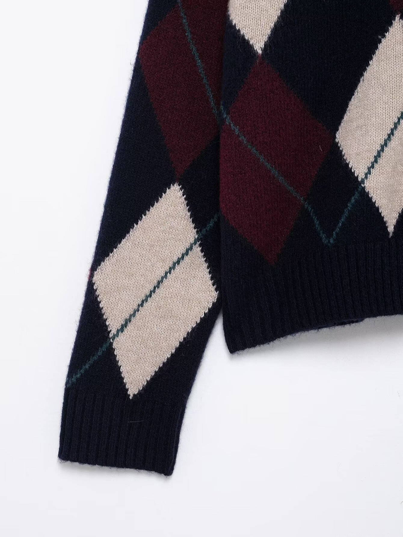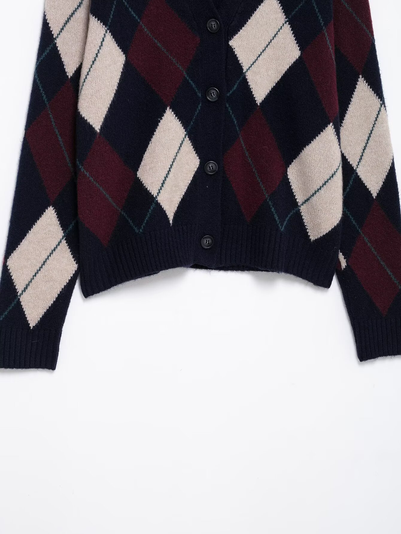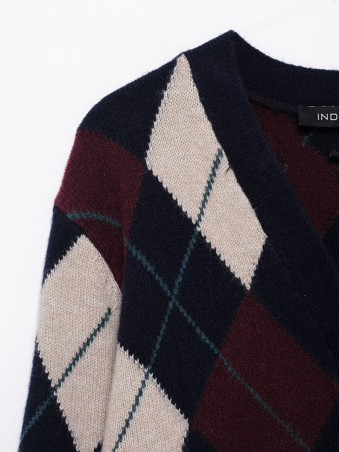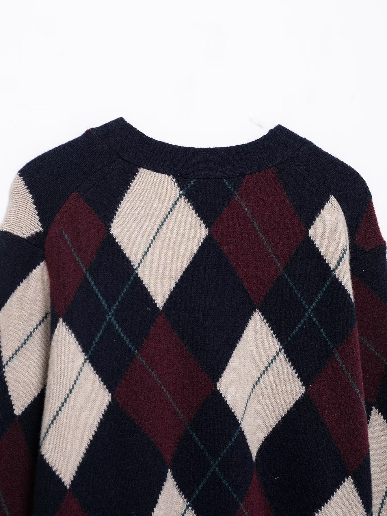 2025 봄 새로운 유럽과 미국의 국경 여성 스트리트 패션 V 넥 마름모 니트 코트 w085 760079스토어 가기
