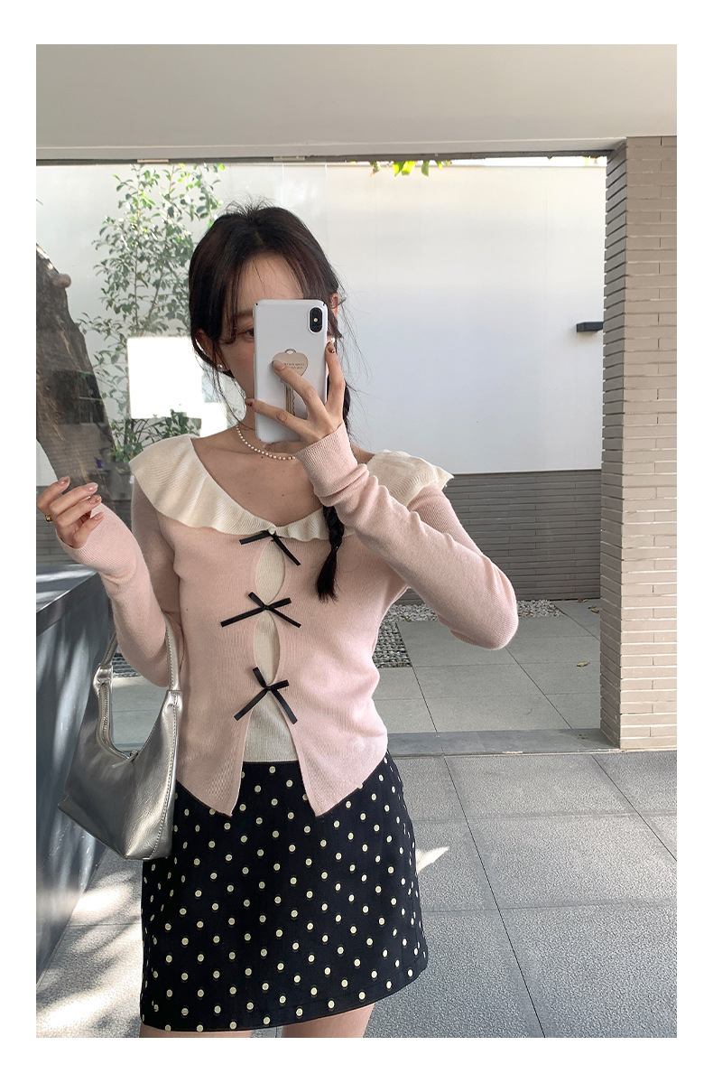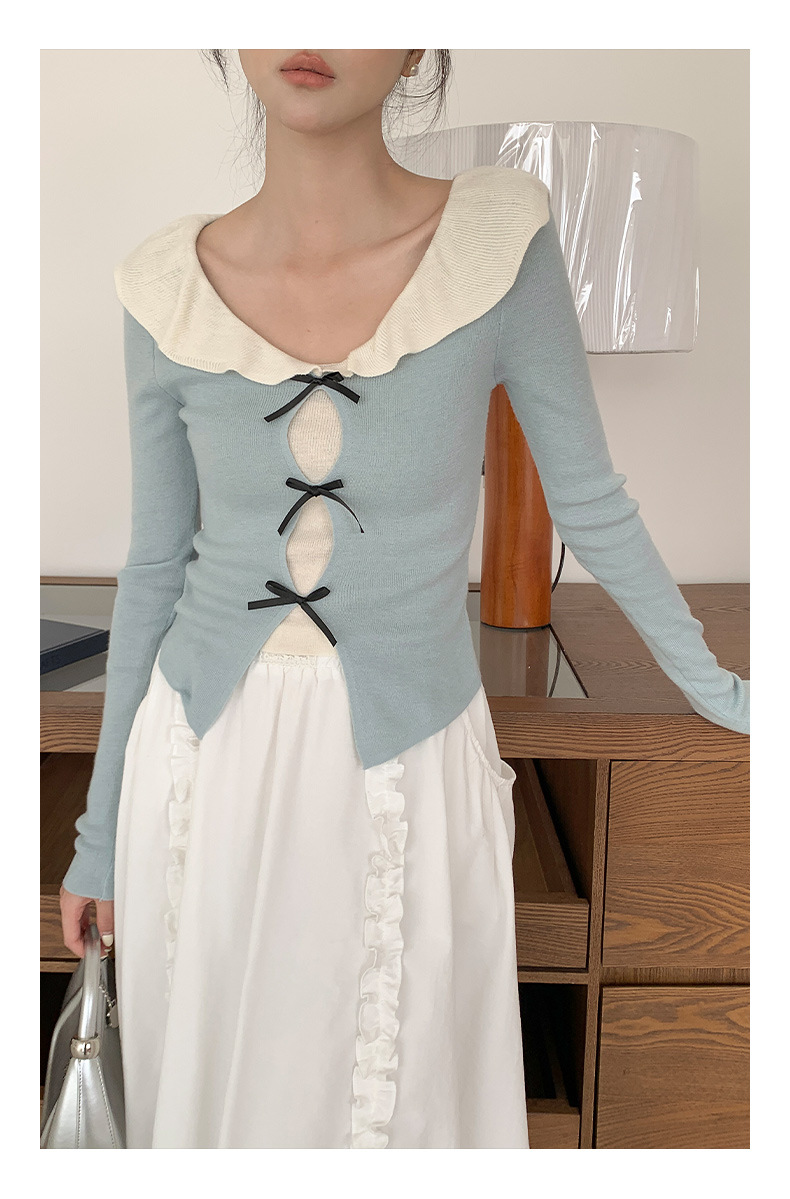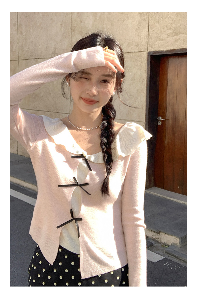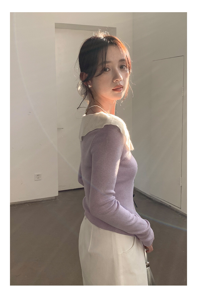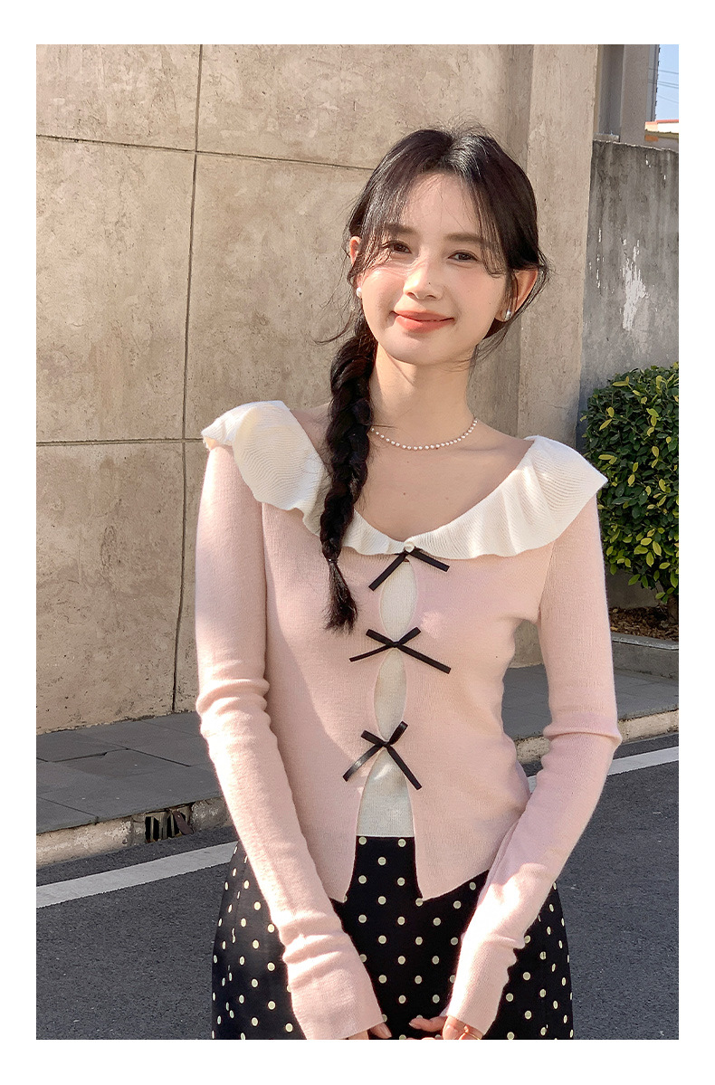 Yier 스웨터 디자인 가짜 투피스 인형 칼라 보우 스웨터 여성 짧은 스타일 부드러운 슬림 기질 0337