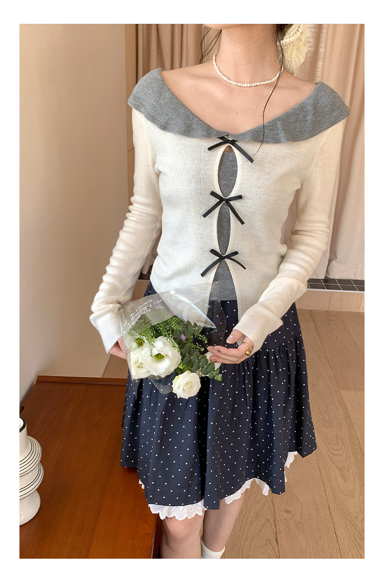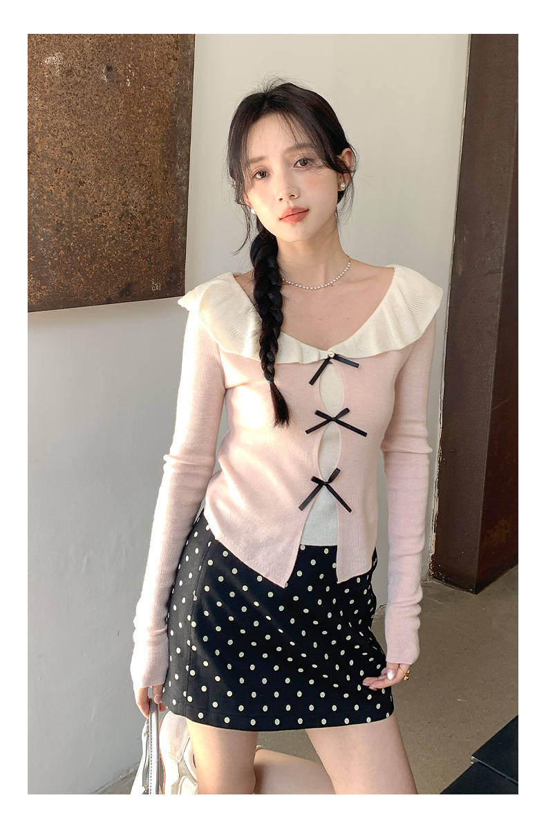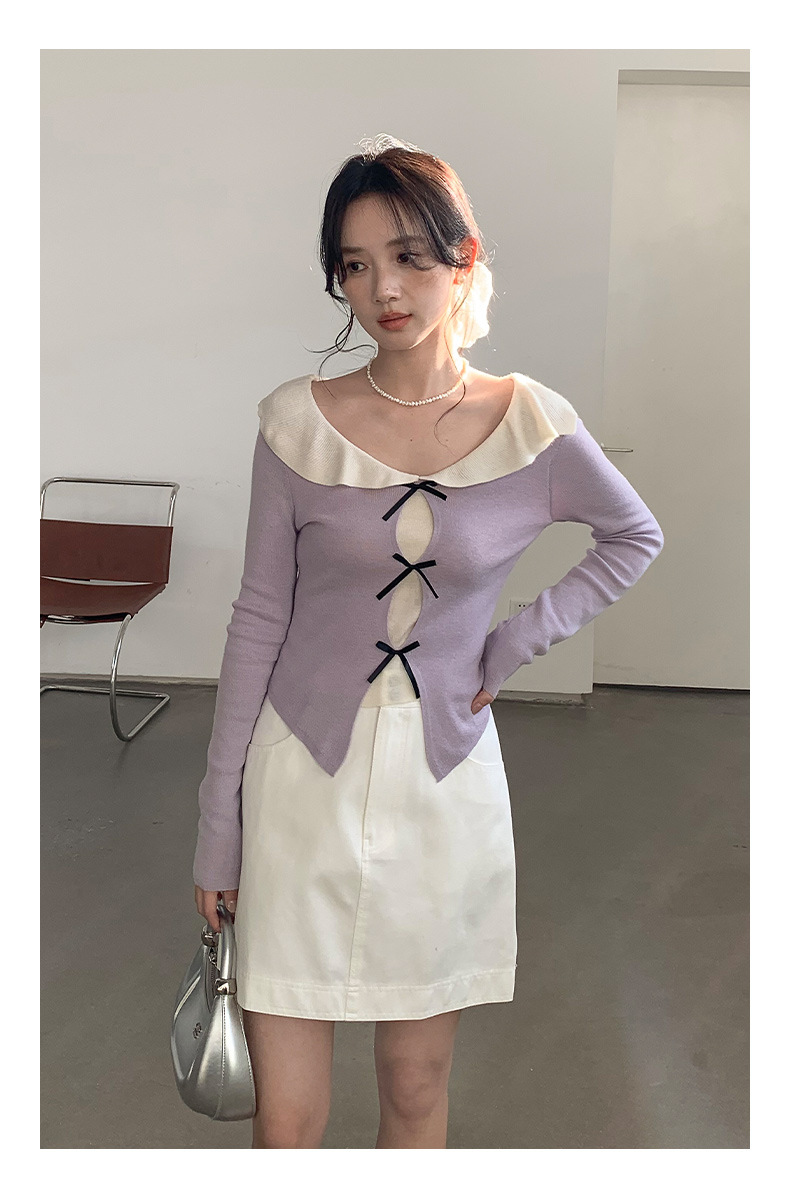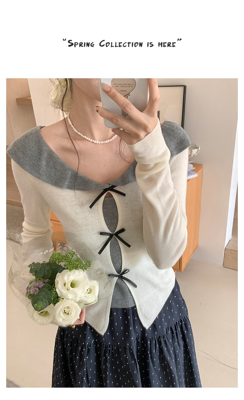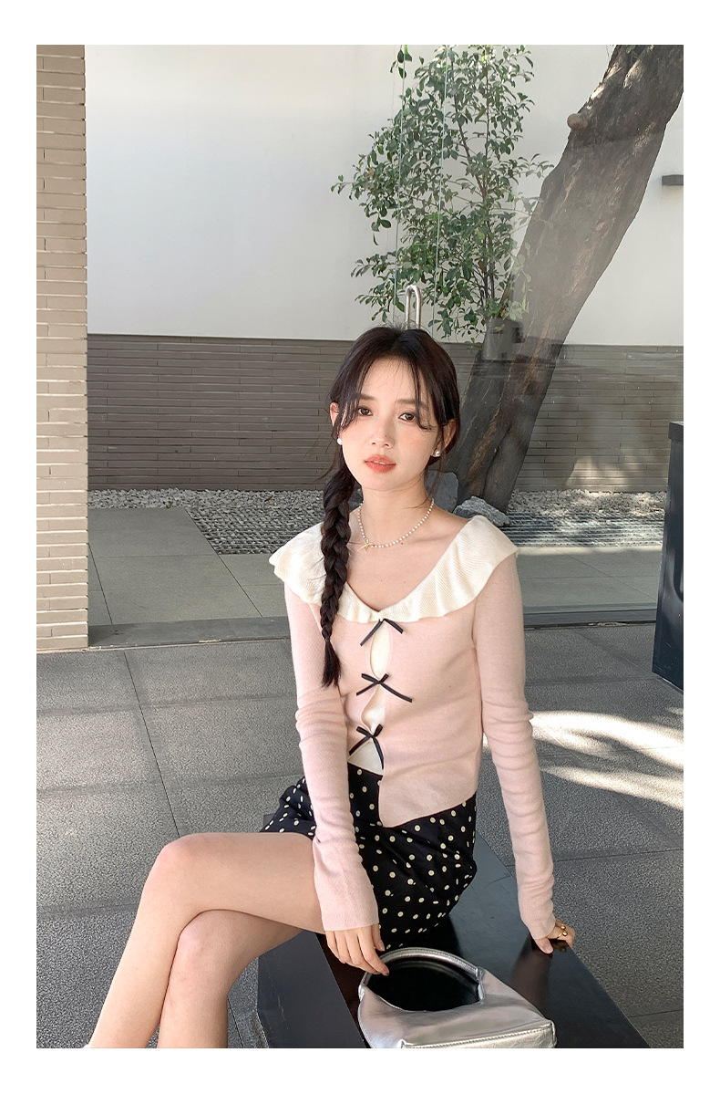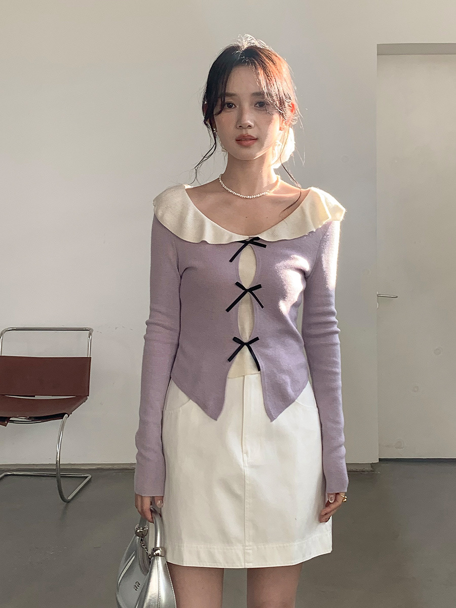 Yier 스웨터 디자인 가짜 투피스 인형 칼라 보우 스웨터 여성 짧은 스타일 부드러운 슬림 기질 0337