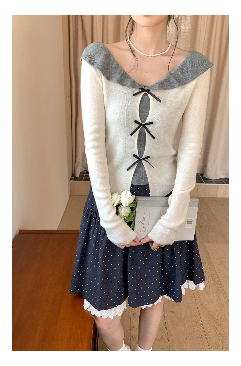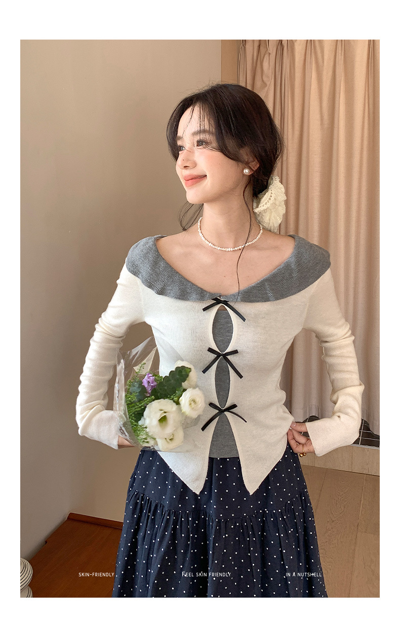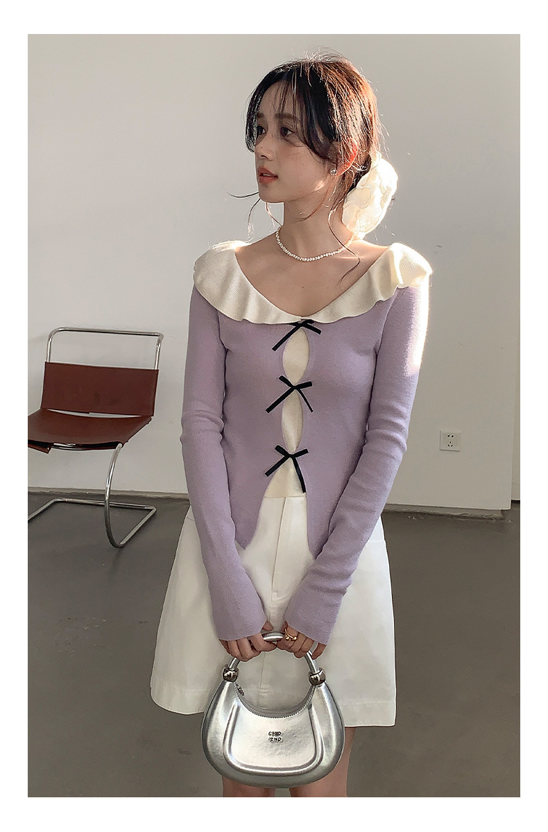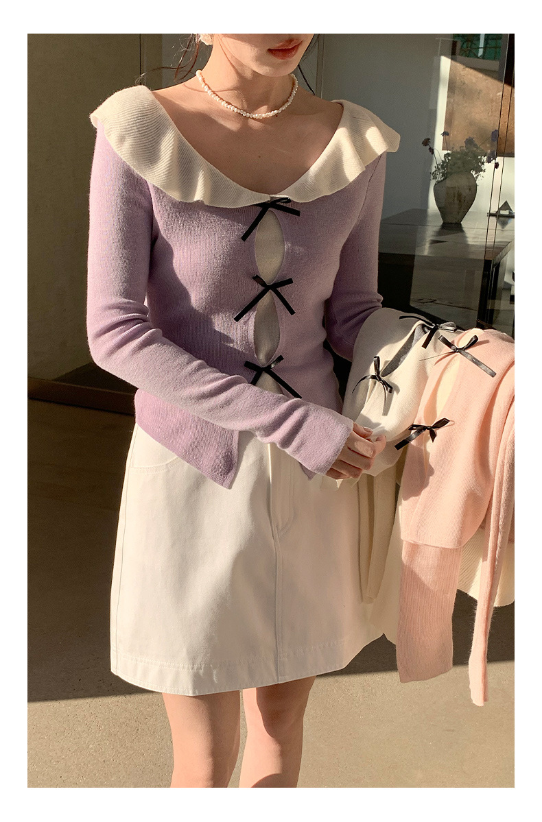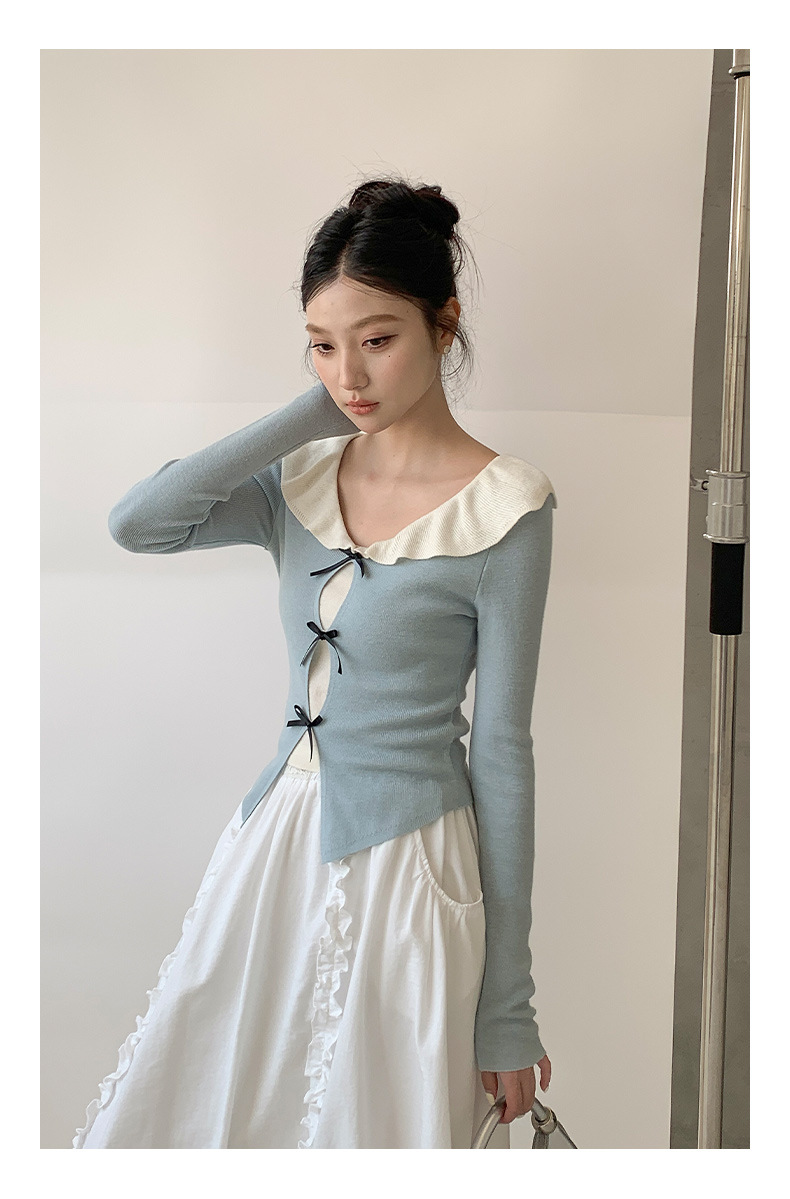 Yier 스웨터 디자인 가짜 투피스 인형 칼라 보우 스웨터 여성 짧은 스타일 부드러운 슬림 기질 0337