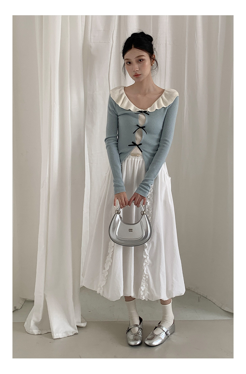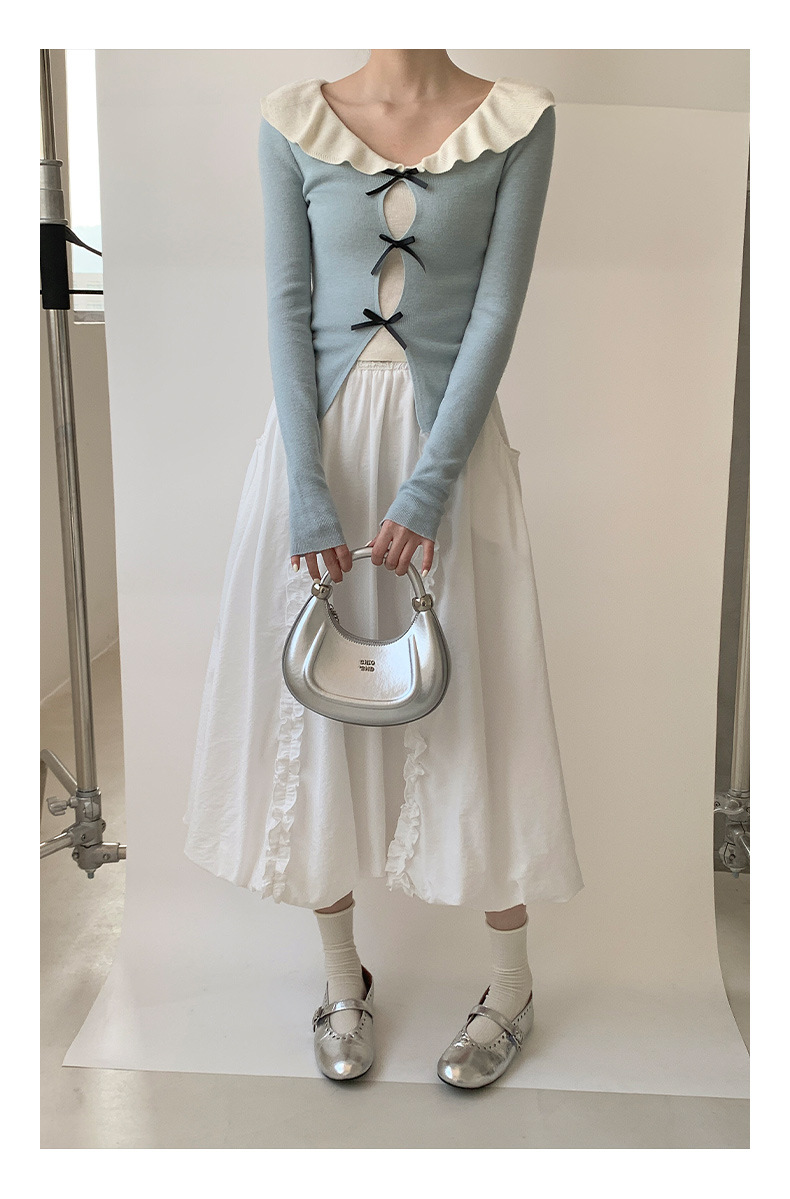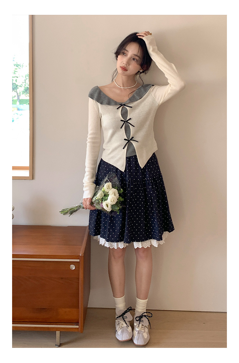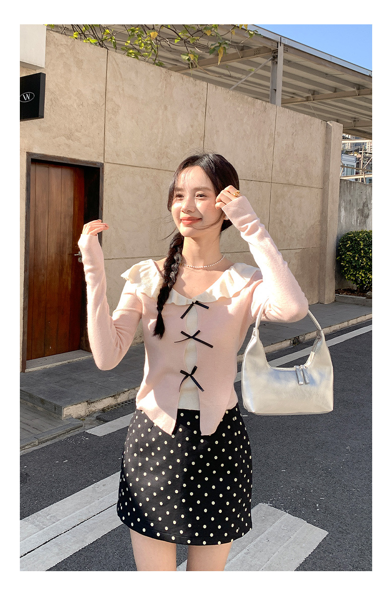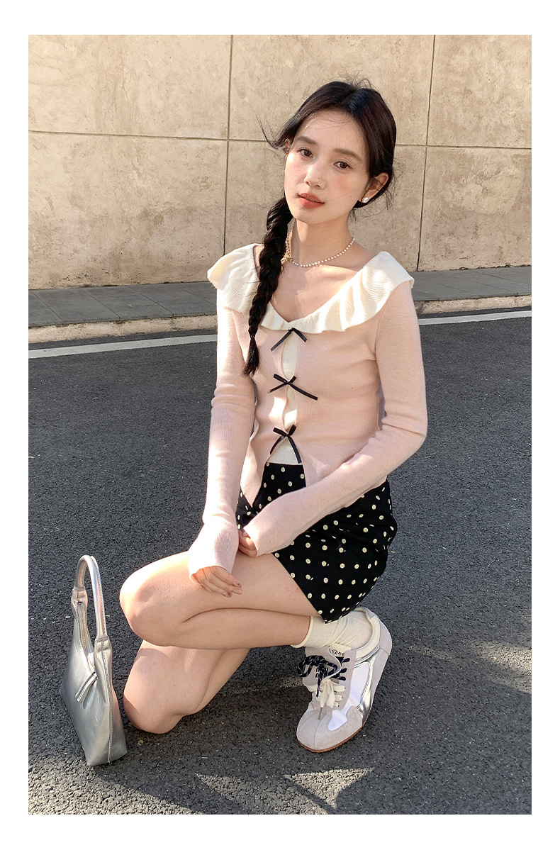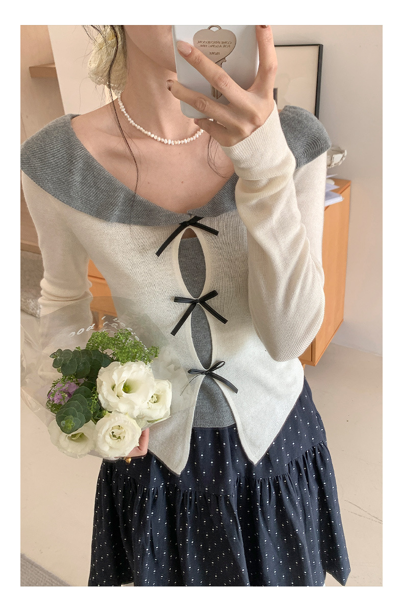 Yier 스웨터 디자인 가짜 투피스 인형 칼라 보우 스웨터 여성 짧은 스타일 부드러운 슬림 기질 0337