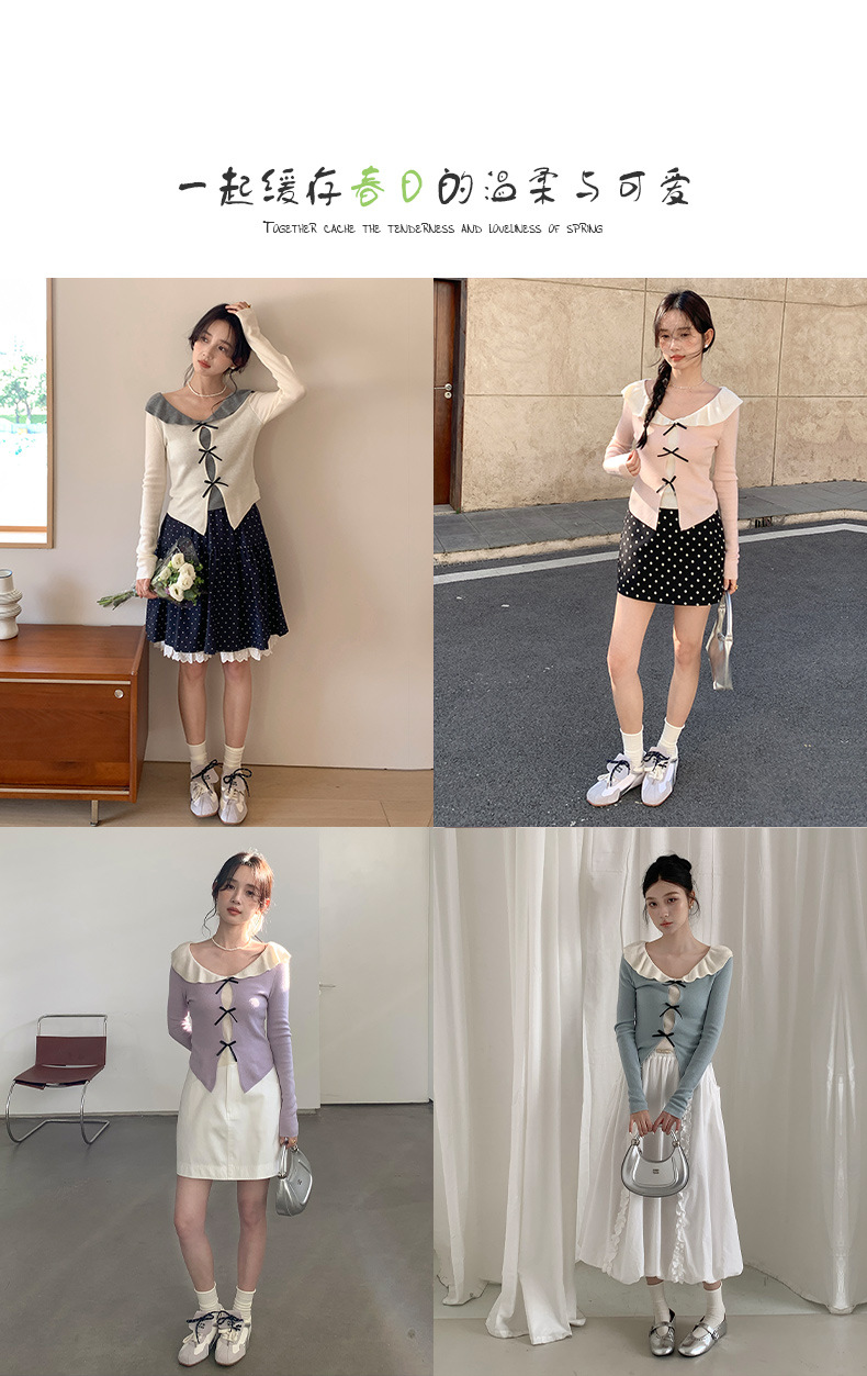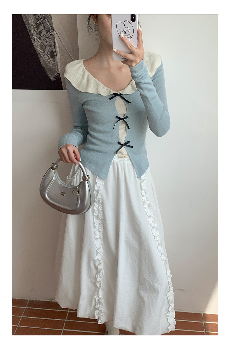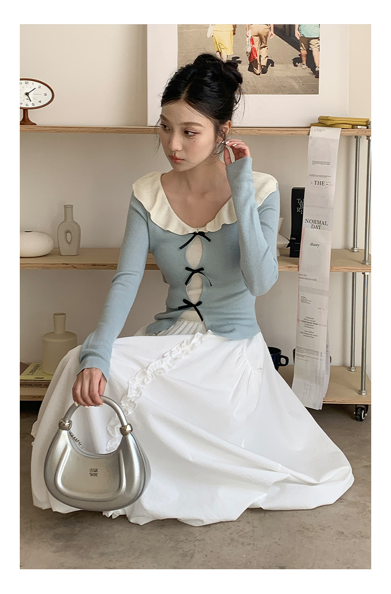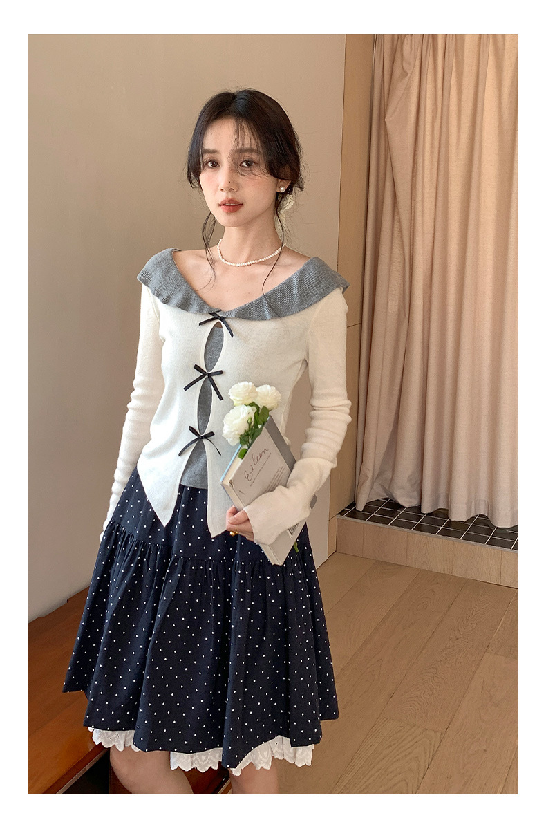 Yier 스웨터 디자인 가짜 투피스 인형 칼라 보우 스웨터 여성 짧은 스타일 부드러운 슬림 기질 0337스토어 가기