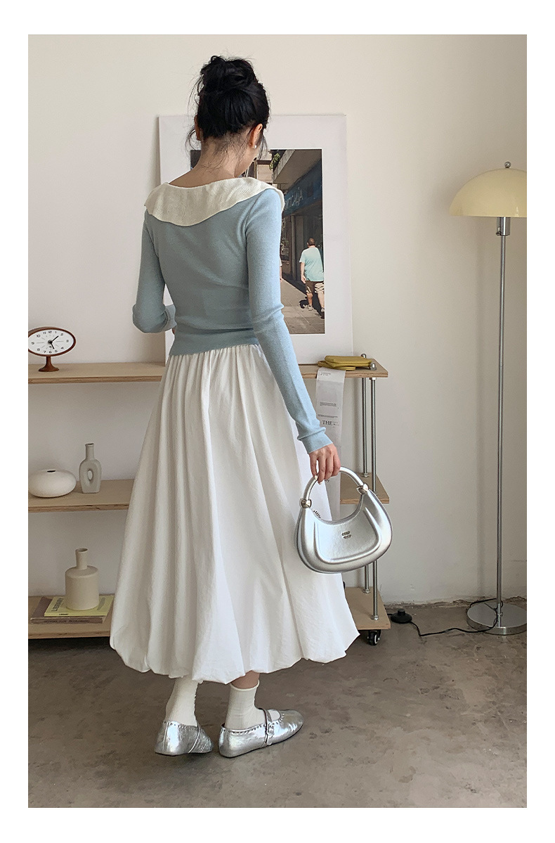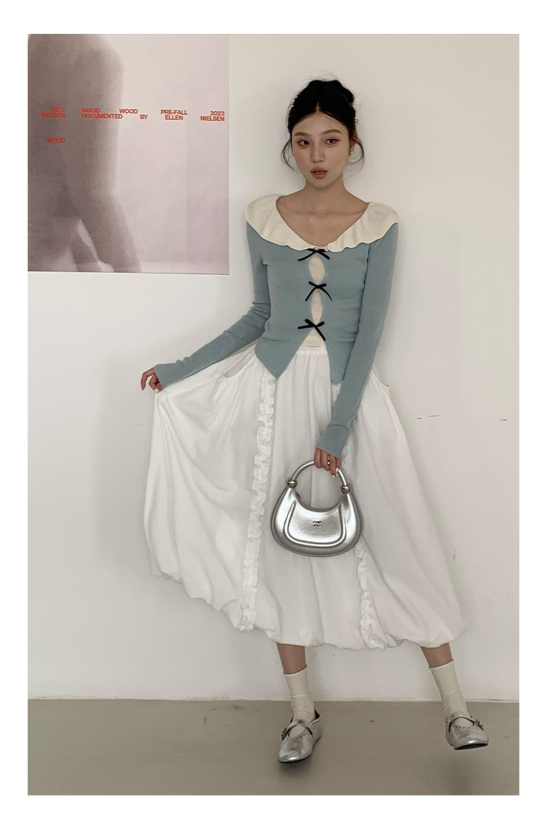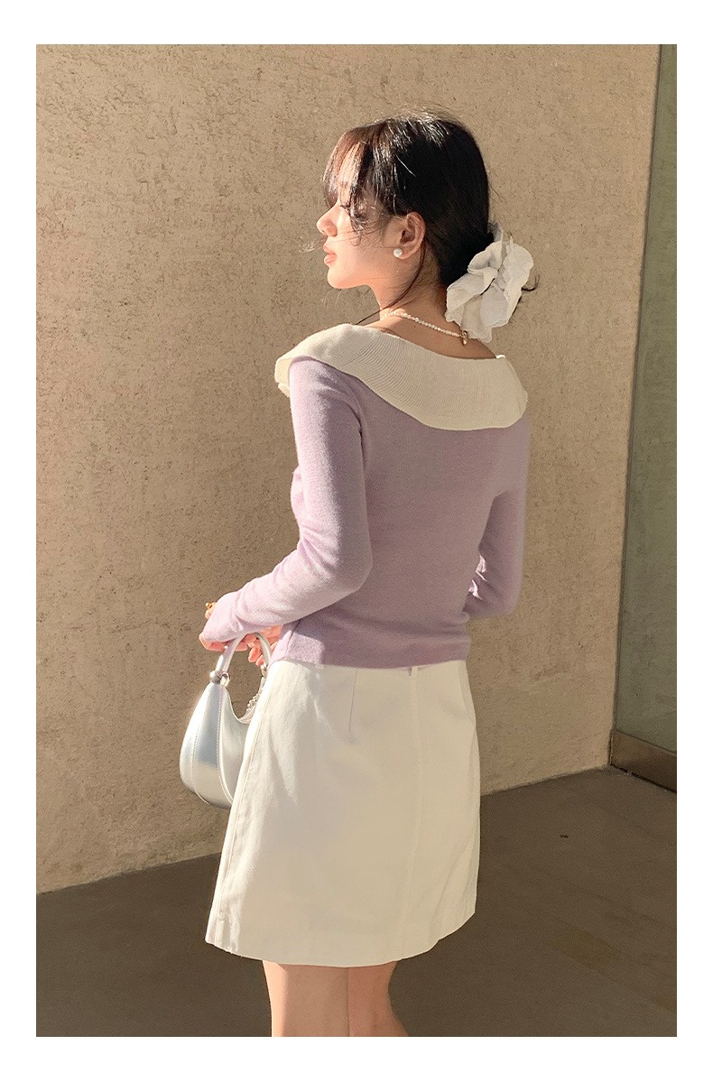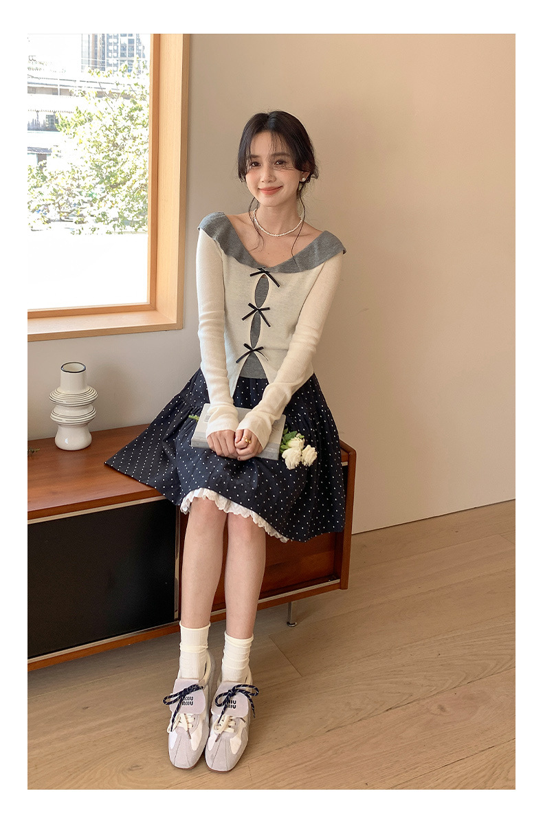 Yier 스웨터 디자인 가짜 투피스 인형 칼라 보우 스웨터 여성 짧은 스타일 부드러운 슬림 기질 0337스토어 가기
