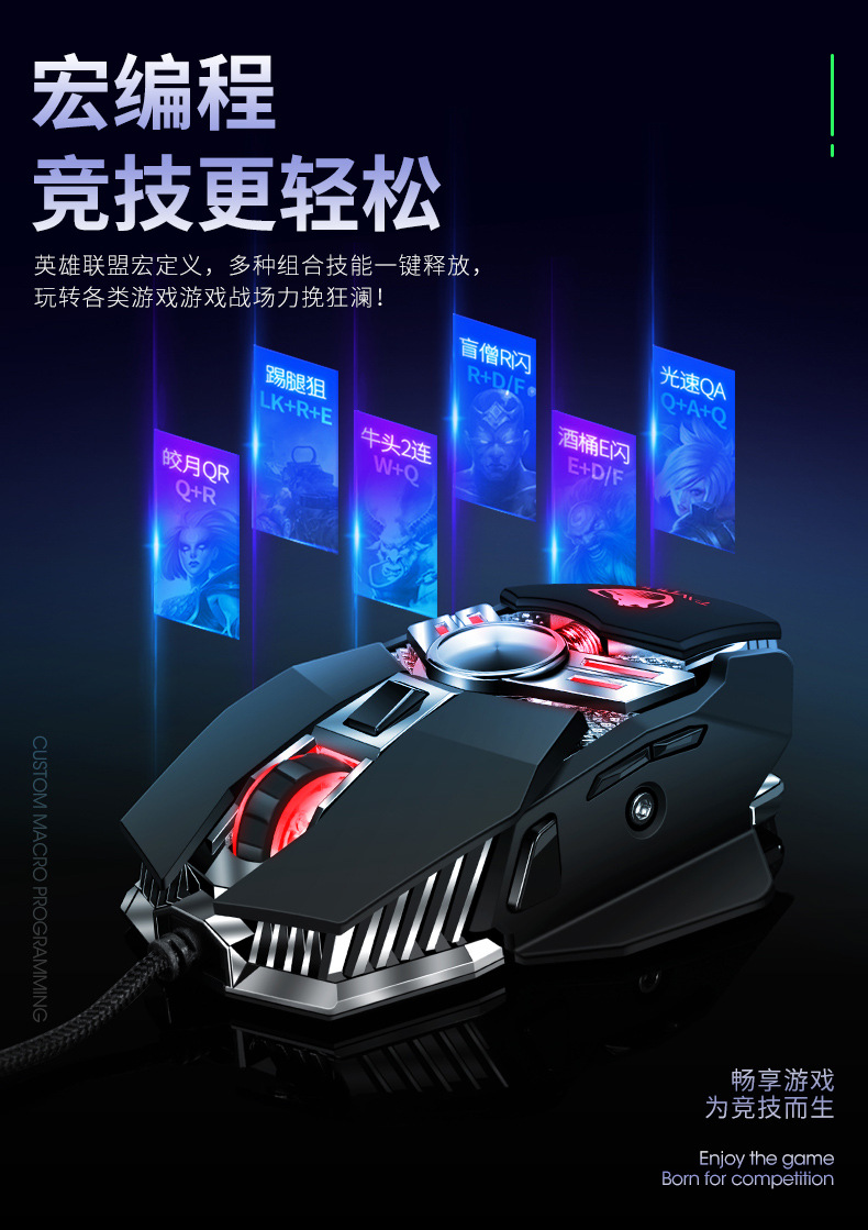 T-WOLF 천둥 늑대 V10 게임 마우스 유선 금속 빛나는 전자 스포츠 기계 컴퓨터 마우스 매크로 프로그래밍 국경스토어 가기
