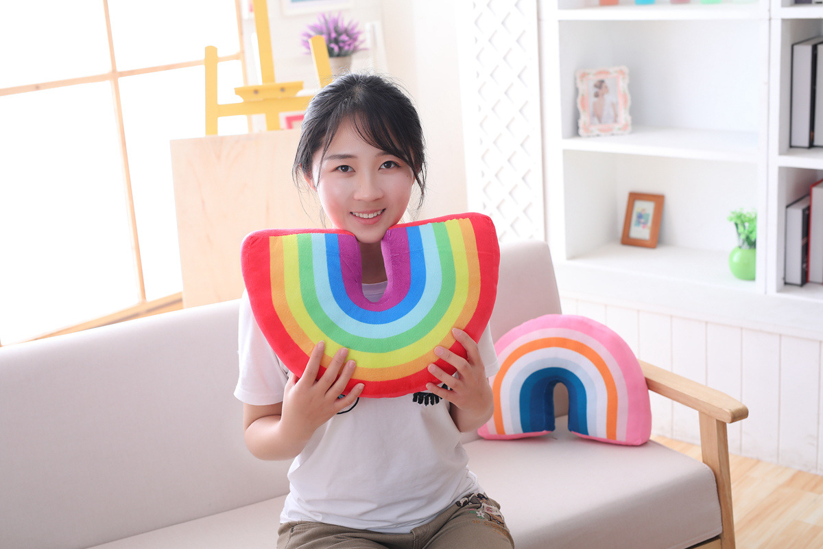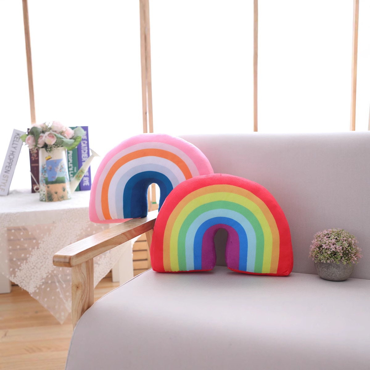 어린이 방 무지개 베개 베개 쿠션 봉제 장난감 목 베개 사무실 잠자는 아기 장난감 홈 장식스토어 가기