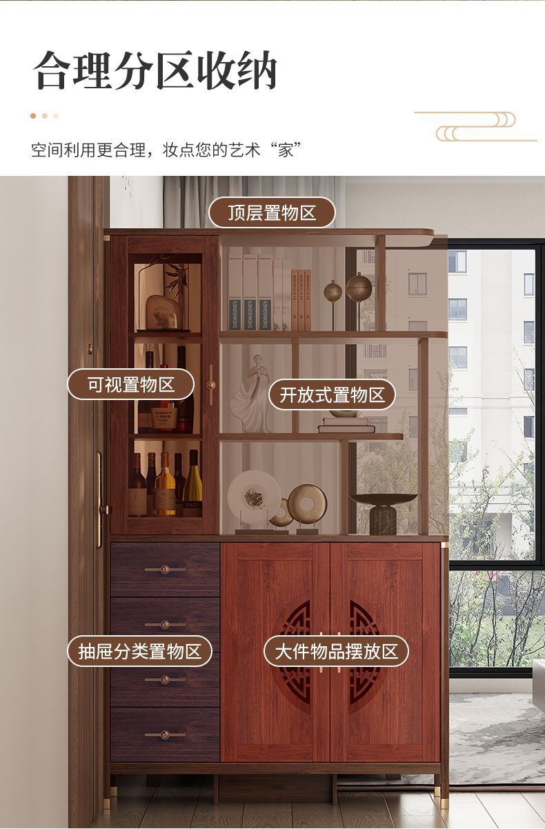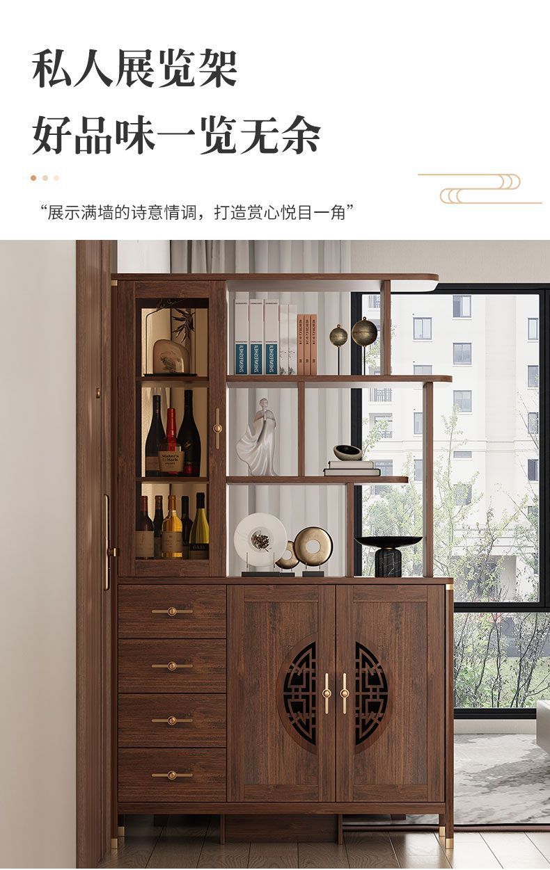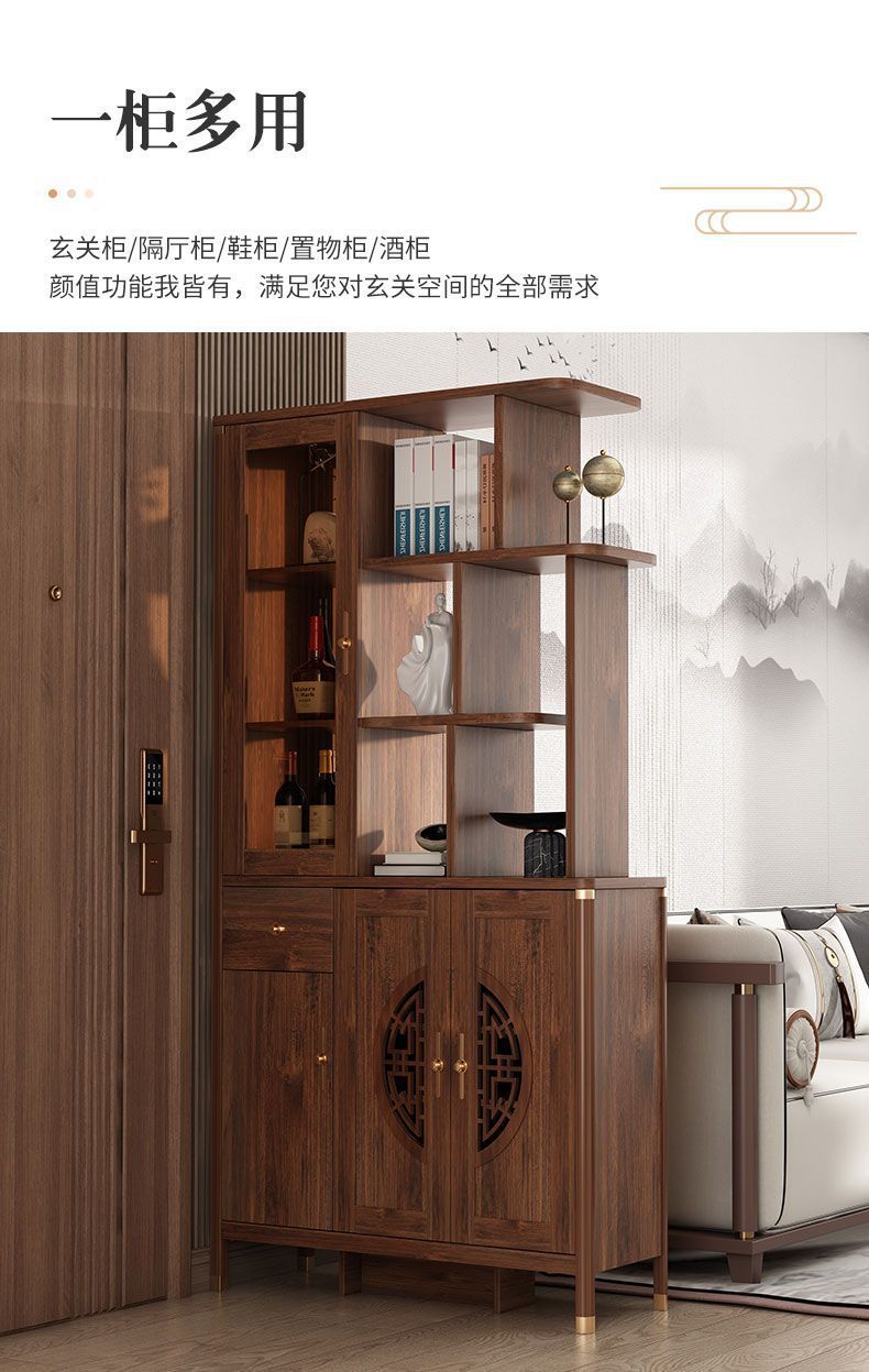 새로운 중국 스타일 입구 신발 캐비닛 홈 거실 파티션 통합 벽 복도 캐비닛 솔리드 우드 프레임 도어 디스플레이 캐비닛