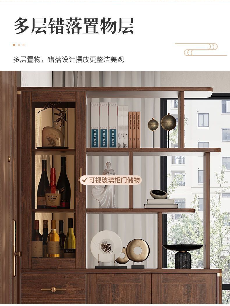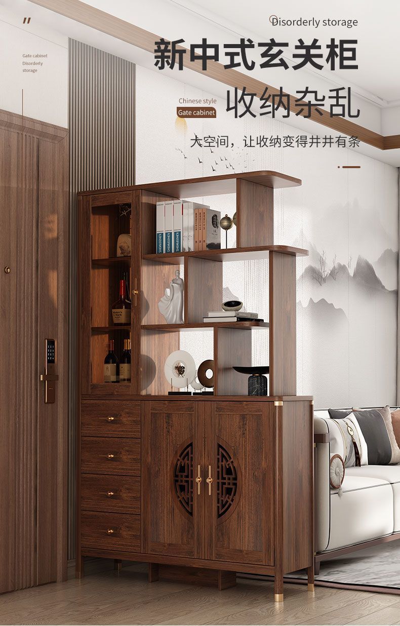 새로운 중국 스타일 입구 신발 캐비닛 홈 거실 파티션 통합 벽 복도 캐비닛 솔리드 우드 프레임 도어 디스플레이 캐비닛스토어 가기