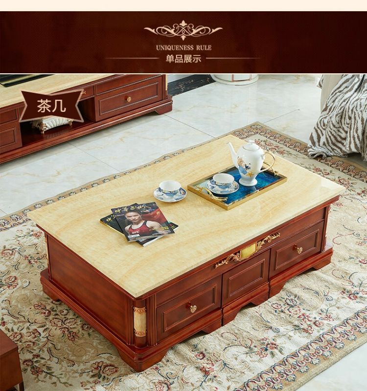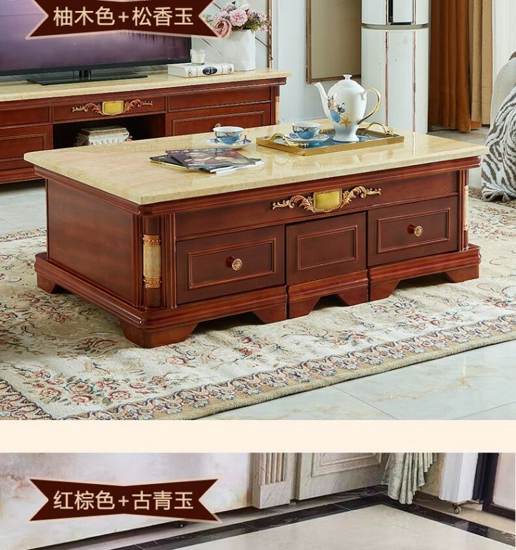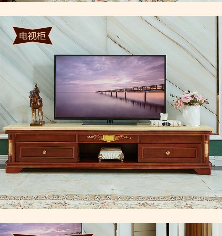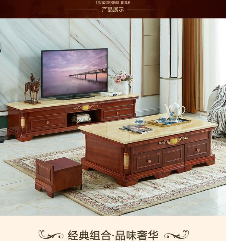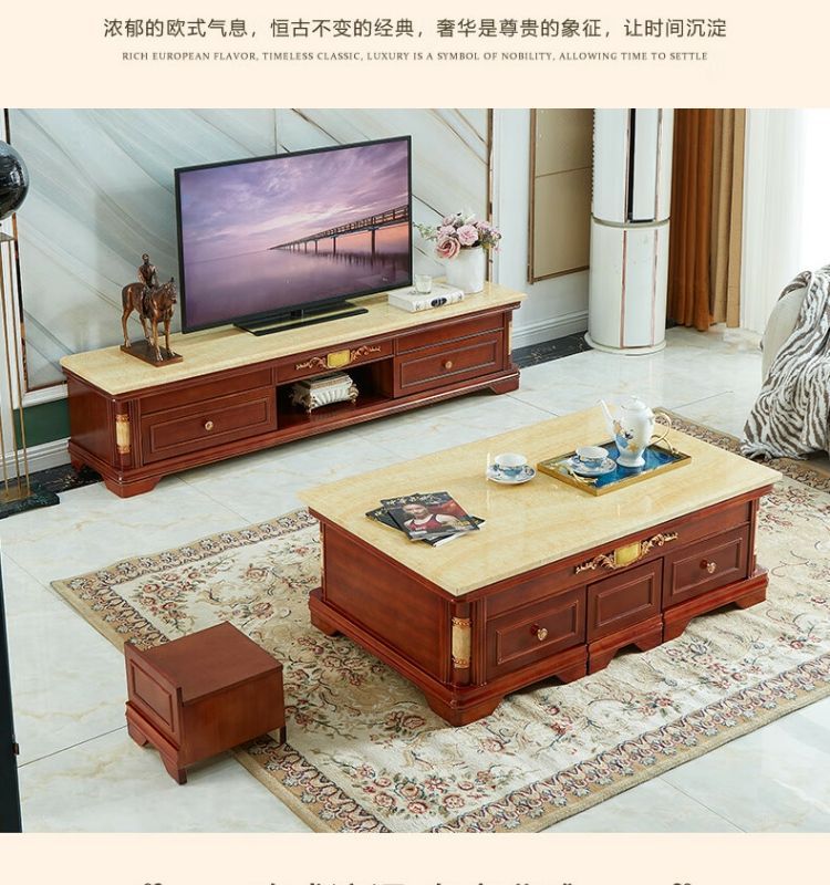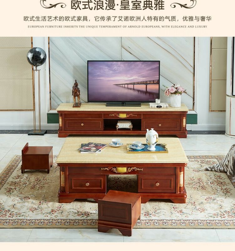 마른 두꺼운 가구 유럽 스타일 대리석 커피 테이블 TV 내각 조합 거실 단단한 나무 작은 아파트 현대 간단한 럭셔리 새로운스토어 가기