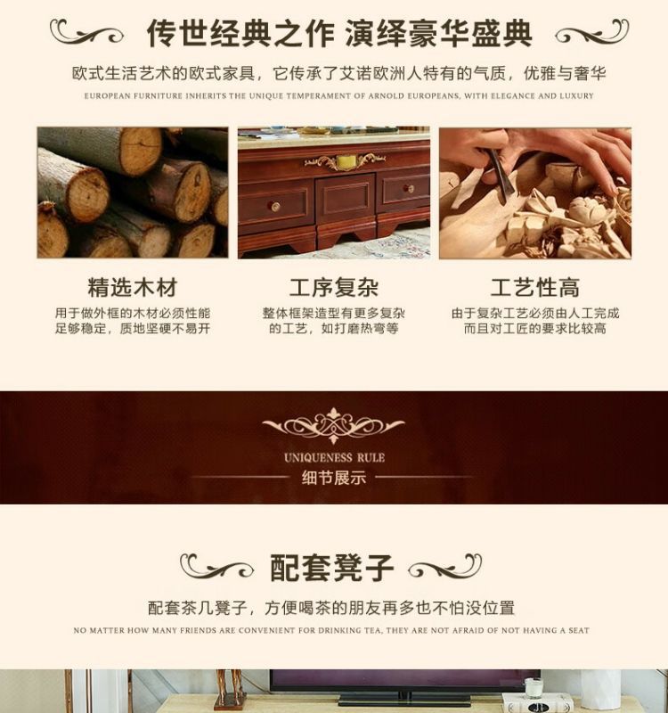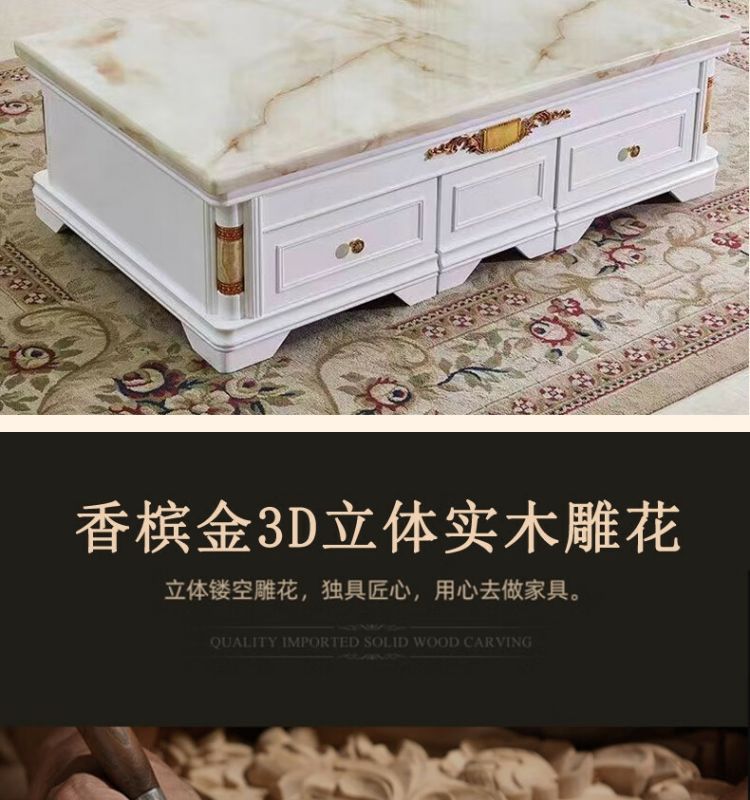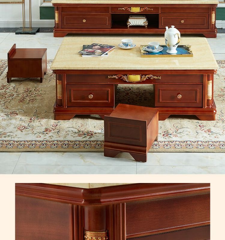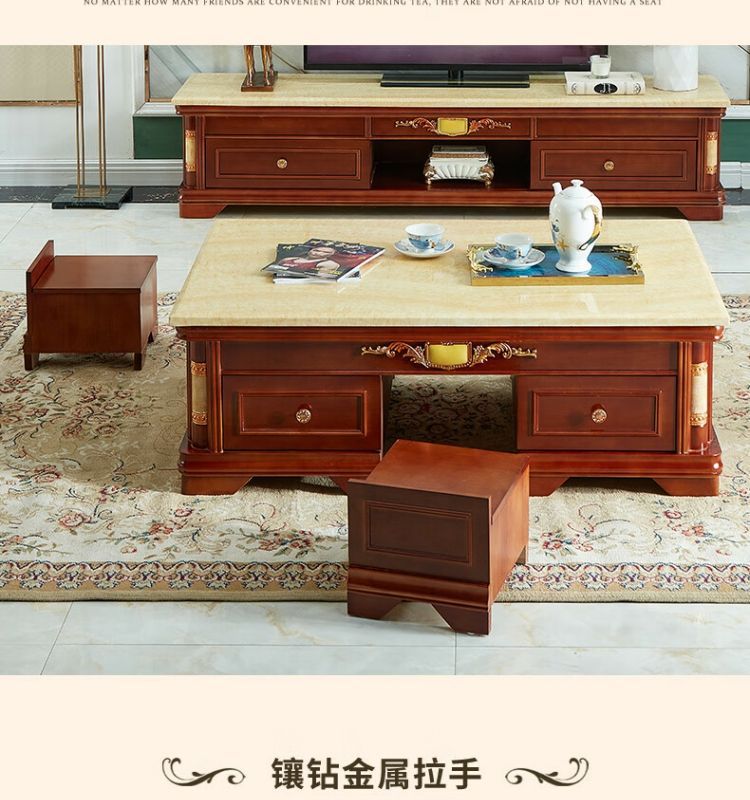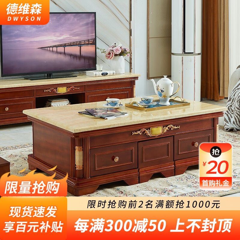 마른 두꺼운 가구 유럽 스타일 대리석 커피 테이블 TV 내각 조합 거실 단단한 나무 작은 아파트 현대 간단한 럭셔리 새로운스토어 가기