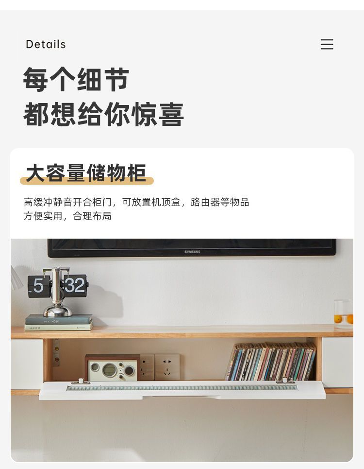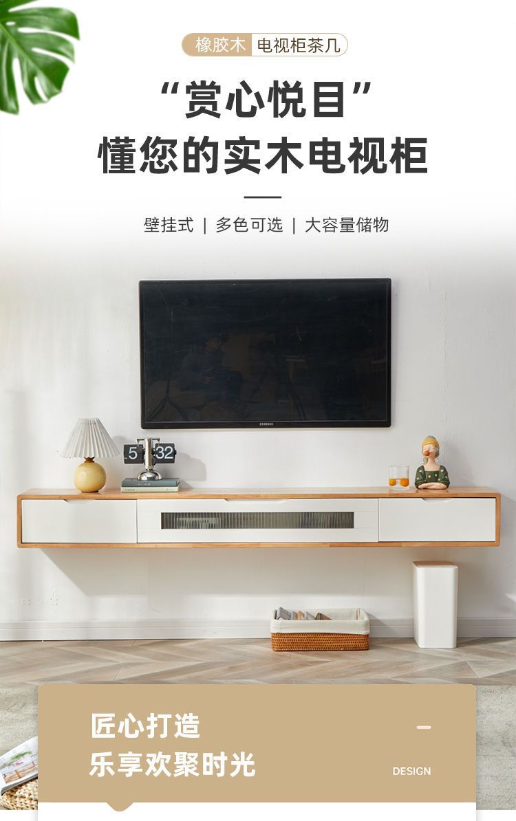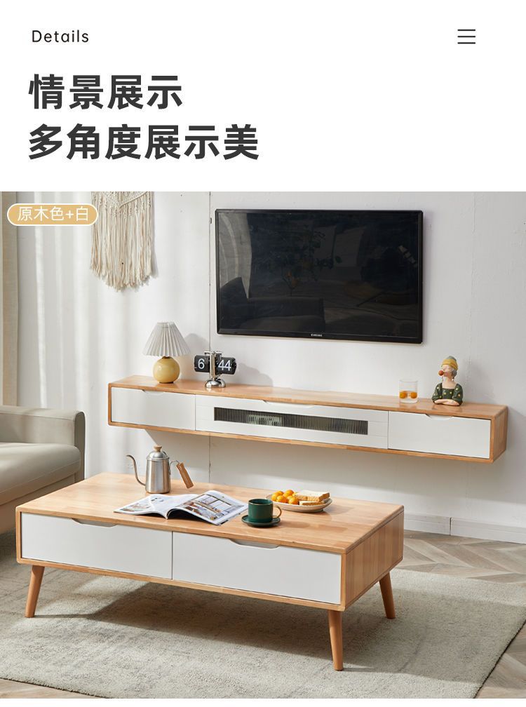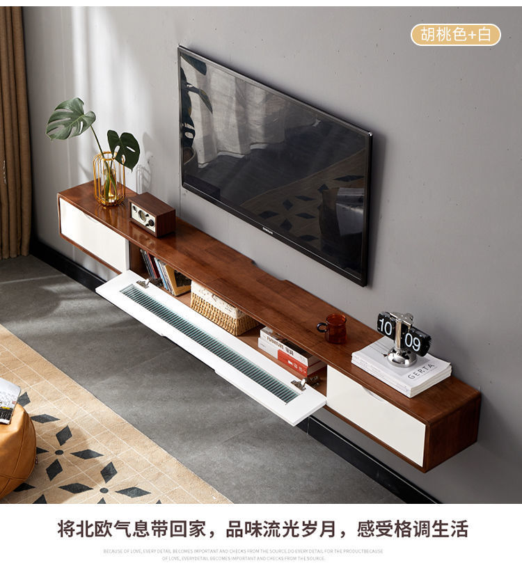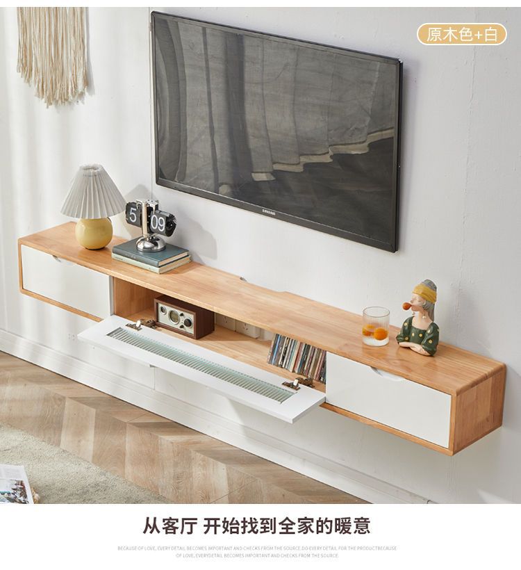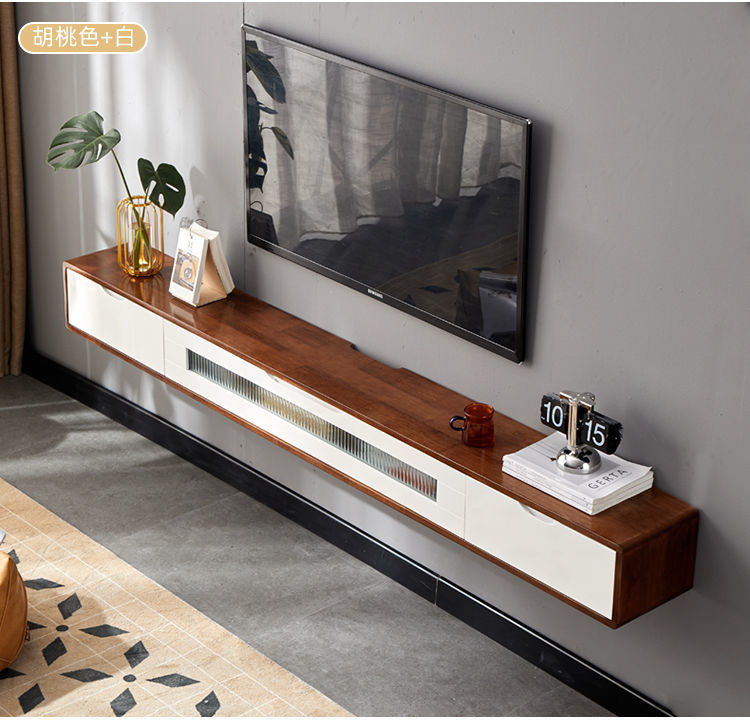 교수형 TV 캐비닛 커피 테이블 조합 작은 아파트 가구 거실 배경 벽 단단한 나무 TV 내각 벽 교수형 캐비닛스토어 가기
