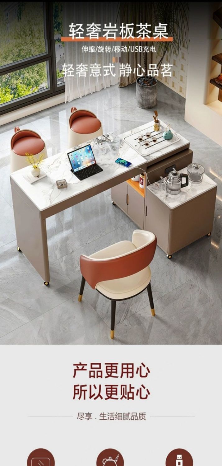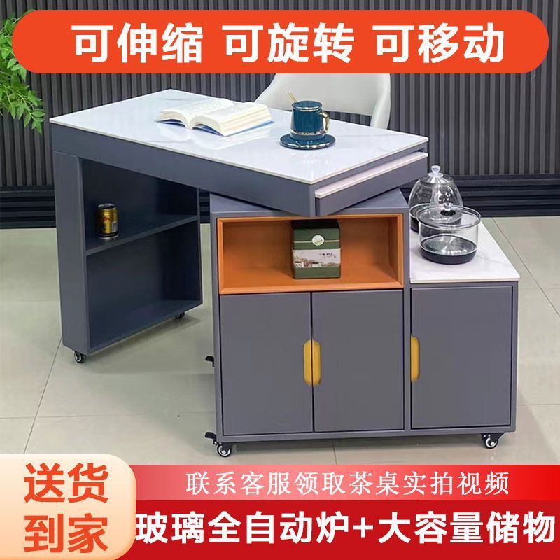 회전 가능한 모바일 텔레스코픽 차 테이블 다기능 발코니 차 작은 아파트 차 테이블과 의자 조합 가정용 록 플레이트 차 테이블스토어 가기