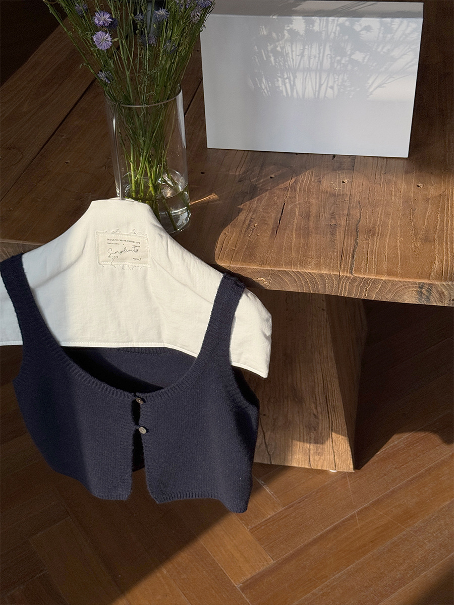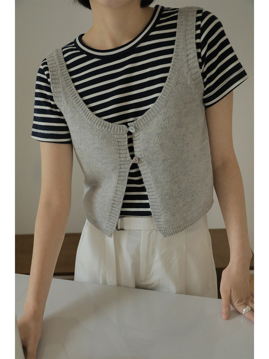 02.06 두 버튼 짧은 조끼 카디건 U-넥 스택 탑 0119스토어 가기
