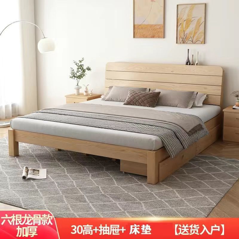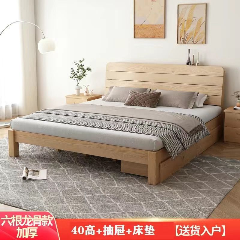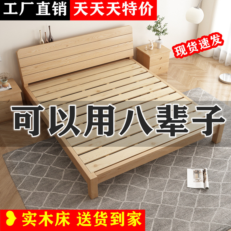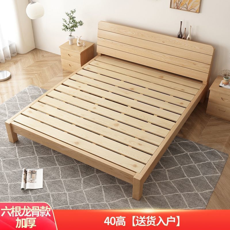 단단한 나무 침대 1.5 m 현대 간단한 더블 침대 1.82 m 임대 싱글 침대 1.2 간단한 침대 프레임 배달 매트리스스토어 가기
