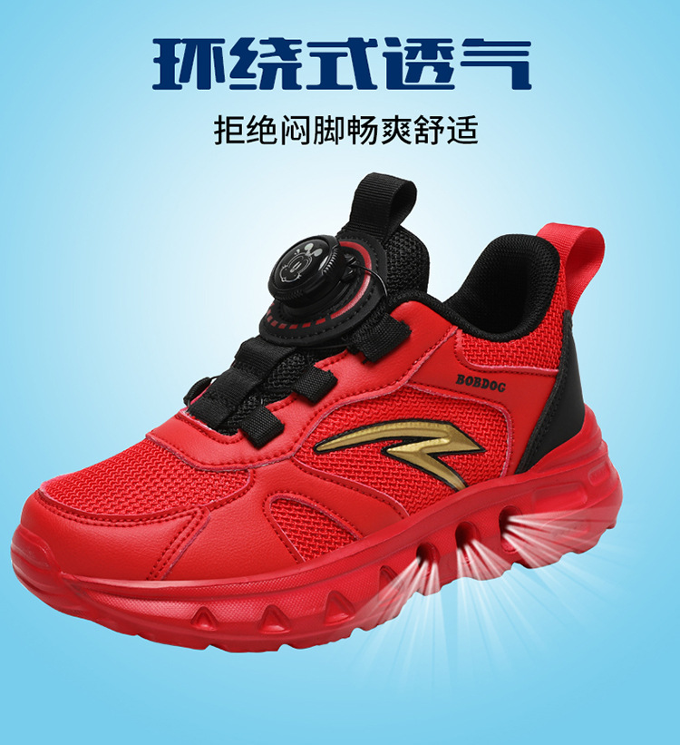 바부 콩 어린이 신발 남성용 신발 미끄럼 방지 운동화 봄 2025 대형 어린이 메쉬 통기성 운동화 레드