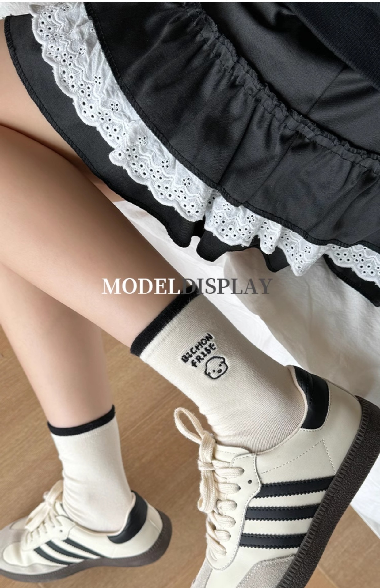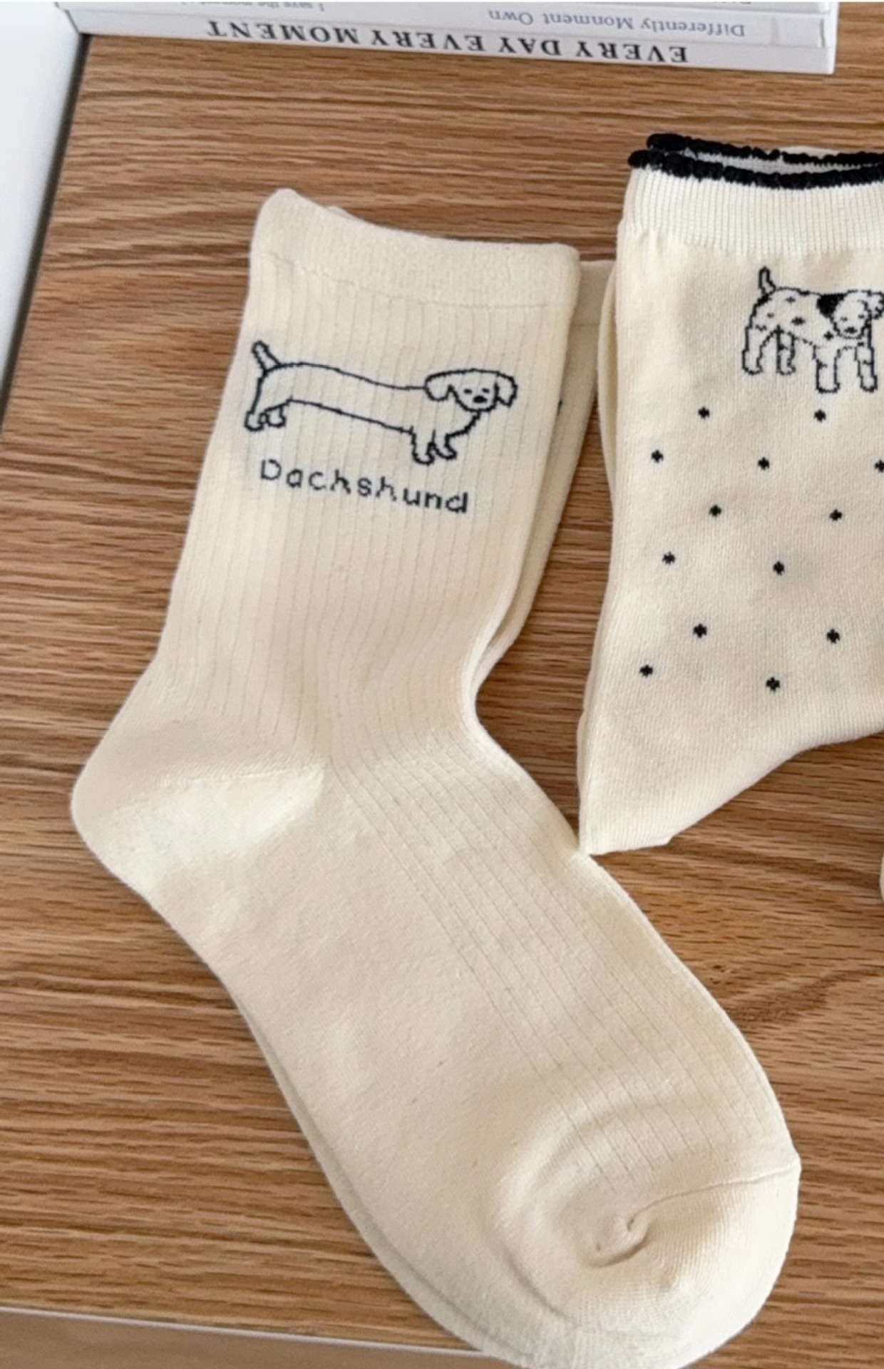 여성용 만화 강아지 양말, 여름용 귀여운 종아리 중간 양말, 순면, 트렌디한 인터넷 연예인, 여름용 여성용 한국 줄무늬 스타킹
