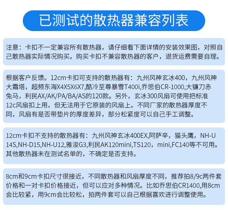 라디에이터 8/9cm 팬 버클 스트립 12CM 팬 라디에이터 버클 스틸 와이어 클램프 스프링 스틸 CPU 방열 공기 냉각스토어 가기