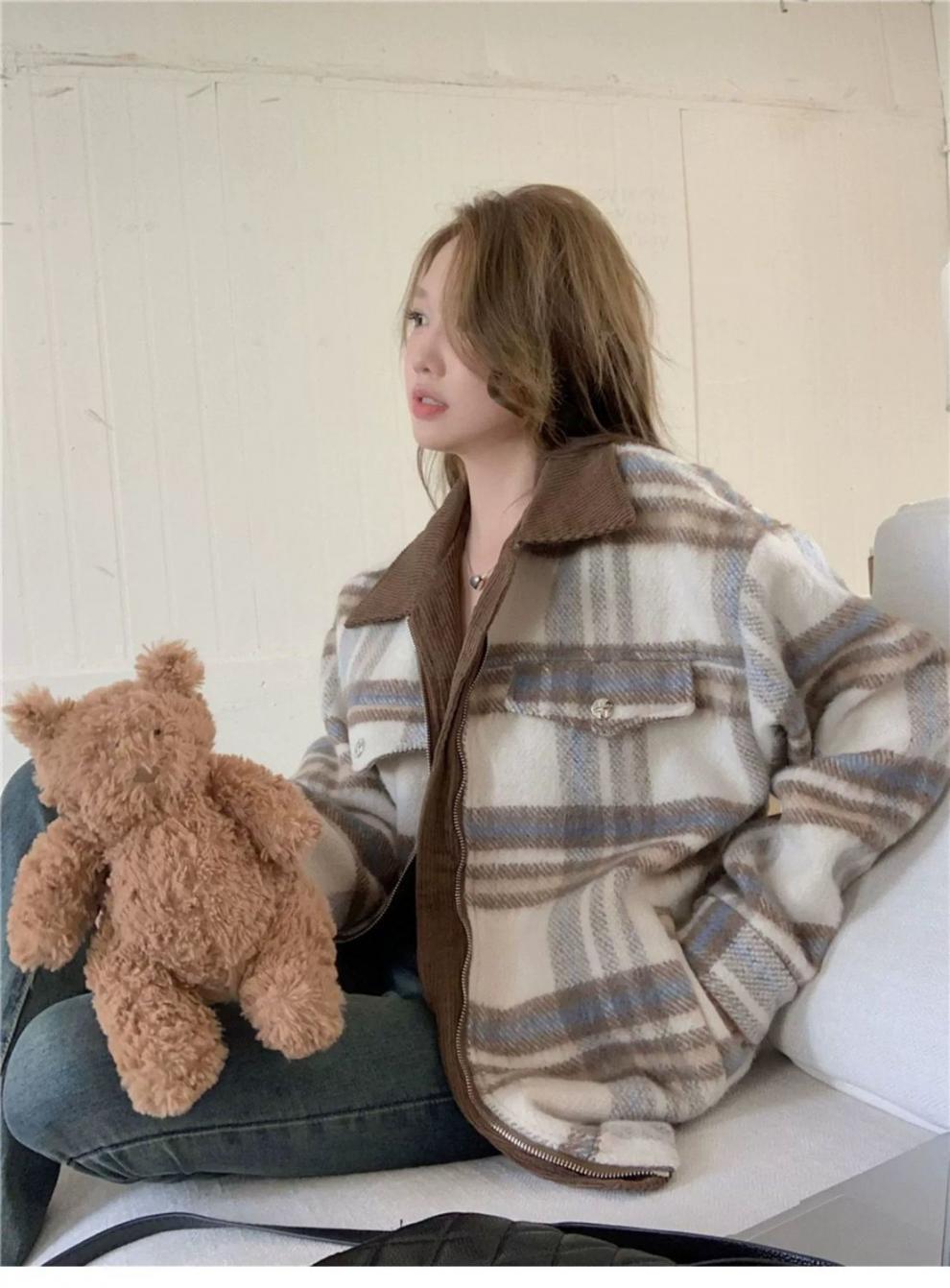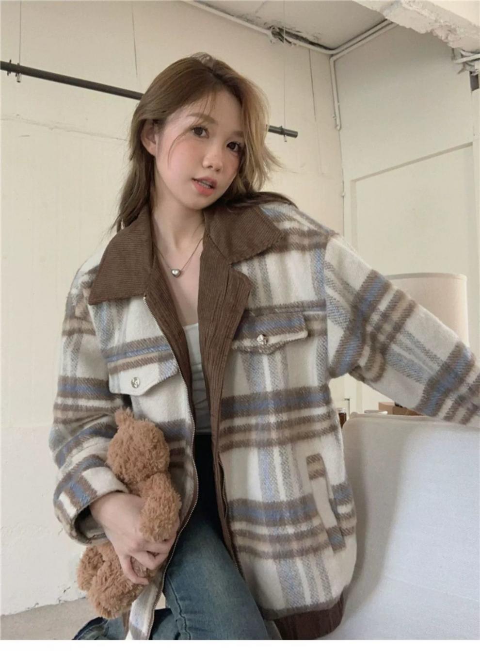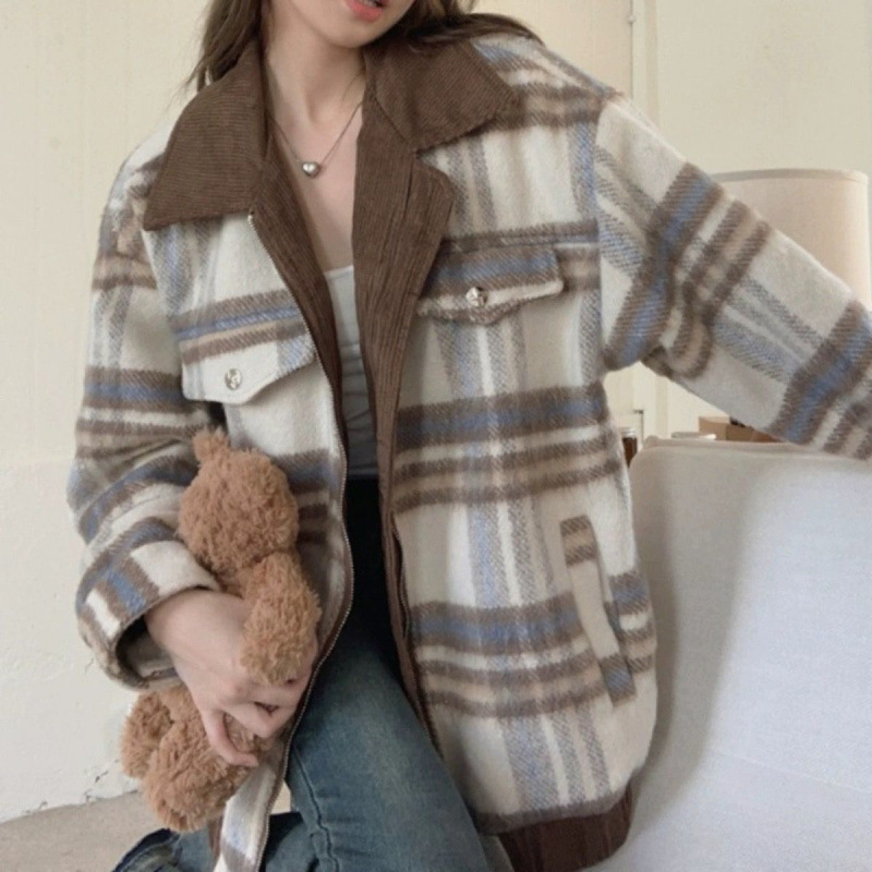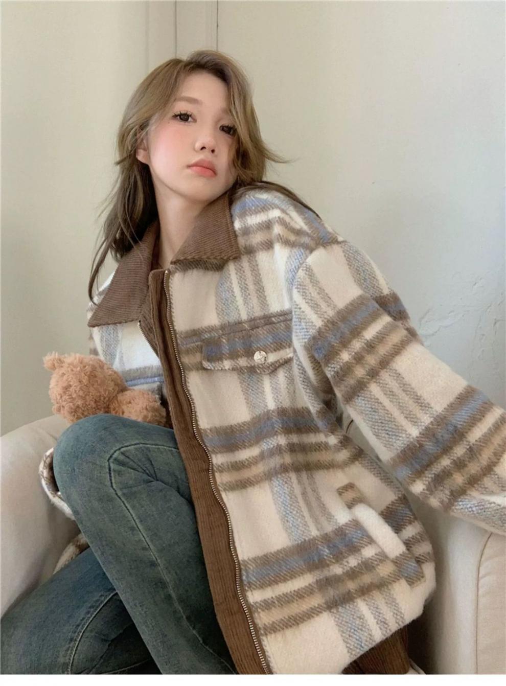 남성과 여성을위한 격자 무늬 모직 재킷 가을과 겨울 하이 엔드 패션 브랜드 두꺼운 따뜻한 옷깃 커플 캐주얼 모직 재킷스토어 가기