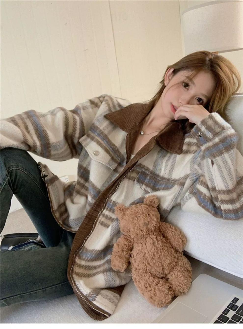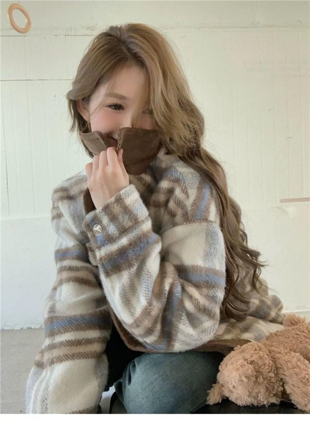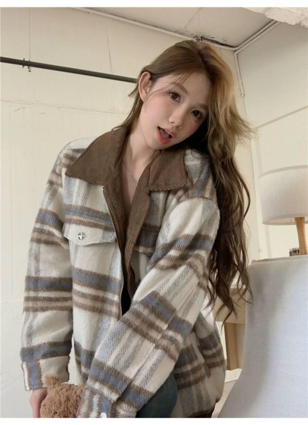 남성과 여성을위한 격자 무늬 모직 재킷 가을과 겨울 하이 엔드 패션 브랜드 두꺼운 따뜻한 옷깃 커플 캐주얼 모직 재킷스토어 가기