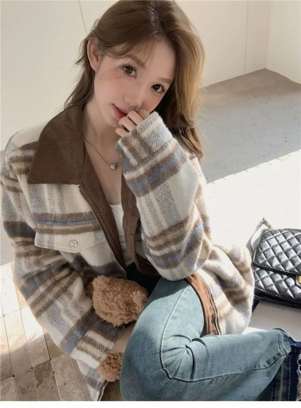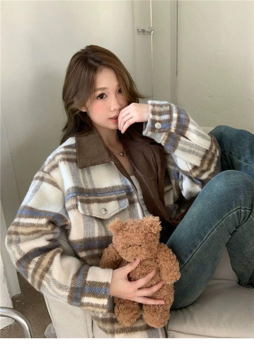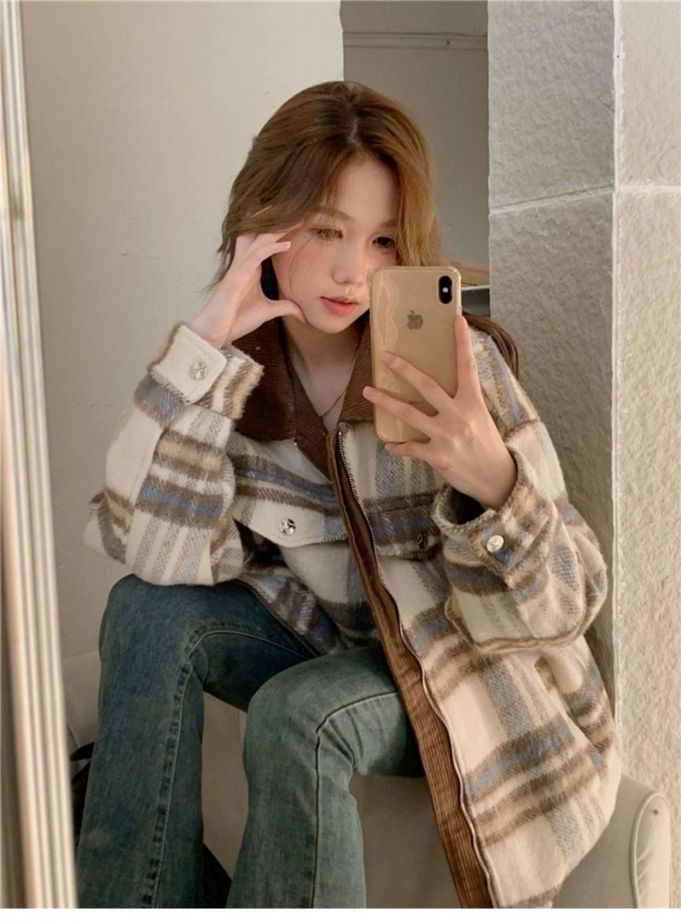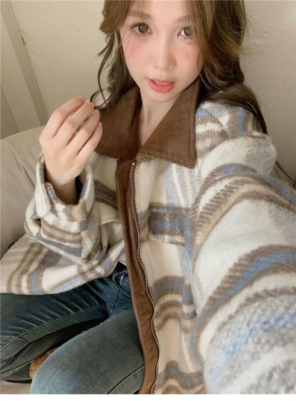 남성과 여성을위한 격자 무늬 모직 재킷 가을과 겨울 하이 엔드 패션 브랜드 두꺼운 따뜻한 옷깃 커플 캐주얼 모직 재킷스토어 가기