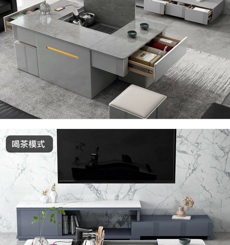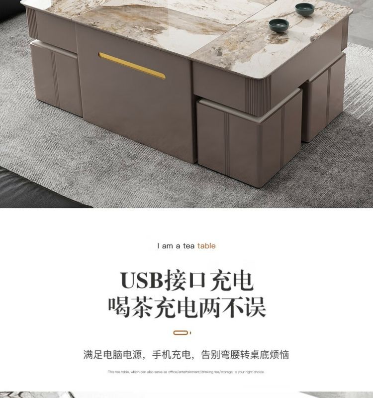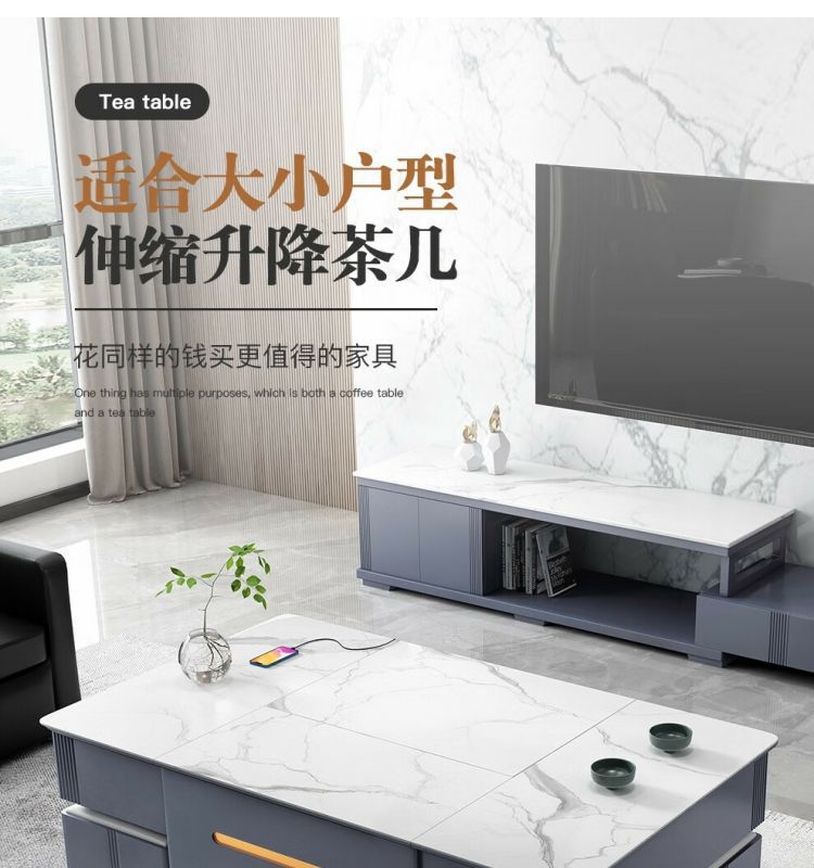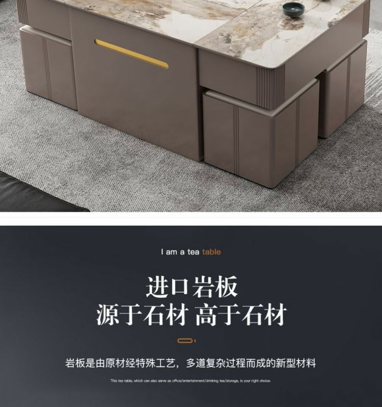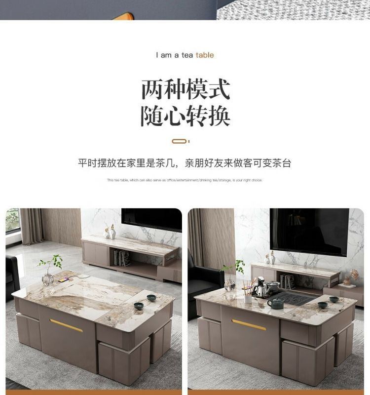 드라이 두꺼운 가구 락 보드 커피 테이블 다기능 자동 리프팅 쿵푸 티 테이블 차 트레이 통합 티 테이블 거실 홈스토어 가기