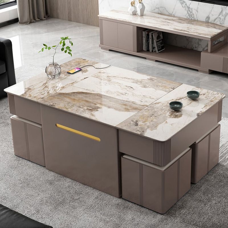 드라이 두꺼운 가구 락 보드 커피 테이블 다기능 자동 리프팅 쿵푸 티 테이블 차 트레이 통합 티 테이블 거실 홈