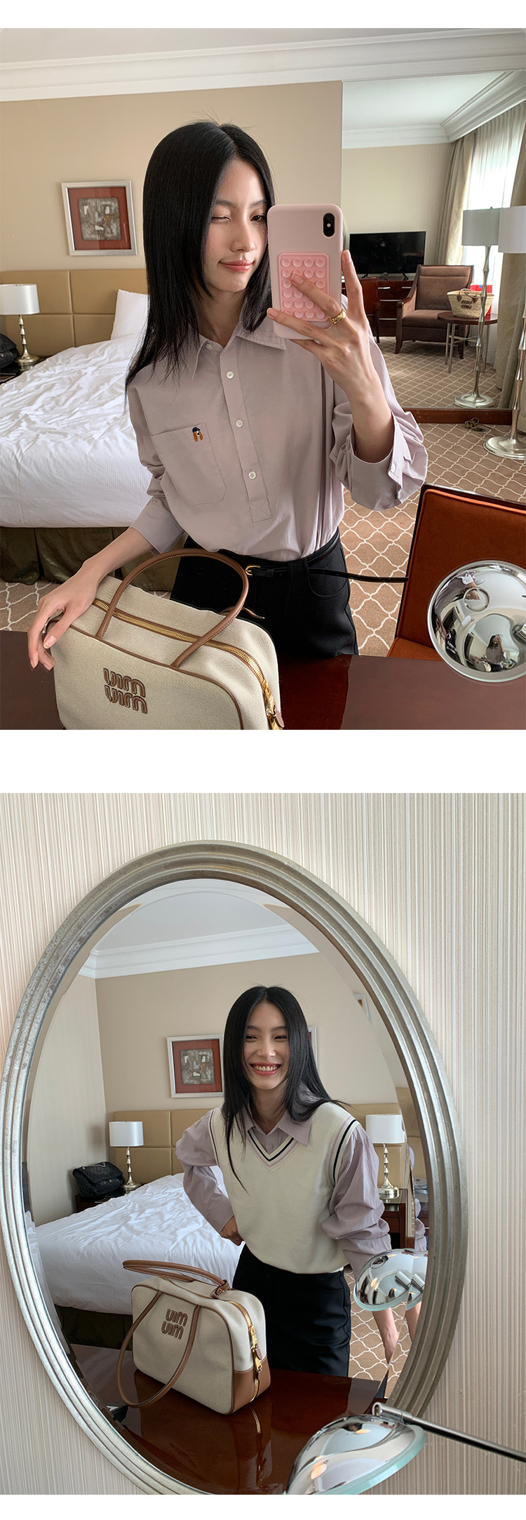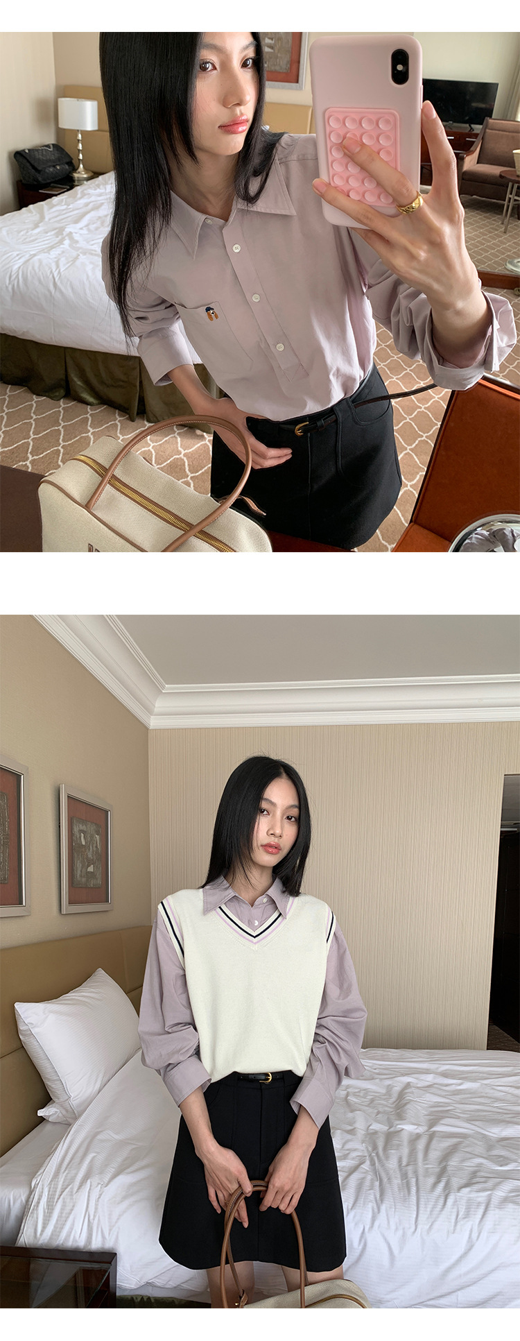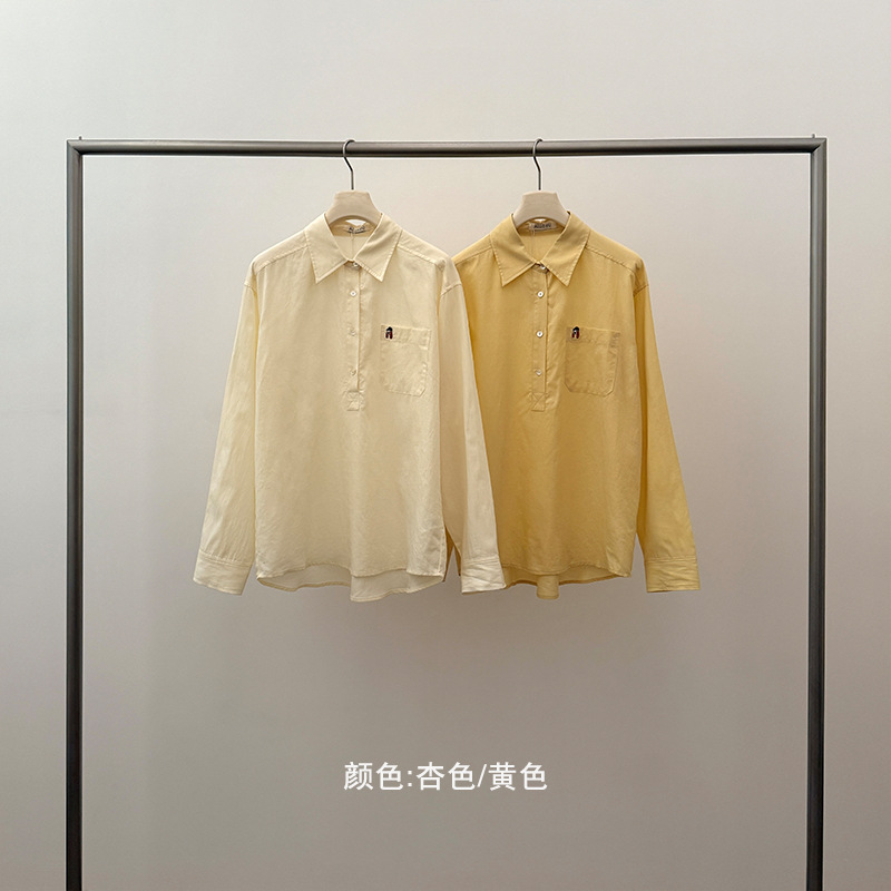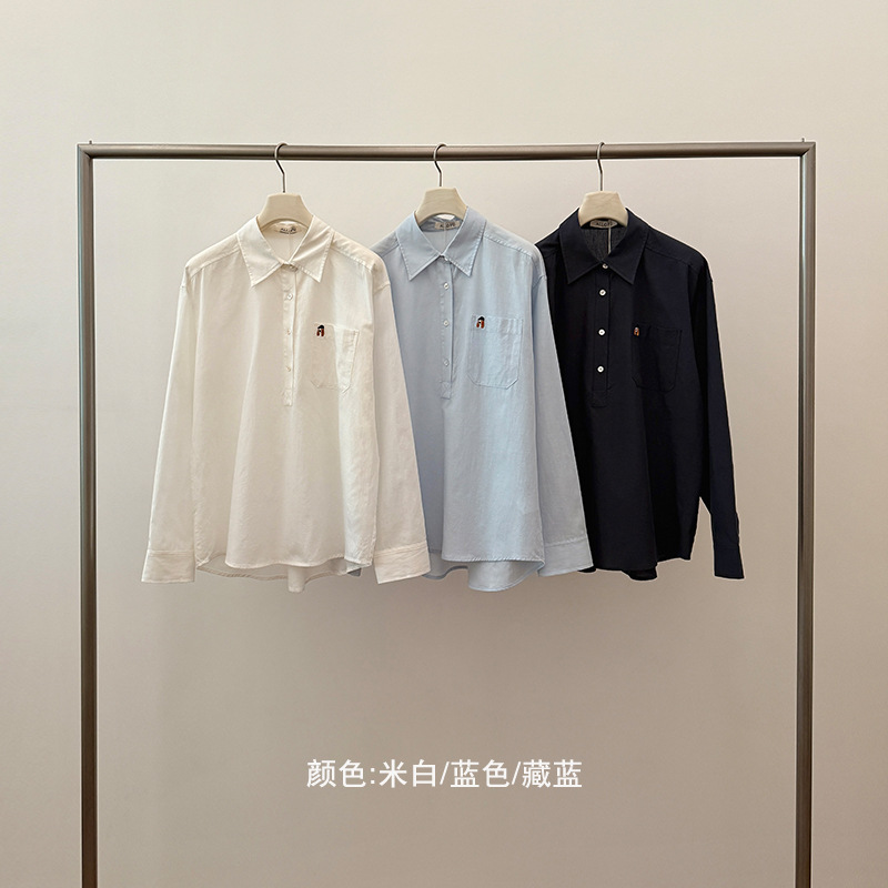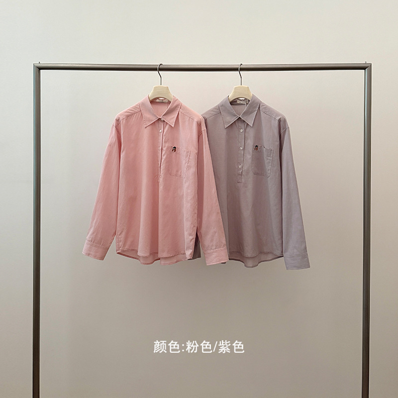 【재고정리, 반품불가】자수 강아지 무늬 한국 스타일 라펠 반오픈 버튼 풀오버 셔츠 여성용 봄철 단색 셔츠 3762