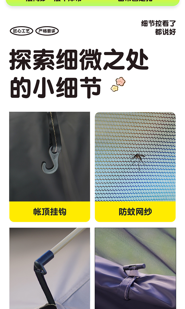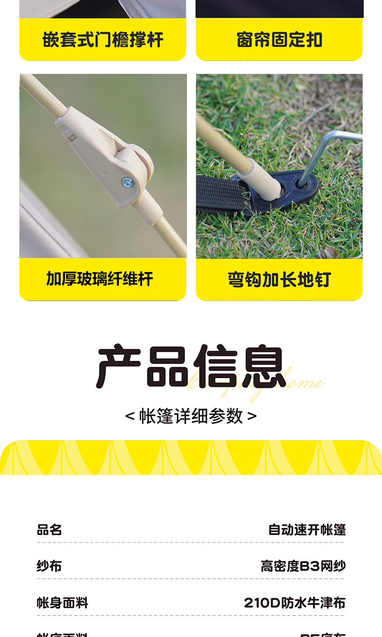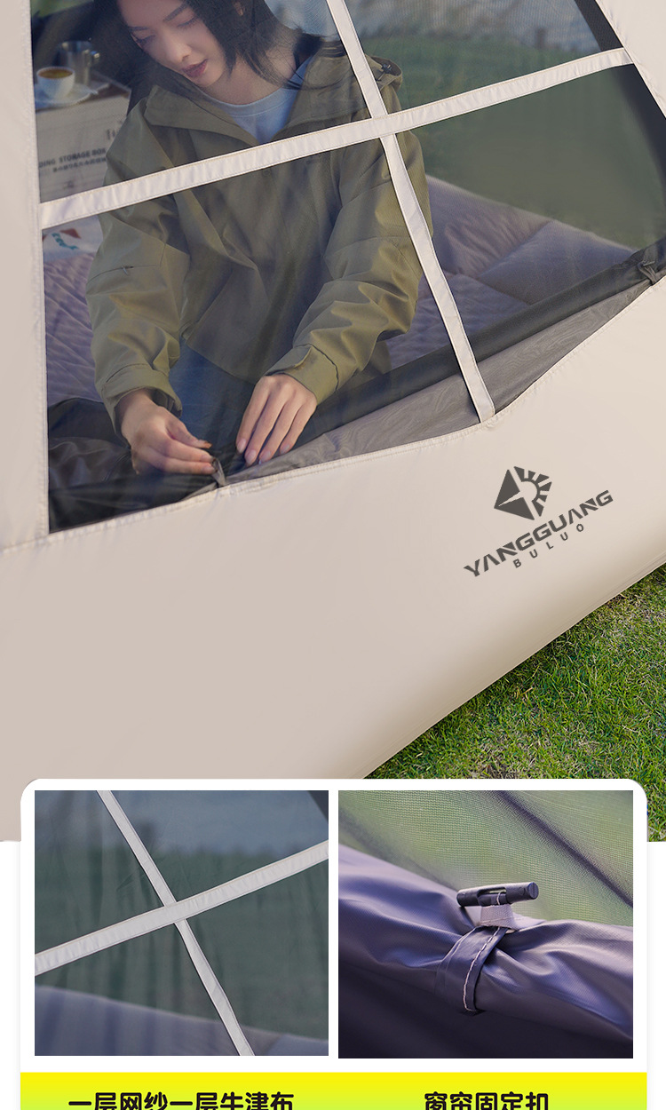 • 텐트에는 방수 상단 커버 + 방습 매트가 함께 제공됩니다.