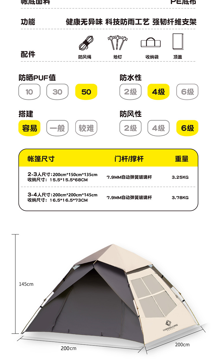 공원 텐트 야외 접는 휴대용 자동 두꺼운 비방 야외 캠핑 장비 전체 세트 캠핑스토어 가기