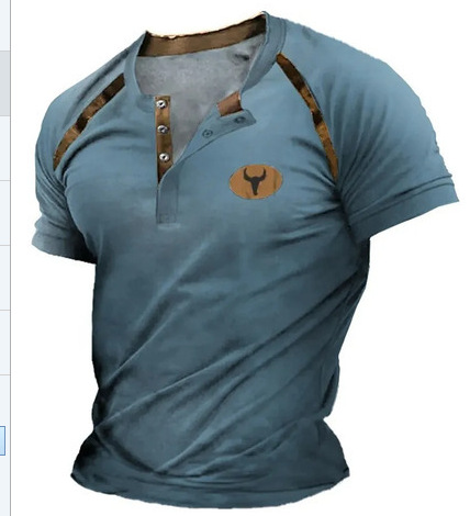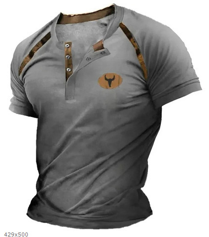 국경 간 핫 세일 여름 유럽과 미국 남성 3D 프린트 티셔츠 반팔 스포츠 캐주얼 남성 티셔츠 레트로 V 넥 탑스토어 가기
