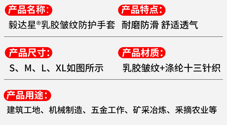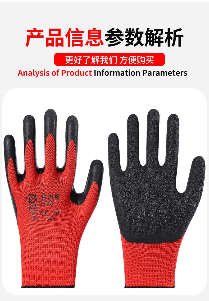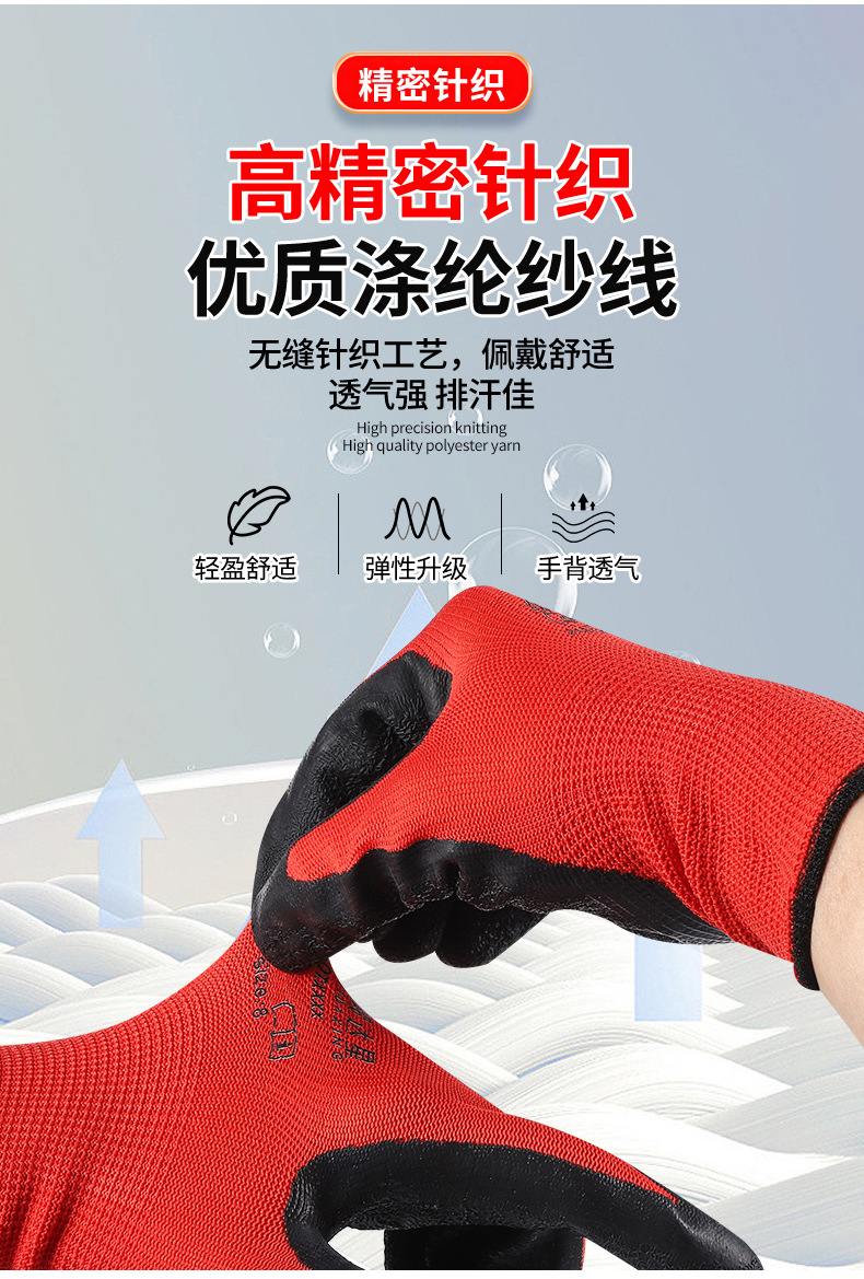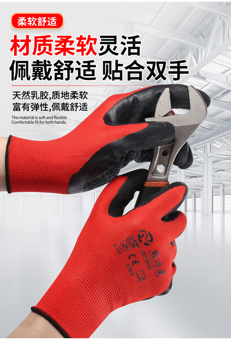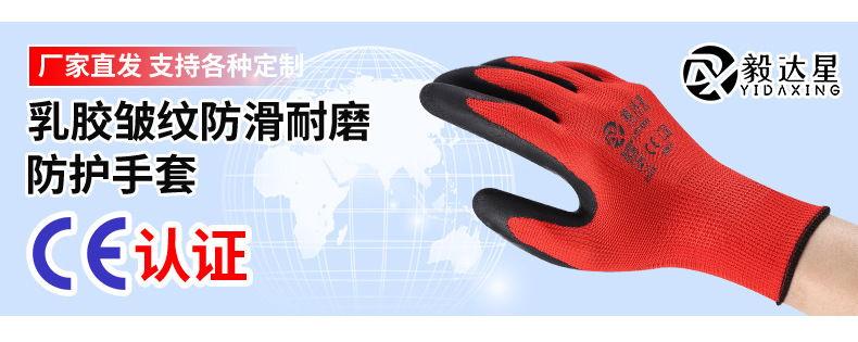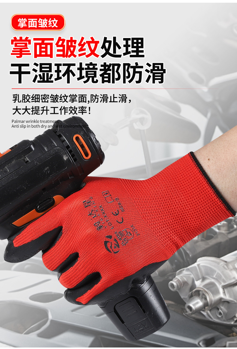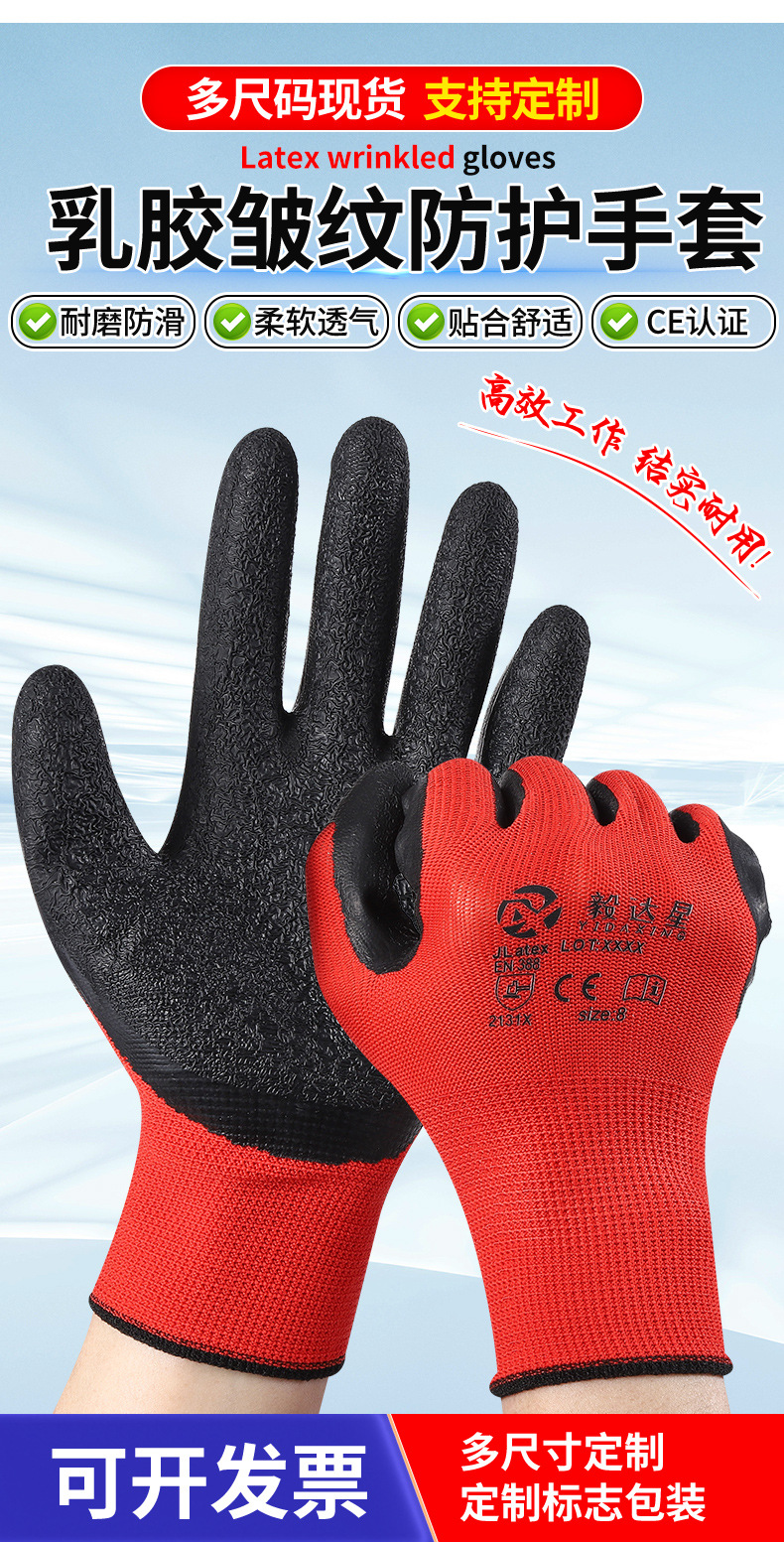 라텍스 발포 침지 작업용 장갑 내마모성 미끄럼 방지 건설 현장 작업용 장갑 주름 방지 미끄럼 방지 보호 장갑