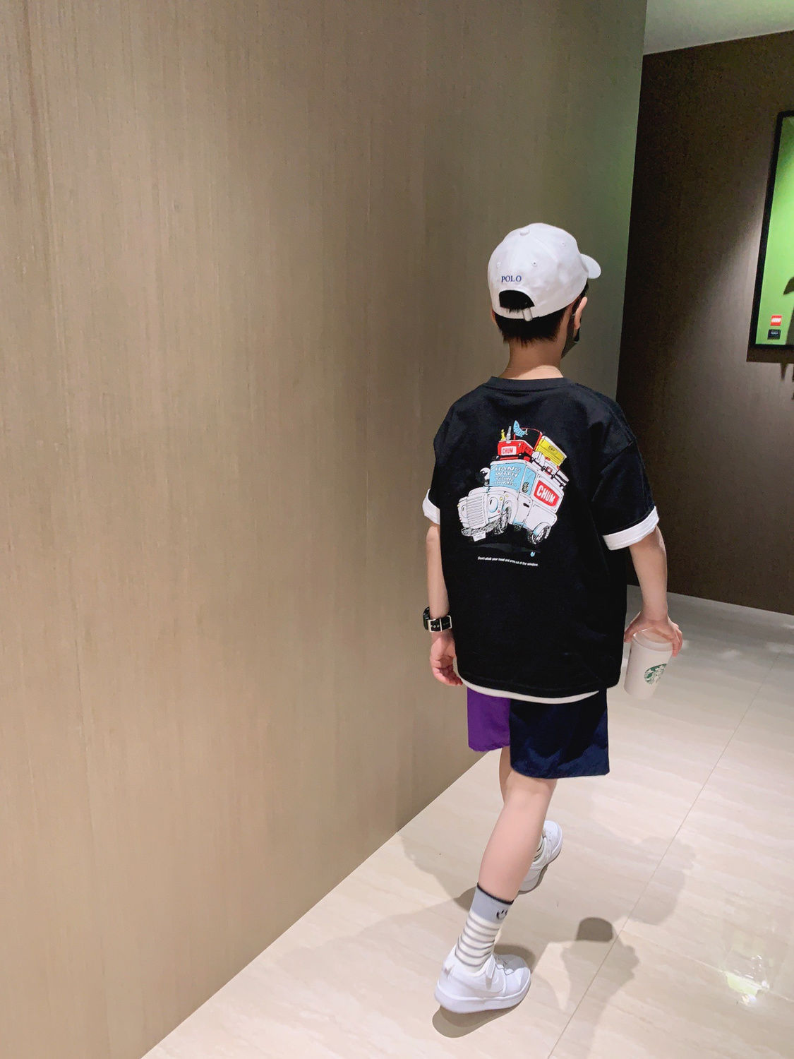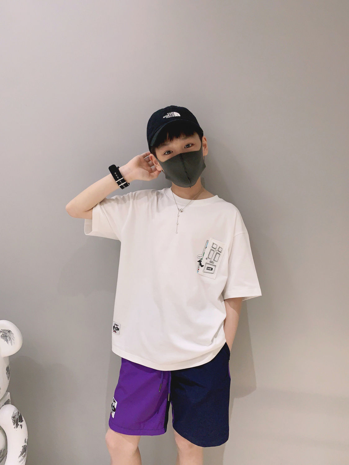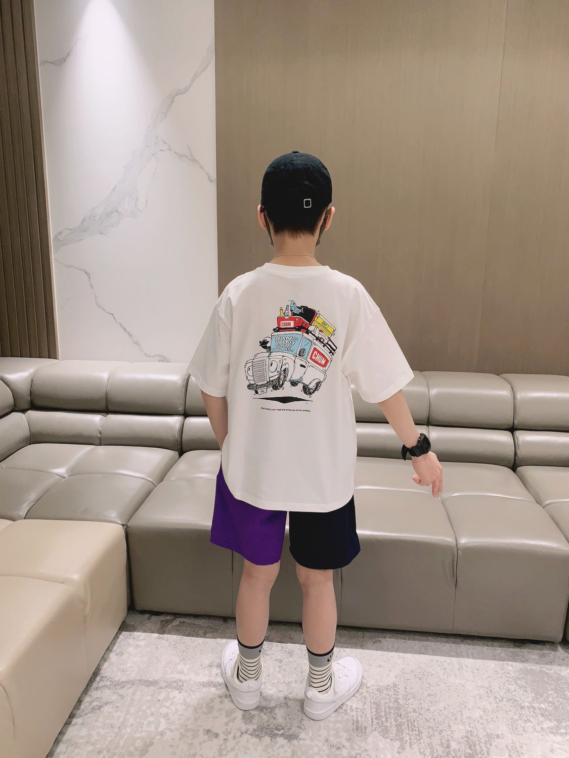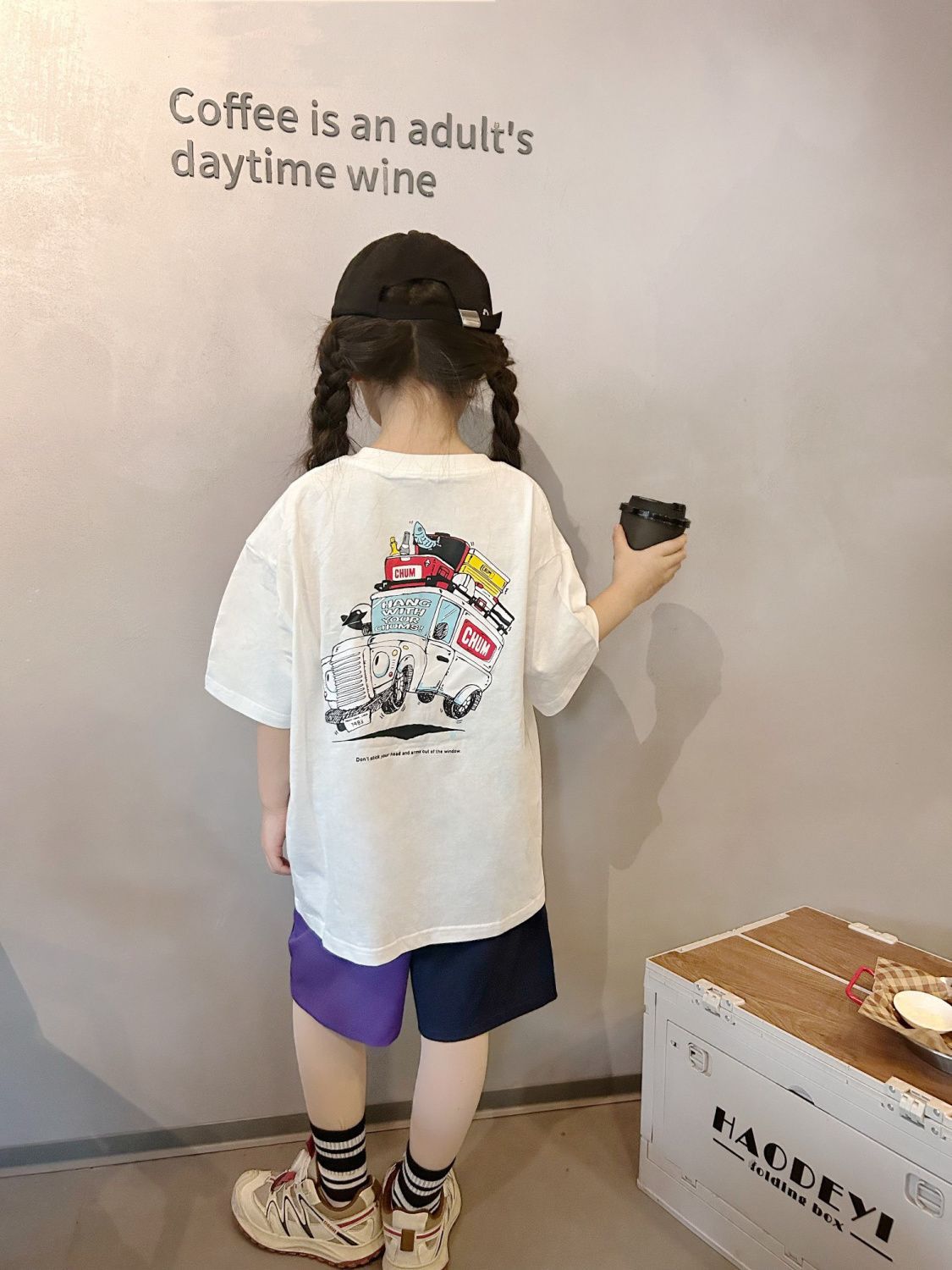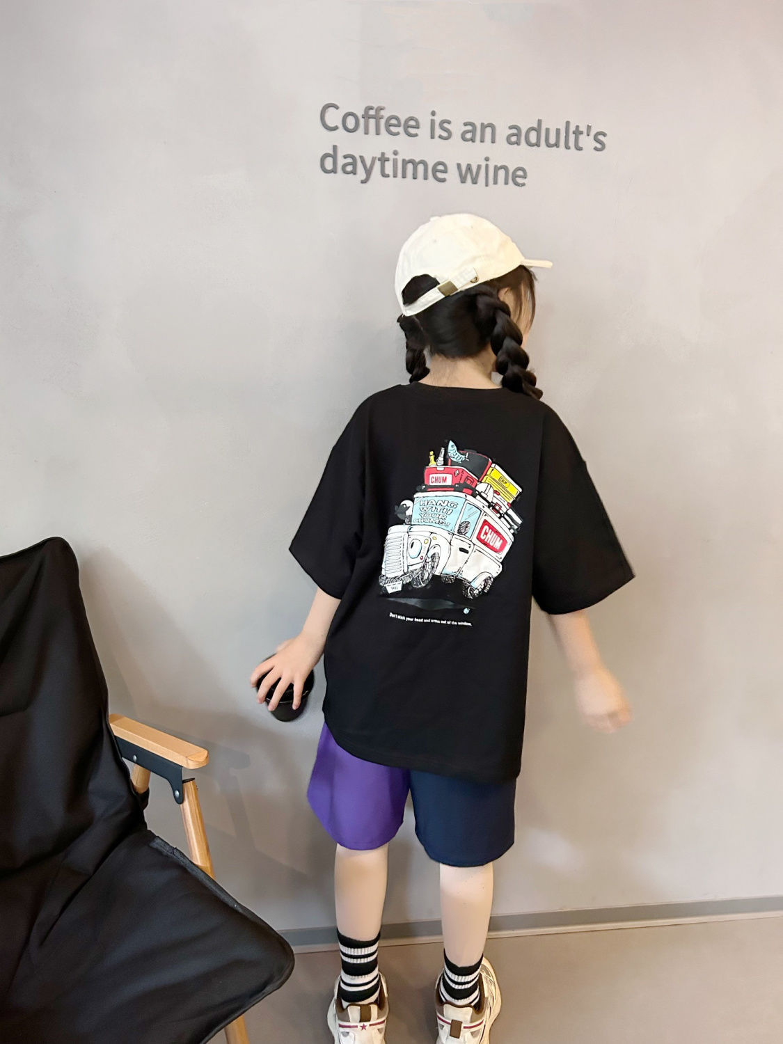 [포장 스트립] 어린이 반팔 티셔츠 어린이 봄과 여름 새로운면 인쇄 캐주얼 티셔츠 아동용 탑스토어 가기