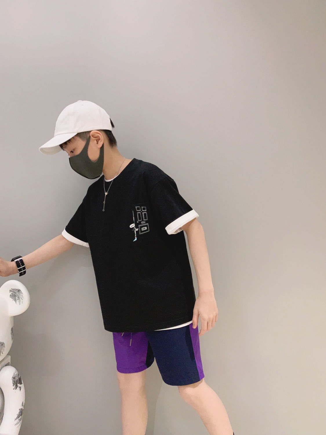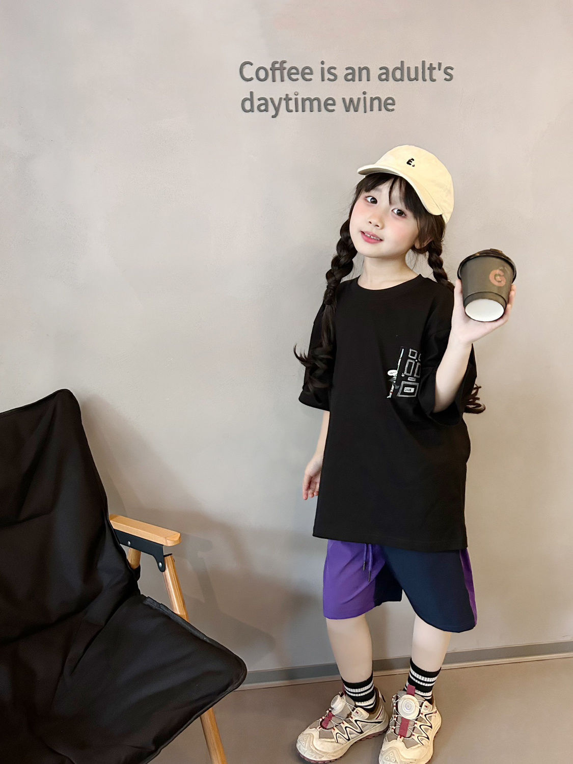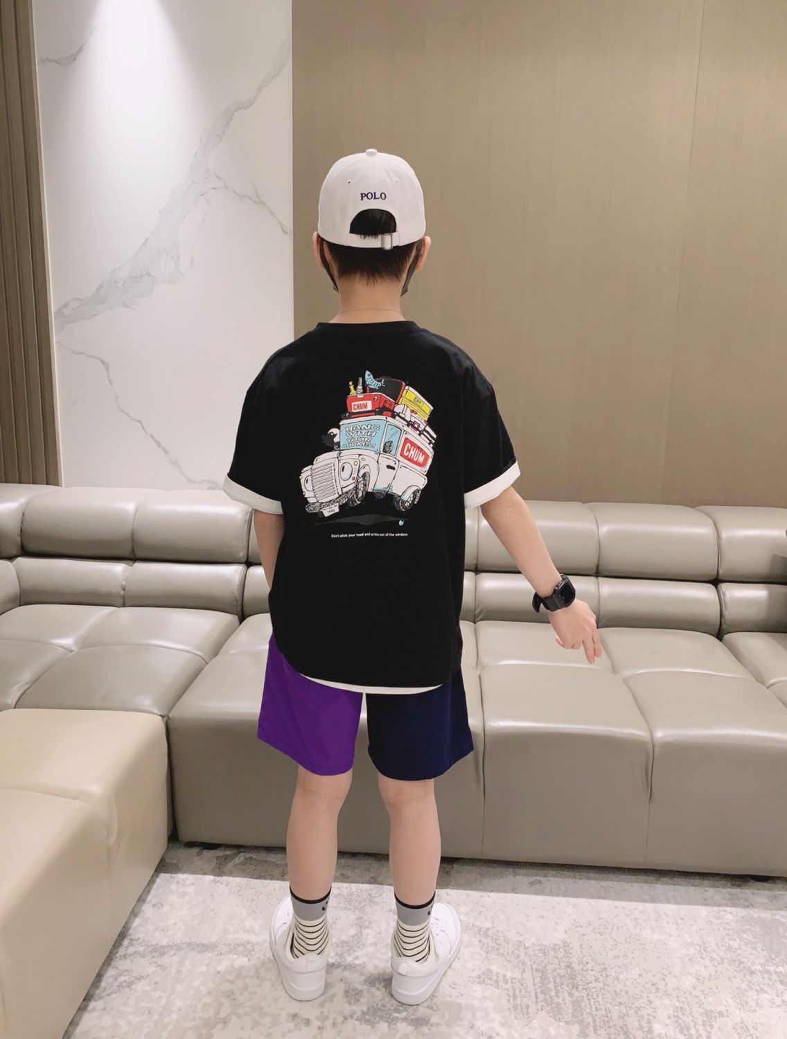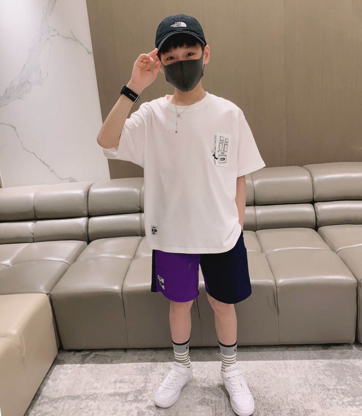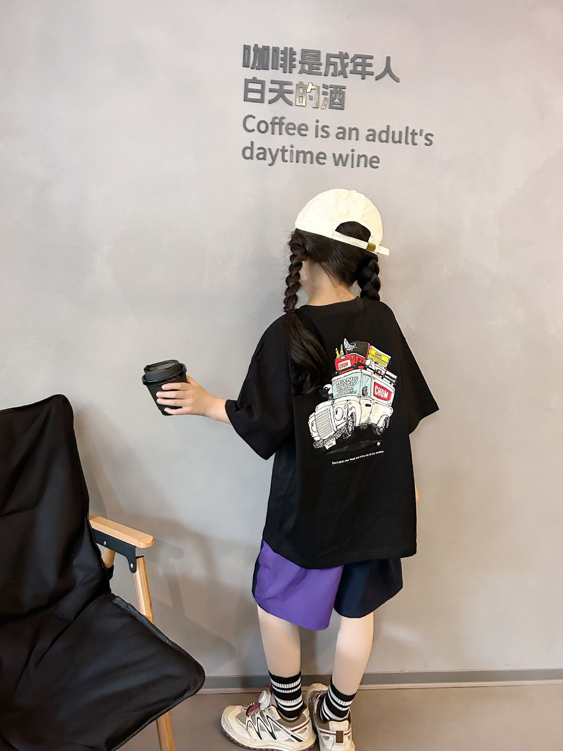 [포장 스트립] 어린이 반팔 티셔츠 어린이 봄과 여름 새로운면 인쇄 캐주얼 티셔츠 아동용 탑스토어 가기
