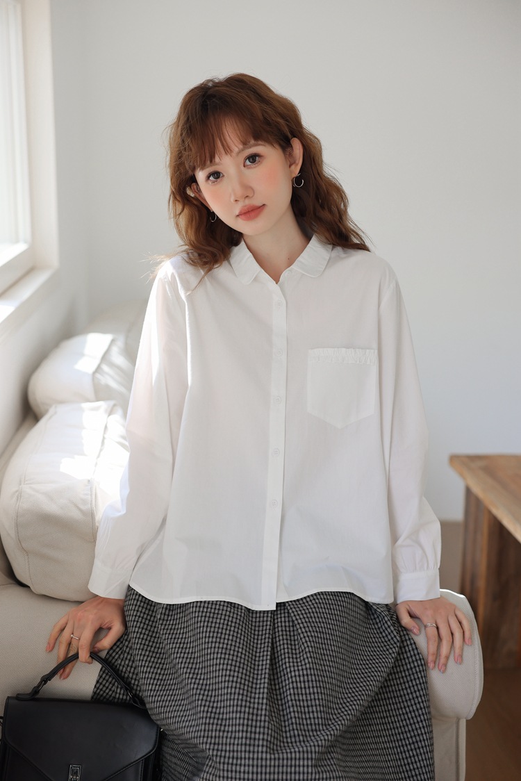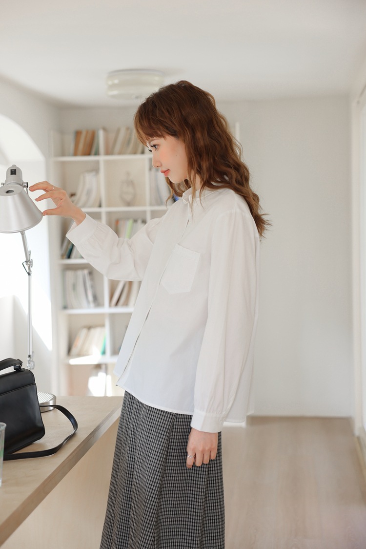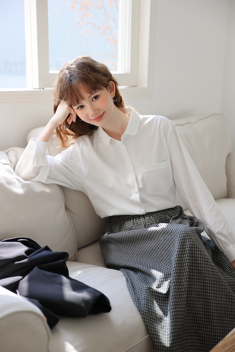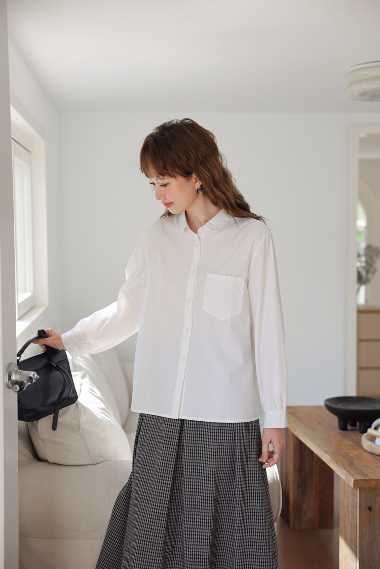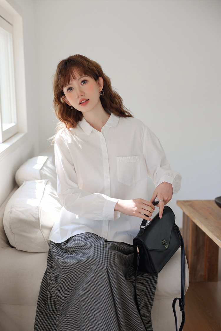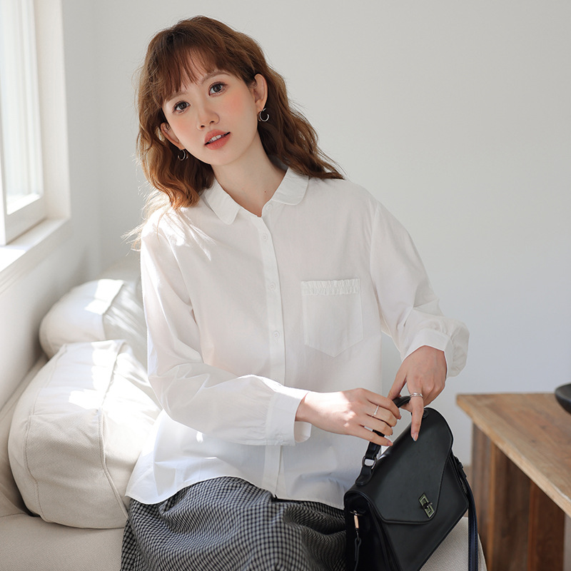 2025 년 봄 새로운 한국 통근 직장 스타일 간단한 흰색 최소 스타일 포켓 디자인 긴 소매 셔츠
